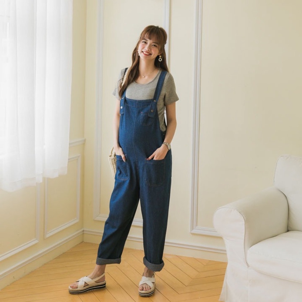 Mamamia孕婦裝 隨興寬鬆吊帶孕婦褲 吊帶褲 牛仔 牛仔褲 孕婦牛仔褲 孕婦裝 長袖 短袖 正韓製 [A1593]FMaternity BottomsMamamia孕婦裝