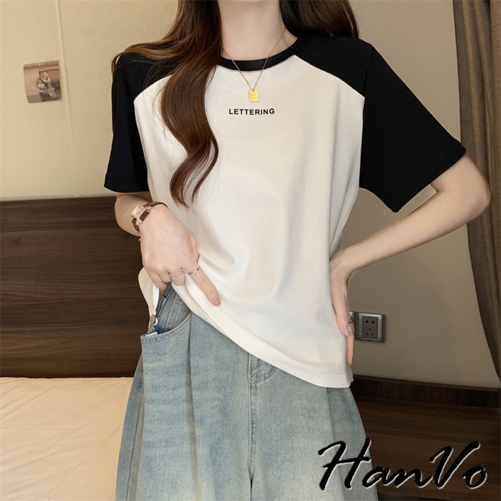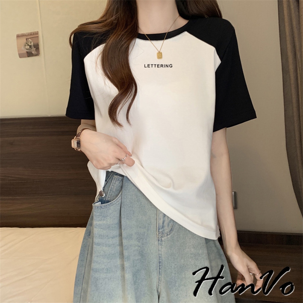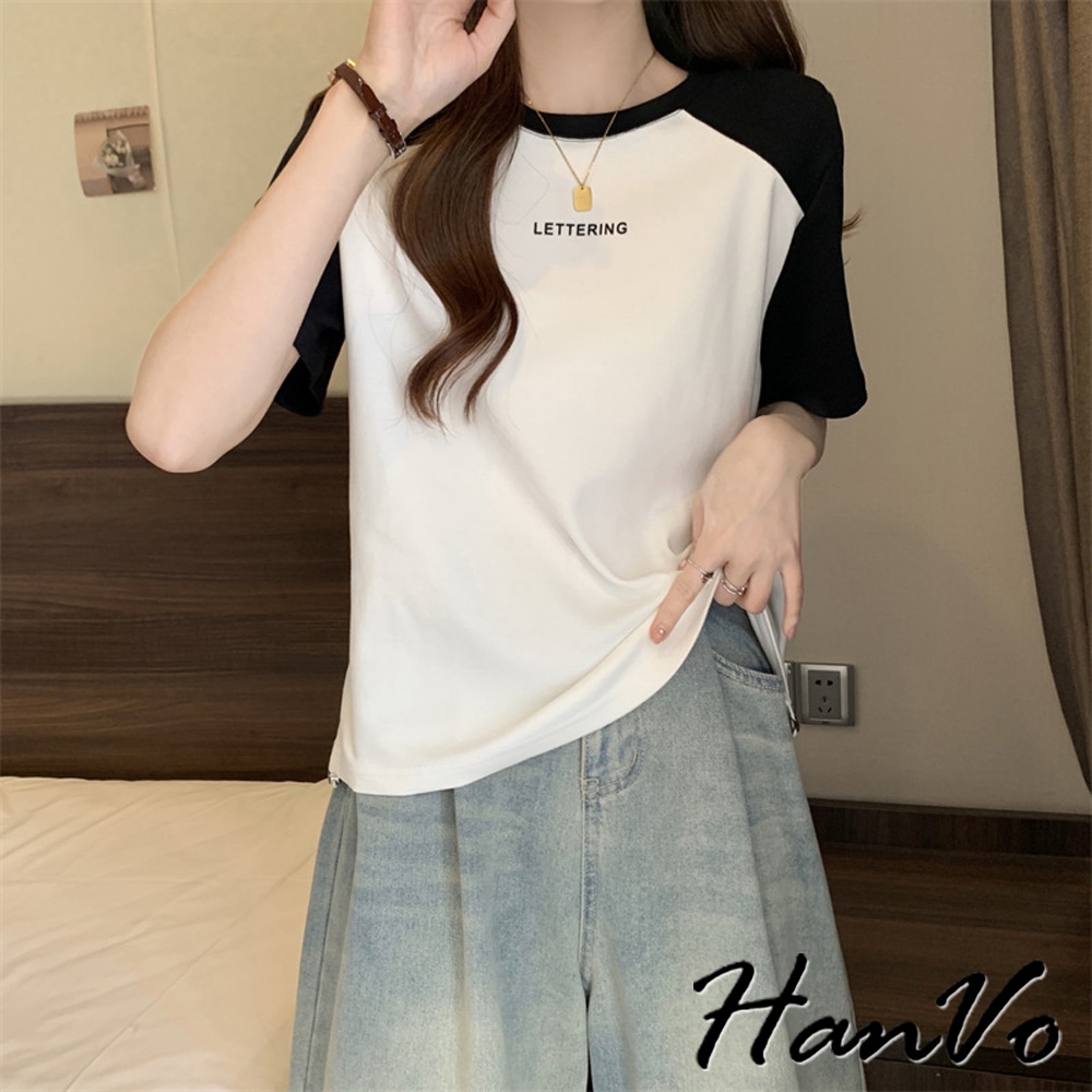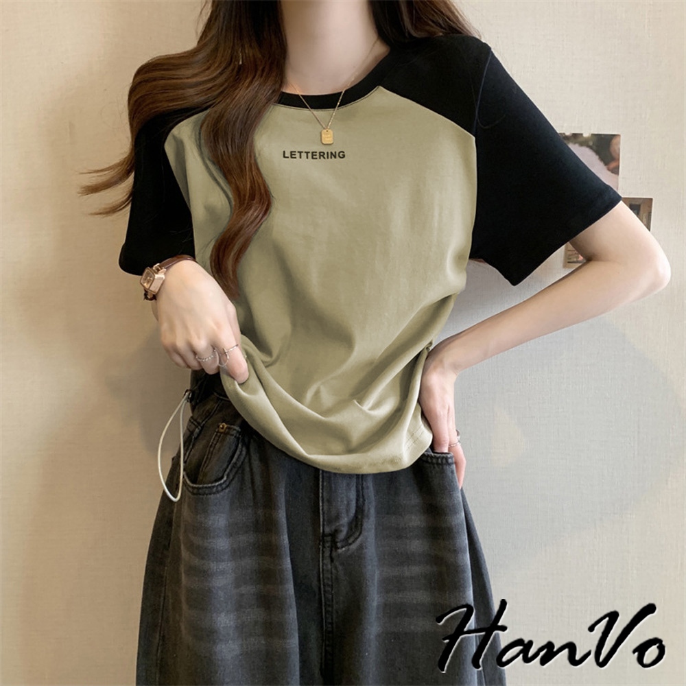【HanVo】動物大集合雙色T恤 韓國時尚百搭顯瘦圓領短袖上衣 韓版簡約日常T 韓系女裝 女生衣著 A01-1373黑色|白色|灰色T-shirtsHanVo Wear Collection