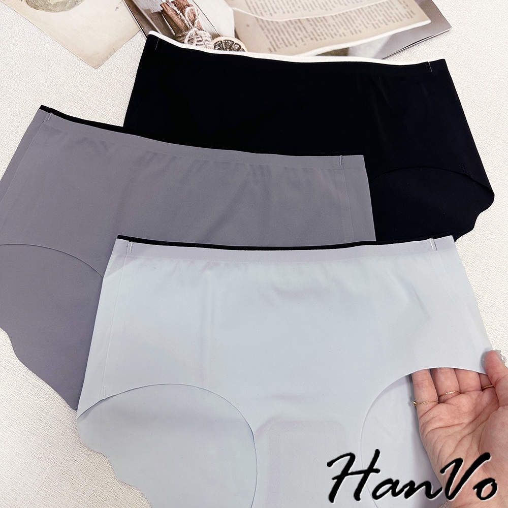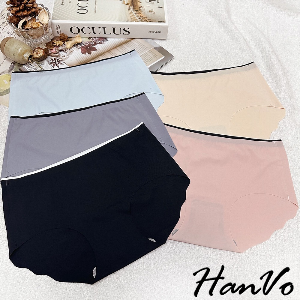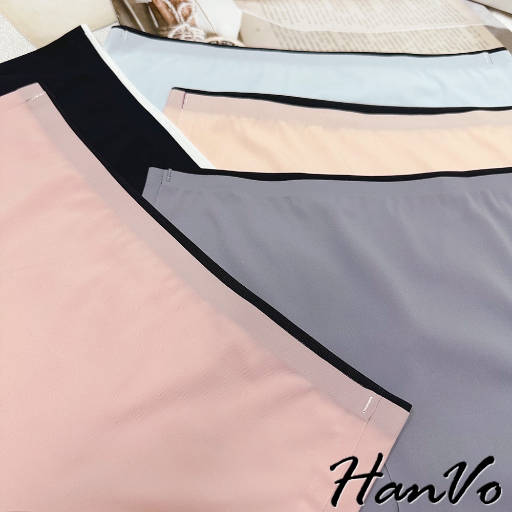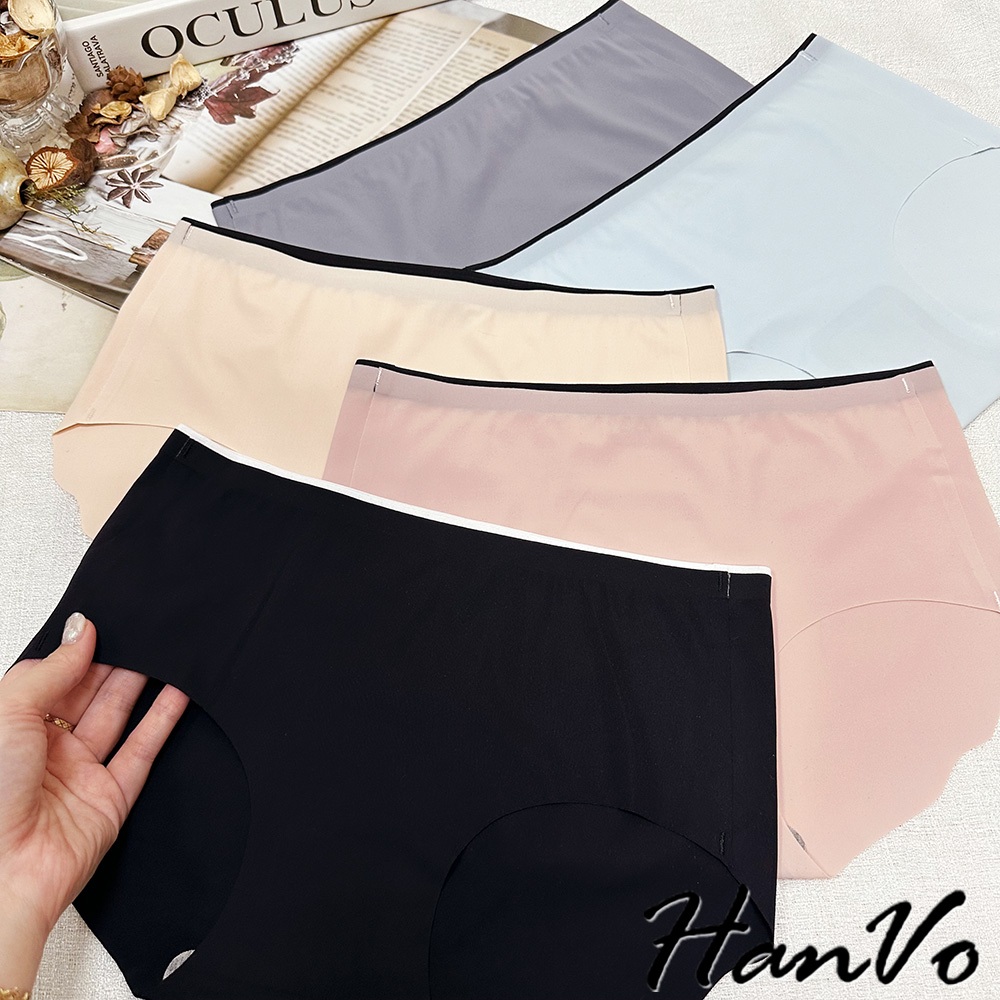 【HanVo】雙色邊條冰絲無痕內褲 裸感透氣薄款中腰三角褲 獨立包裝 女生內褲 內著 A11-5204石板灰|夜空黑|花瓣粉|暖膚杏|天空藍PantiesHanVo Wear Collection