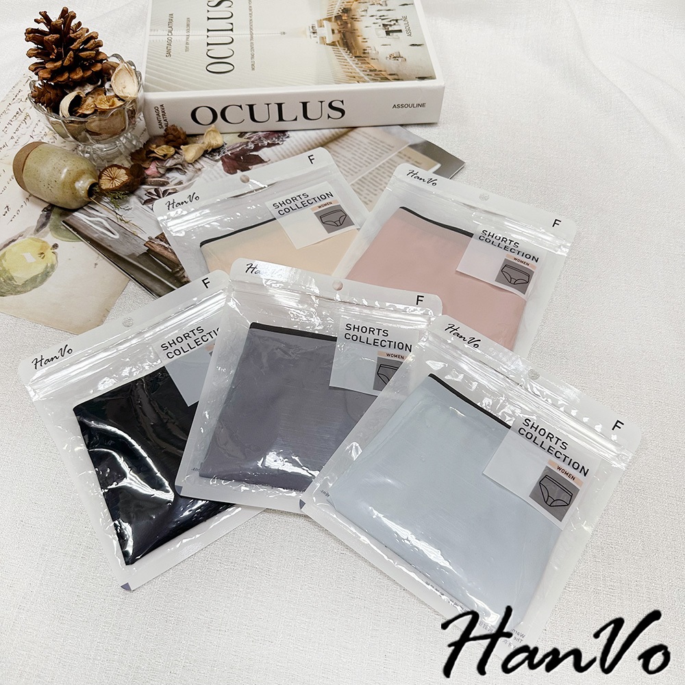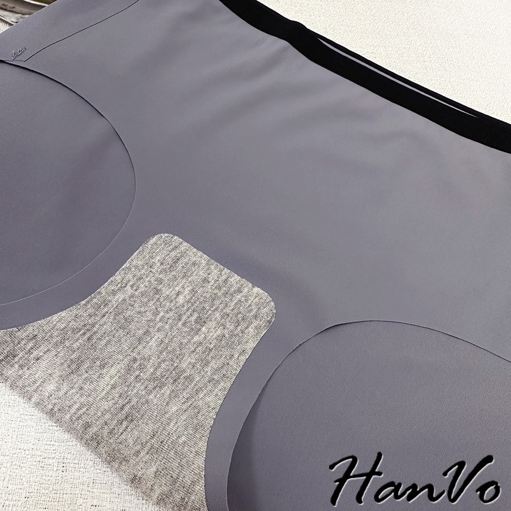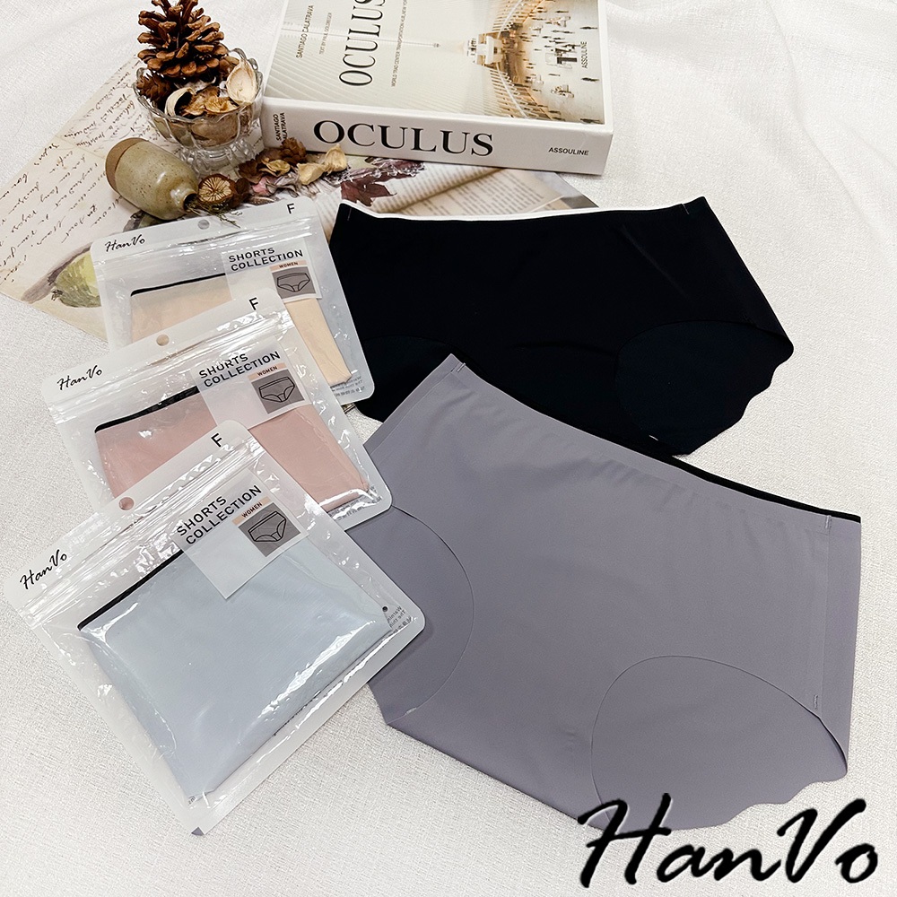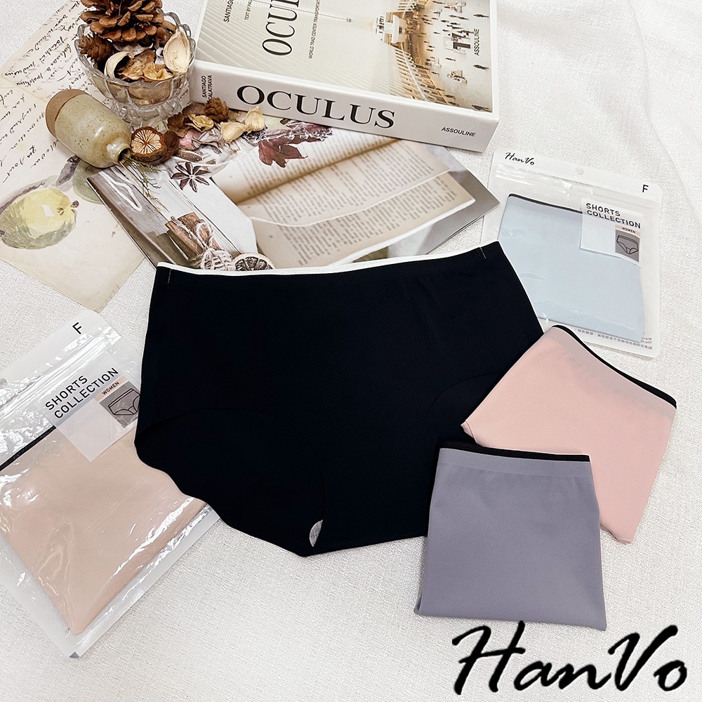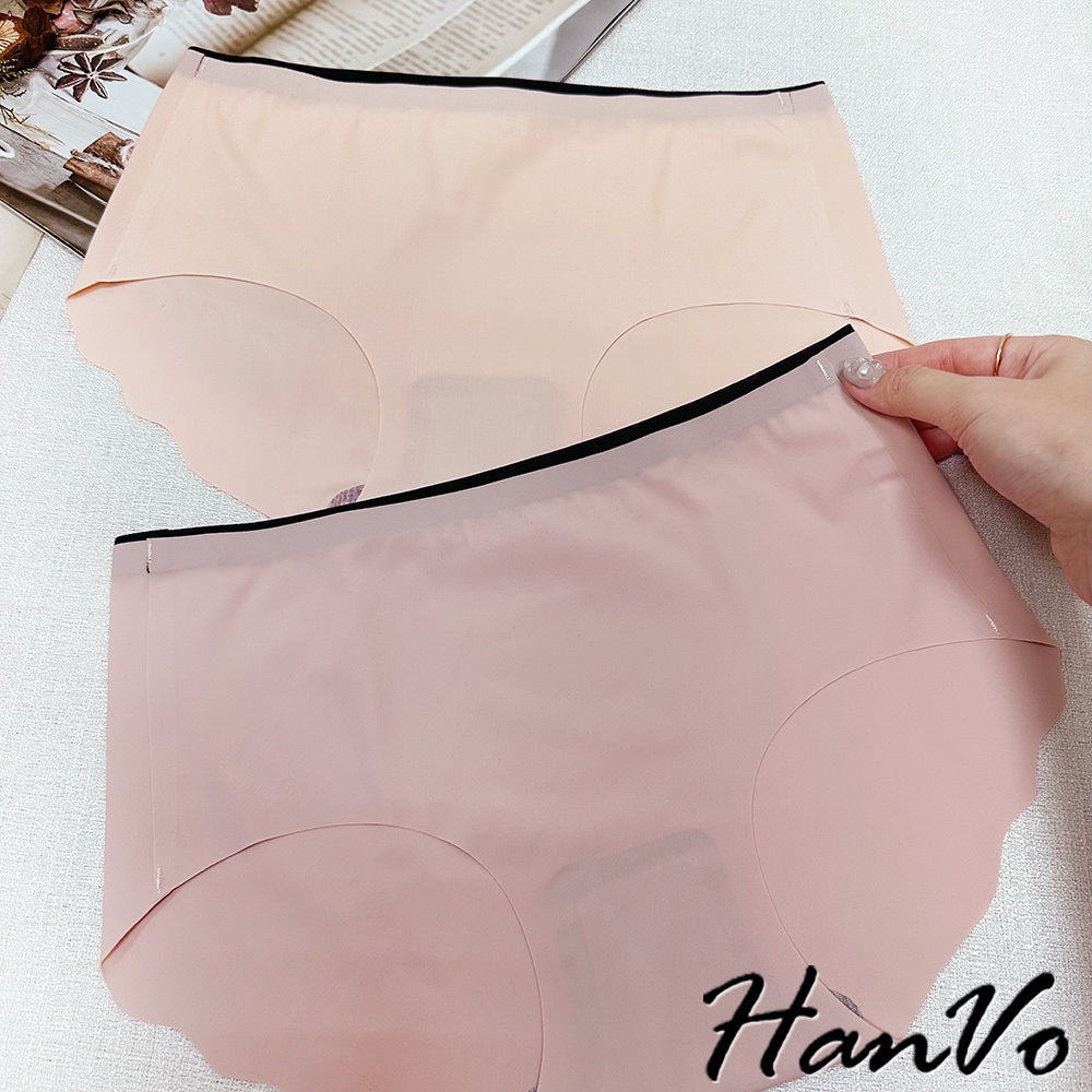 【HanVo】雙色邊條冰絲無痕內褲 裸感透氣薄款中腰三角褲 獨立包裝 女生內褲 內著 A11-5204石板灰|夜空黑|花瓣粉|暖膚杏|天空藍PantiesHanVo Wear Collection