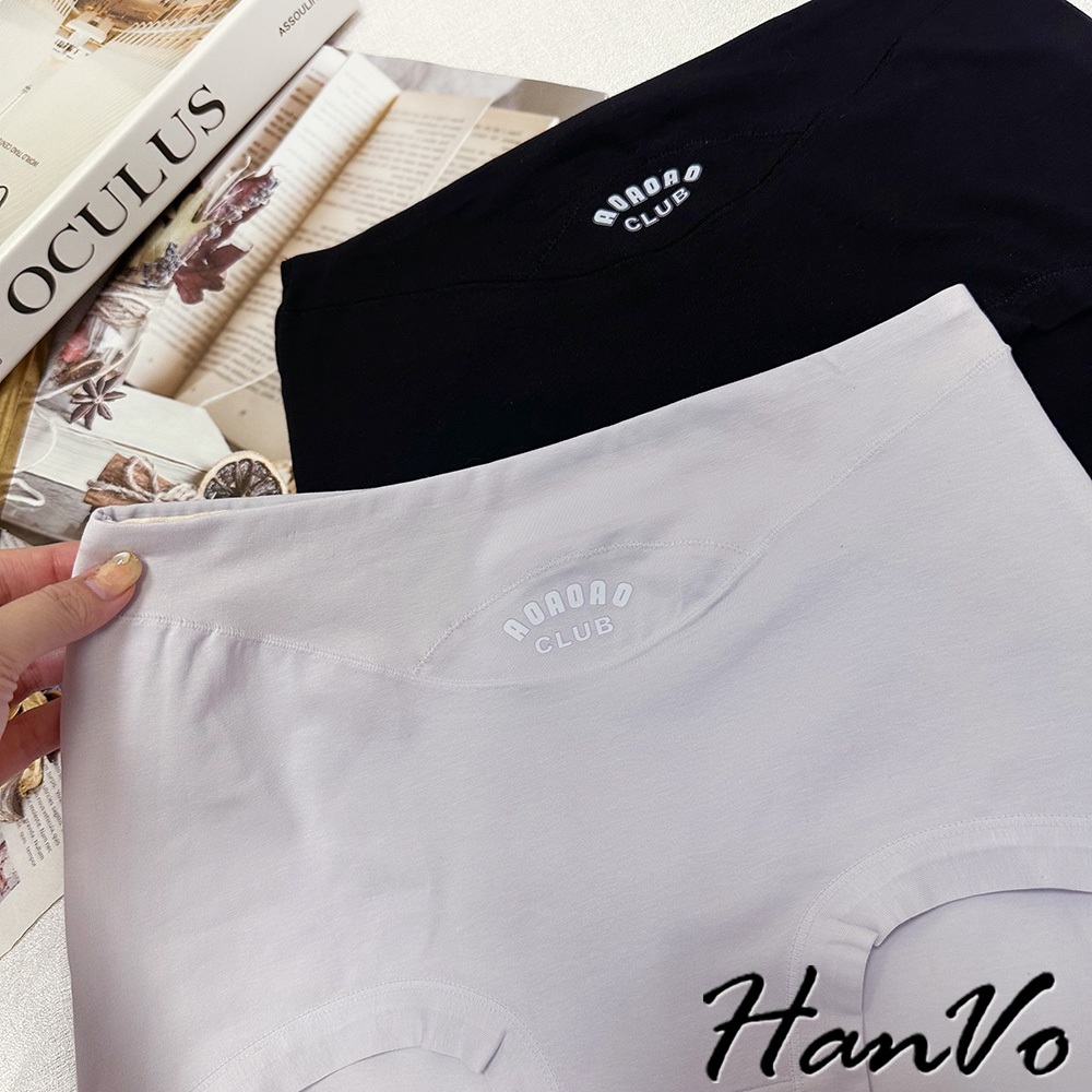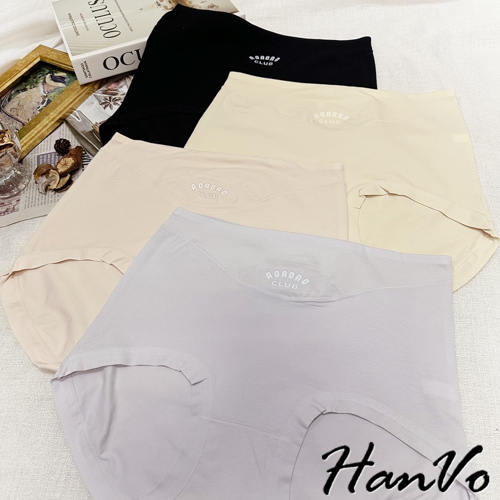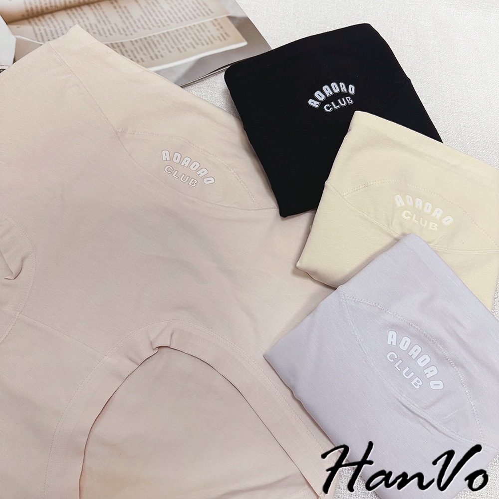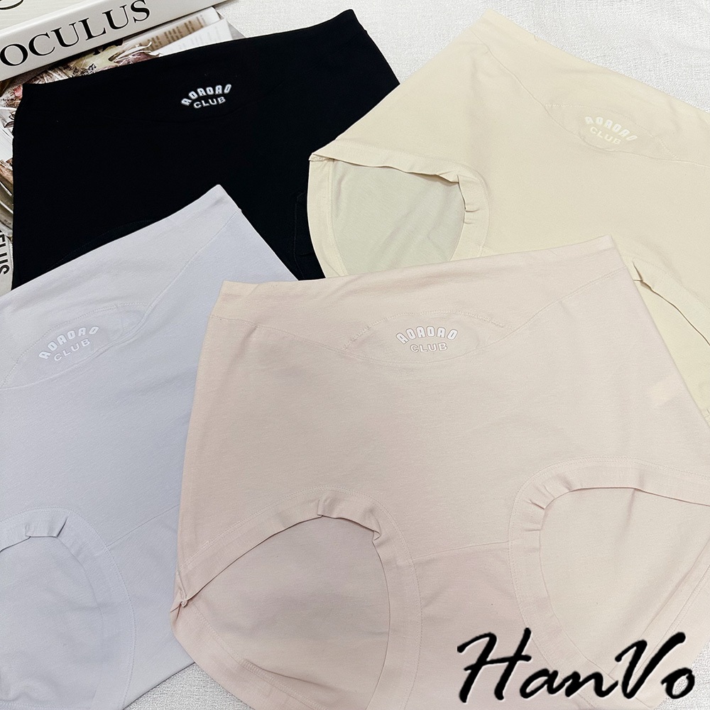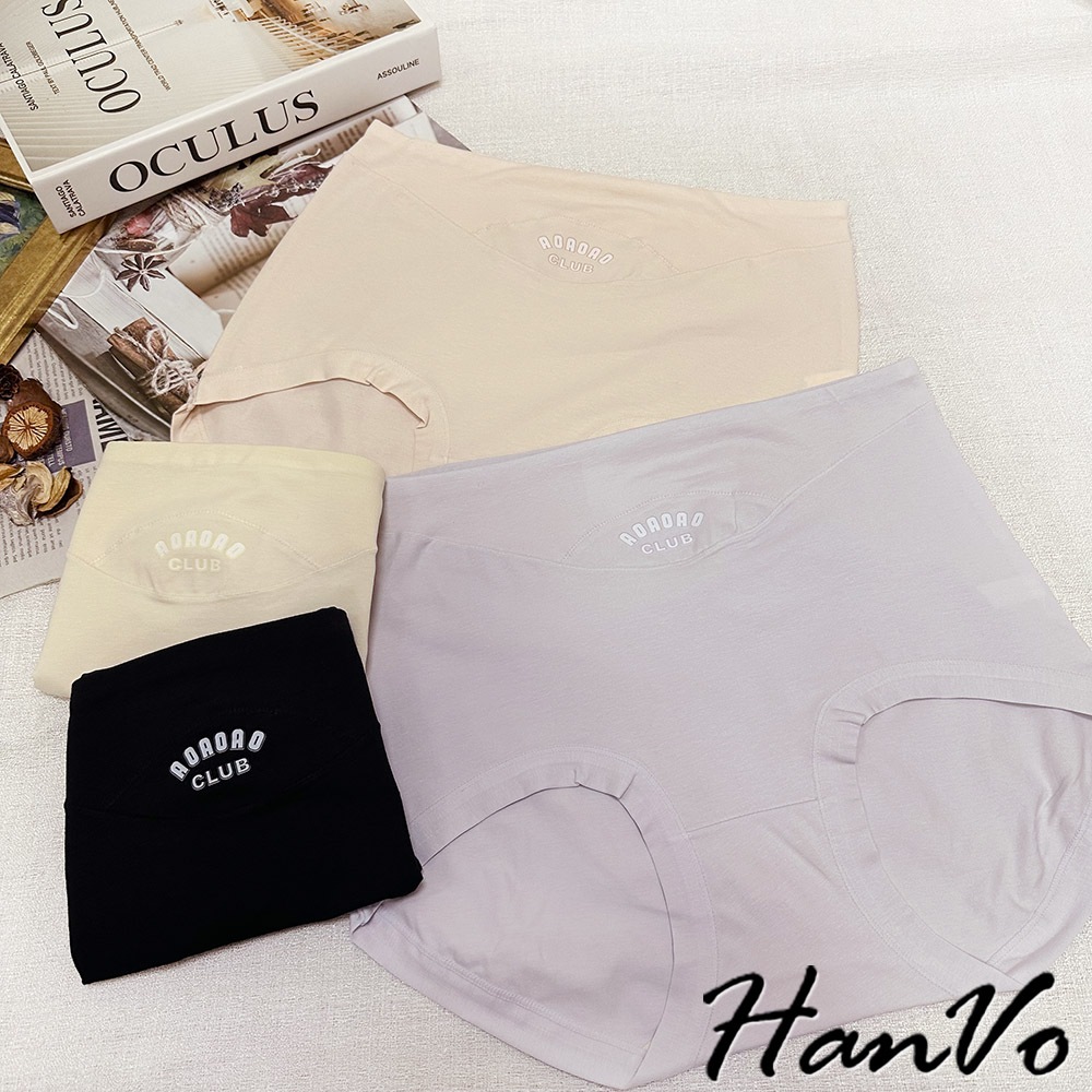 【HanVo】英文印花加大尺碼高腰內褲 吸濕排汗透氣純棉三角褲 獨立包裝 流行少女內褲 內著 A11-5297丁香紫|午夜黑|柔膚杏|柔霧粉PantiesHanVo Wear Collection