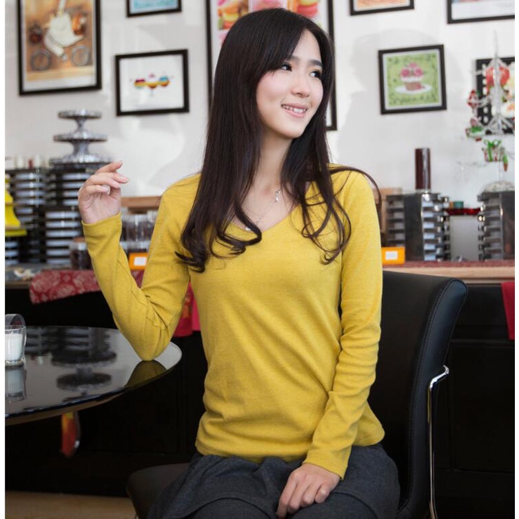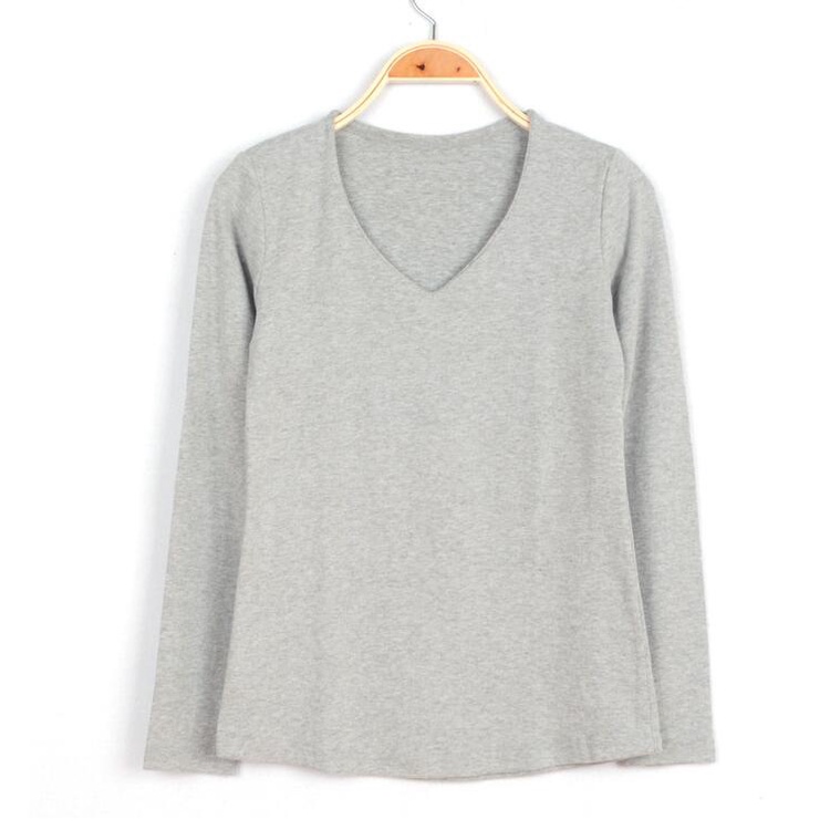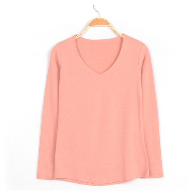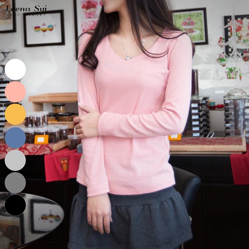 長袖T 長袖上衣 磨毛V領修身打底衫簡約V領上衣 010103粉|薑黃|牛仔藍|黑|白|深灰|淺灰T-shirtsLeenaSui ~台灣賣家 隔日到貨