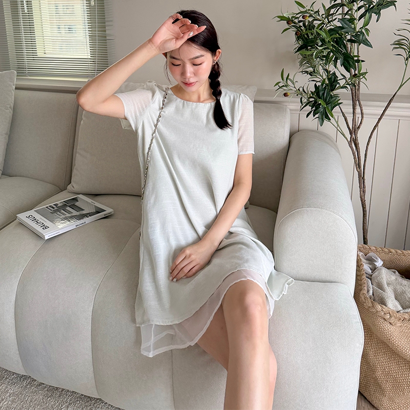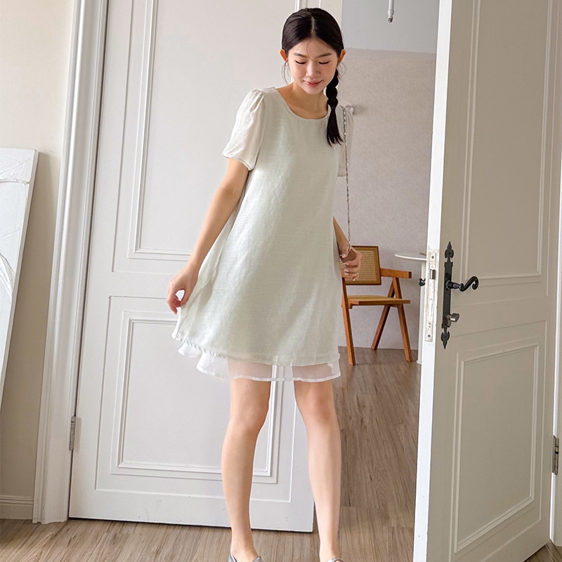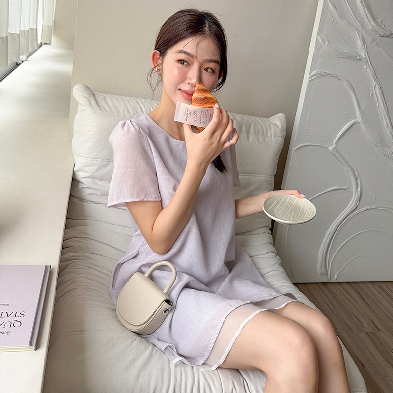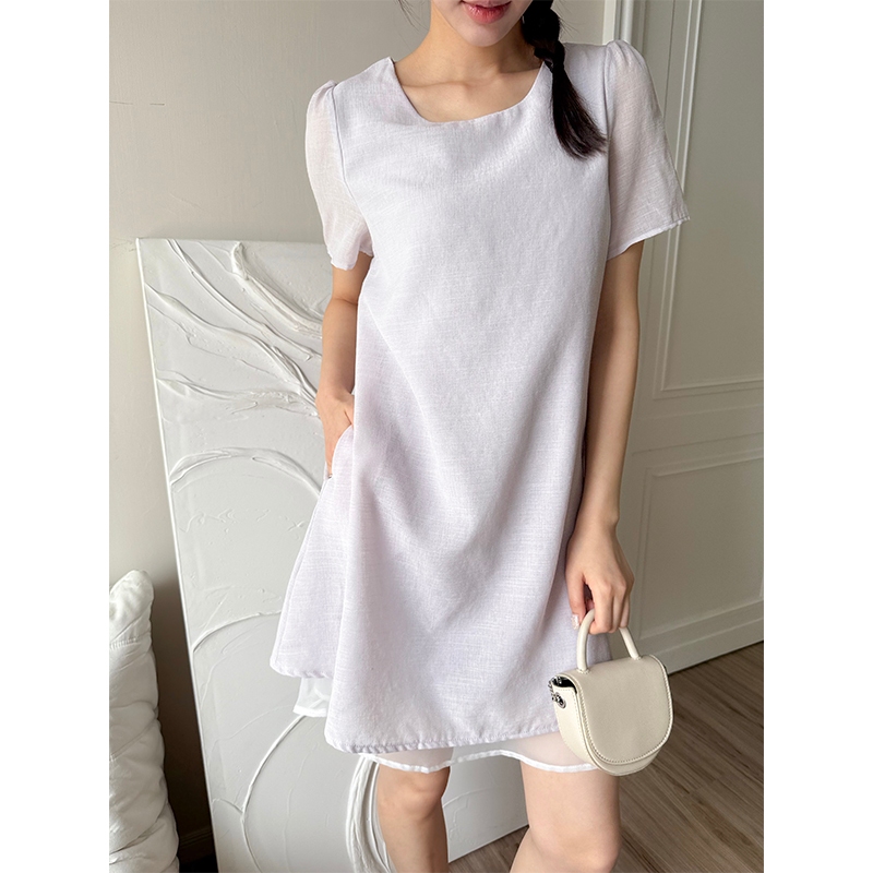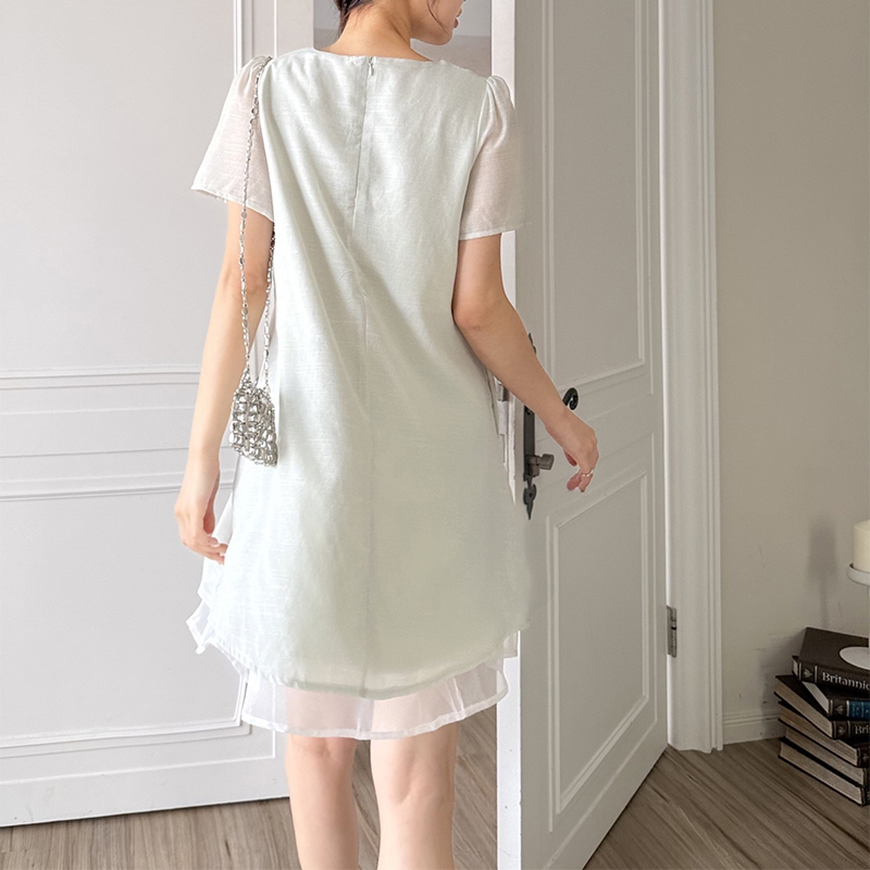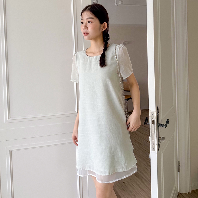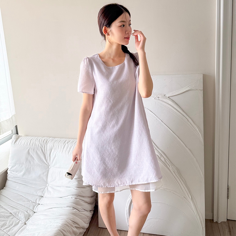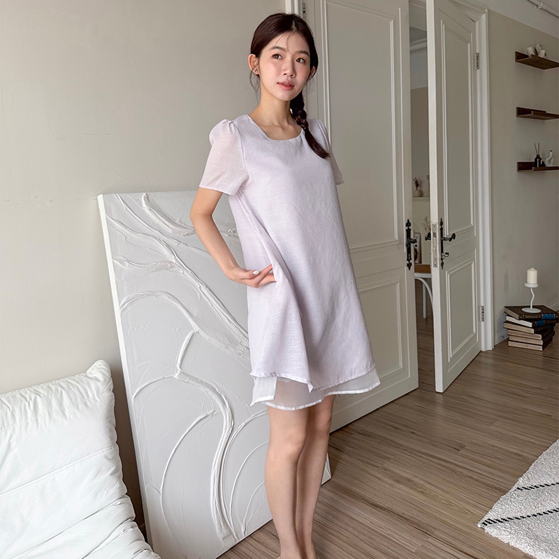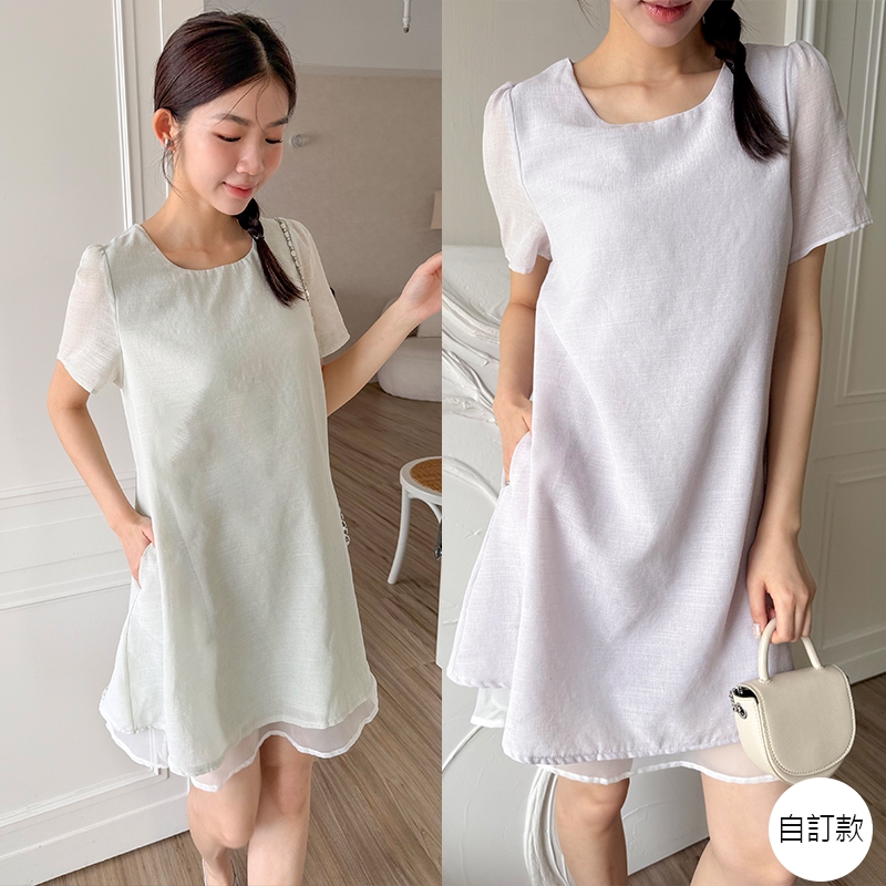 【HARPER】品牌自訂輕柔日常拼接袖洋裝 | 現貨 短袖洋裝 短洋裝【DSB48931J】綠,S~M|綠,L~XL|紫,S~M|紫,L~XLHARPER