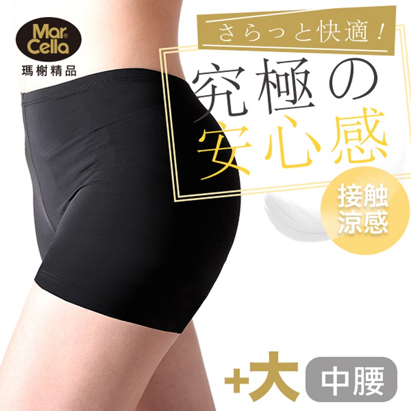 《瑪榭》加大涼感隱形安全褲 / 中腰/平口褲/內搭/內褲/女內褲/0001702A黑(73-78cm)|B米(73-78cm)Safety PantsMarCella瑪榭 官方旗艦店