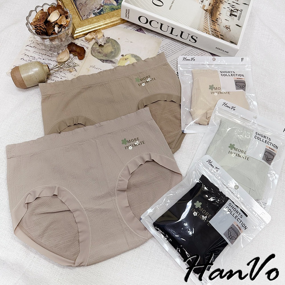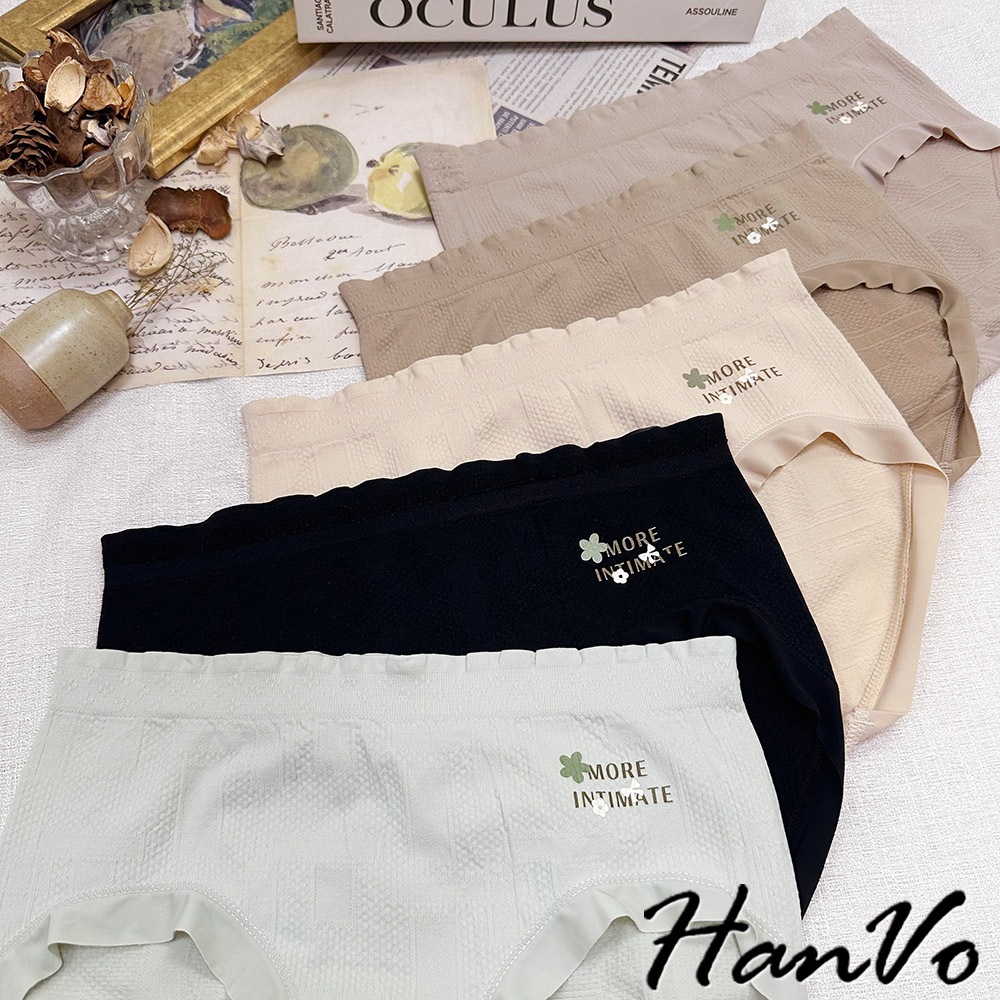 【HanVo】甜美字母小花純棉內褲 親膚柔軟舒適吸濕排汗 中腰 獨立包裝 流行少女內褲 內著 A11-5232午夜黑|奶杏膚|粉藕紫|榛果咖|淡雅綠PantiesHanVo Wear Collection