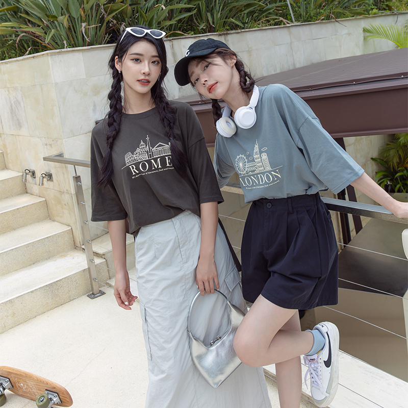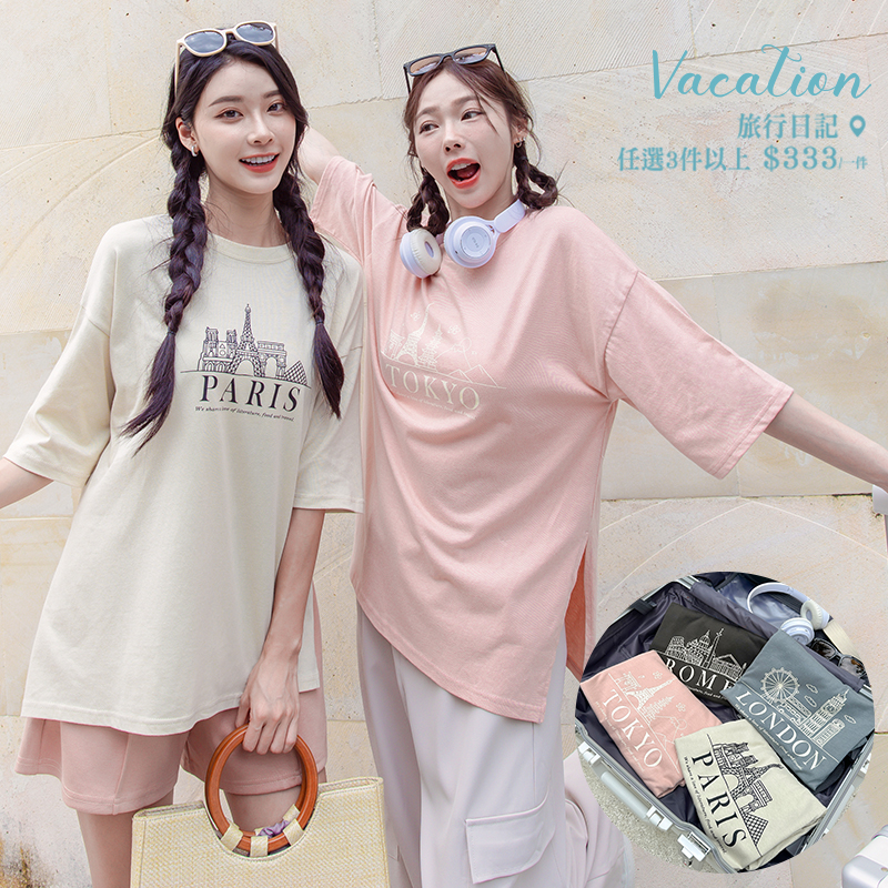 【HARPER】《旅行日記》時尚城市棉T恤 M-L 5色 | 短袖上衣 圖案T 字母T T恤【CLE91234G】倫敦霧藍,L|羅馬灰,L|巴黎杏,L|東京粉,M|巴黎杏,M|東京粉,L|倫敦霧藍,M|羅馬灰,M|希臘白,M|希臘白,LT-shirtsHARPER