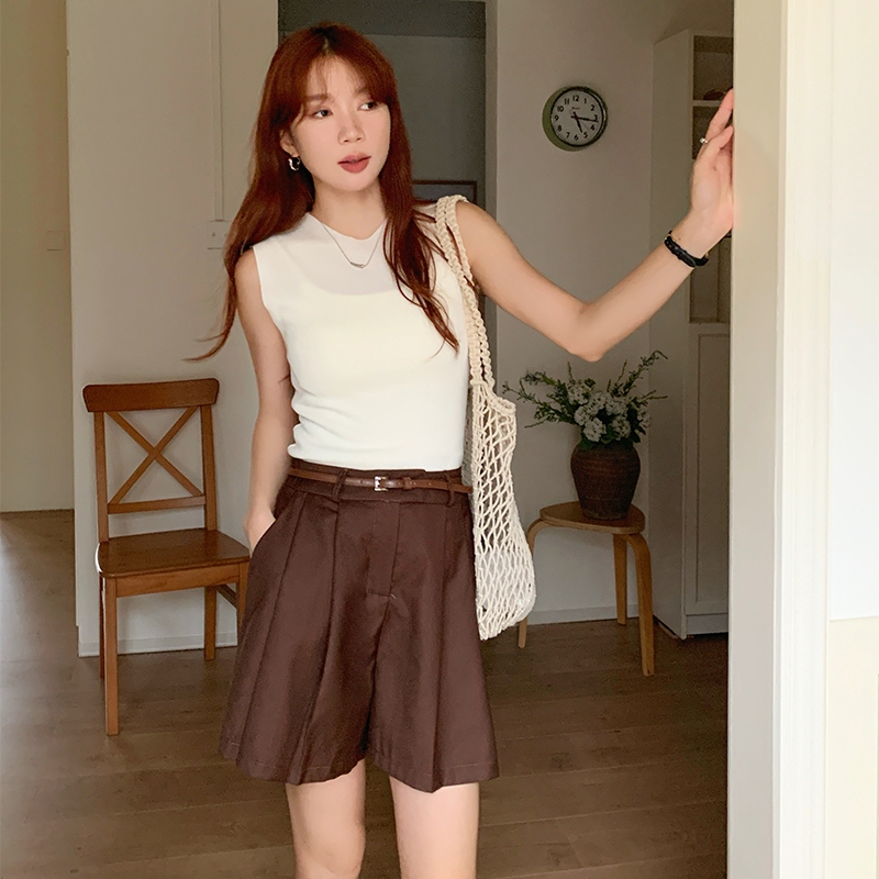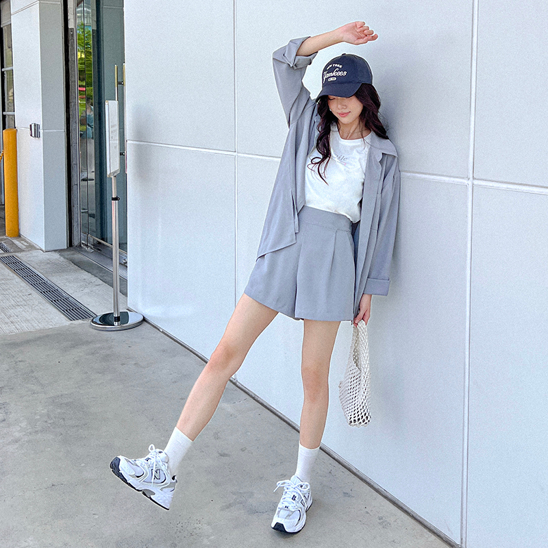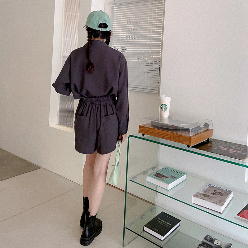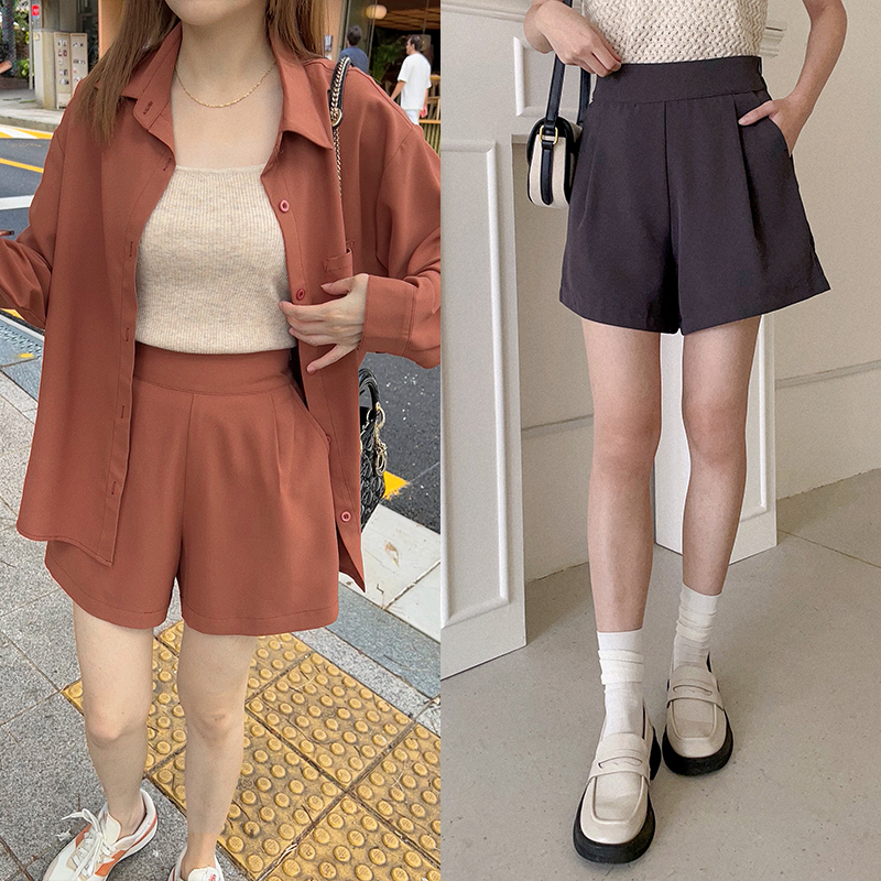 【HARPER】品牌自訂後腰鬆緊側拉鍊打褶短褲 3色 | 現貨 西裝短褲 女裝【PNA21236G】深灰,F|磚紅,F|灰,FShortsHARPER