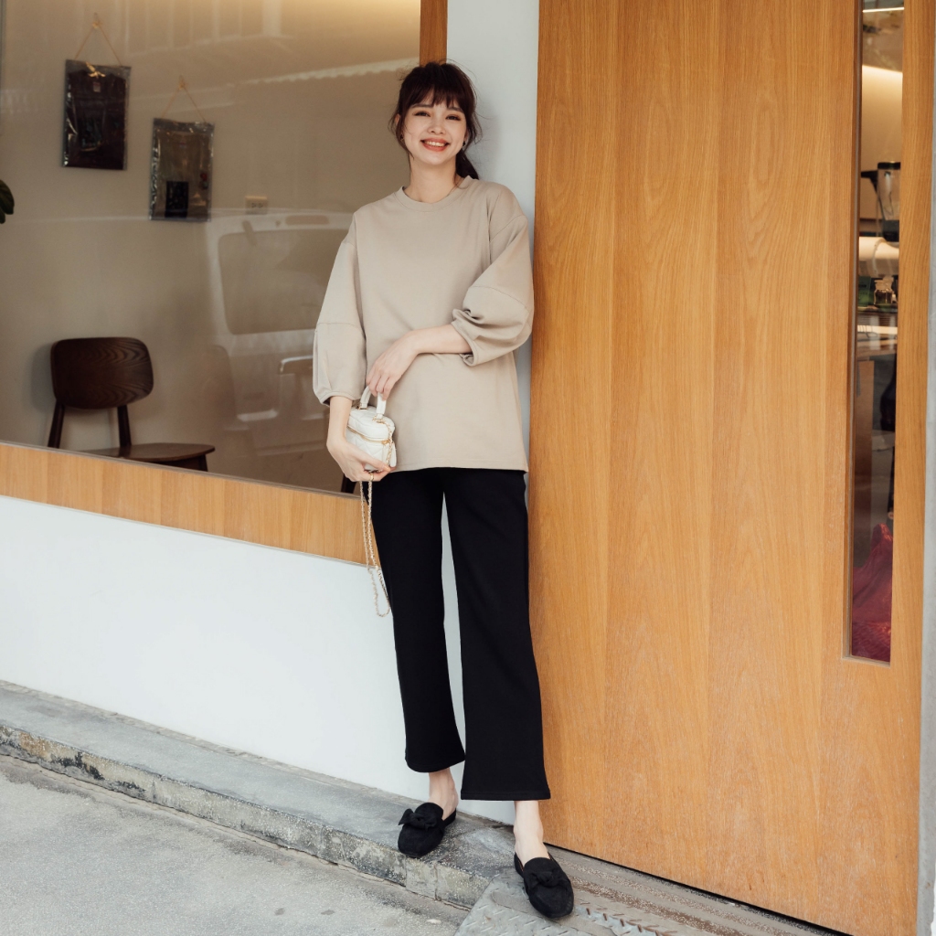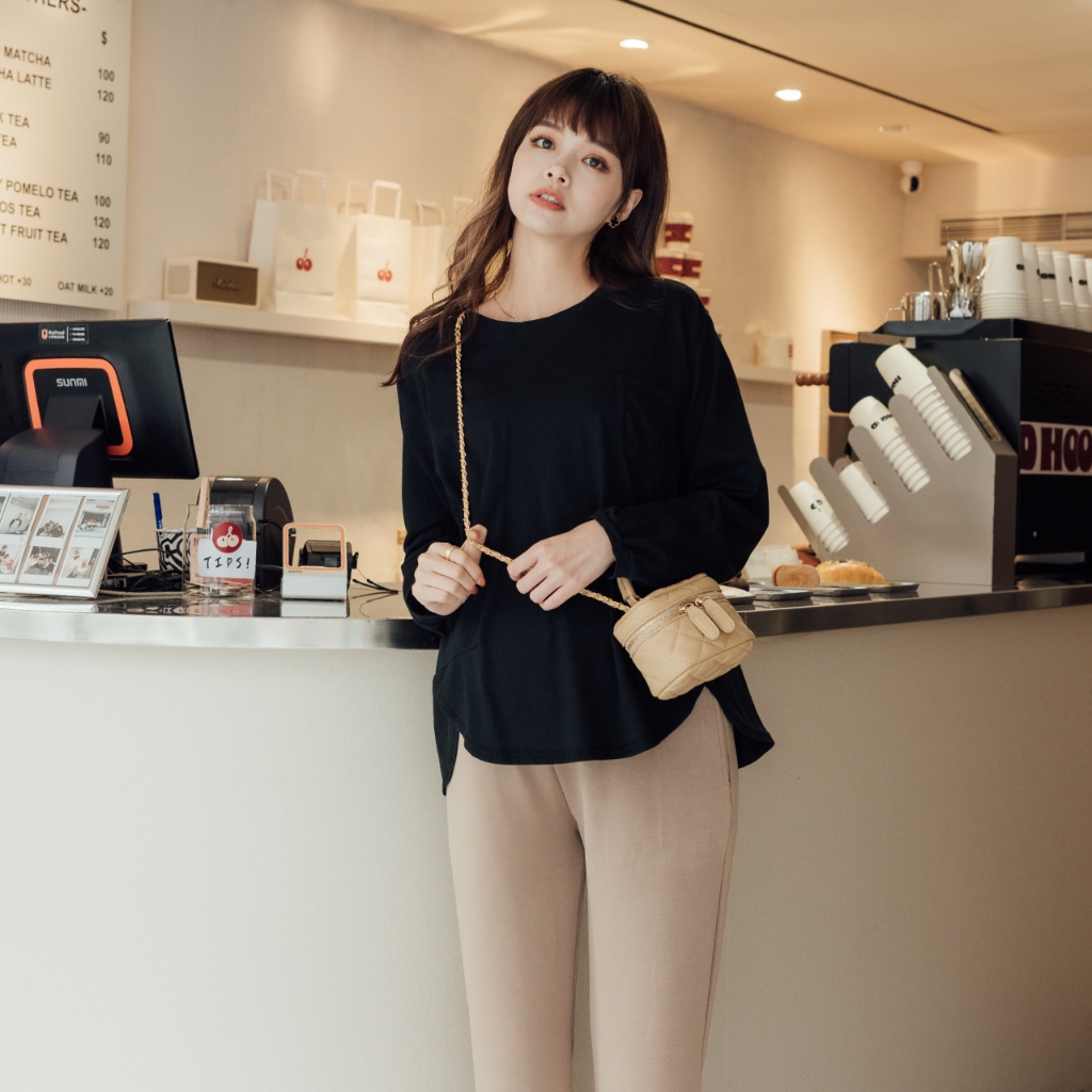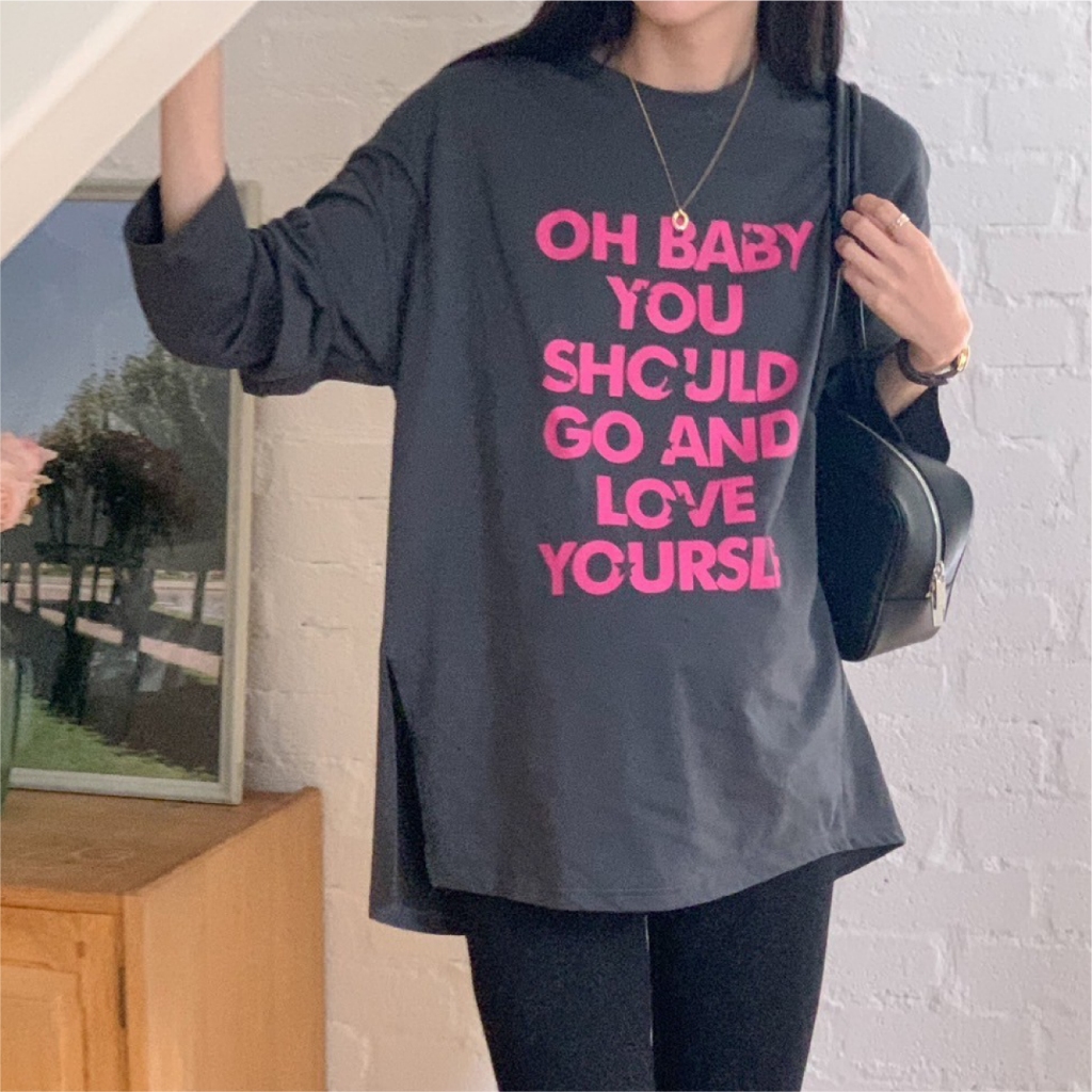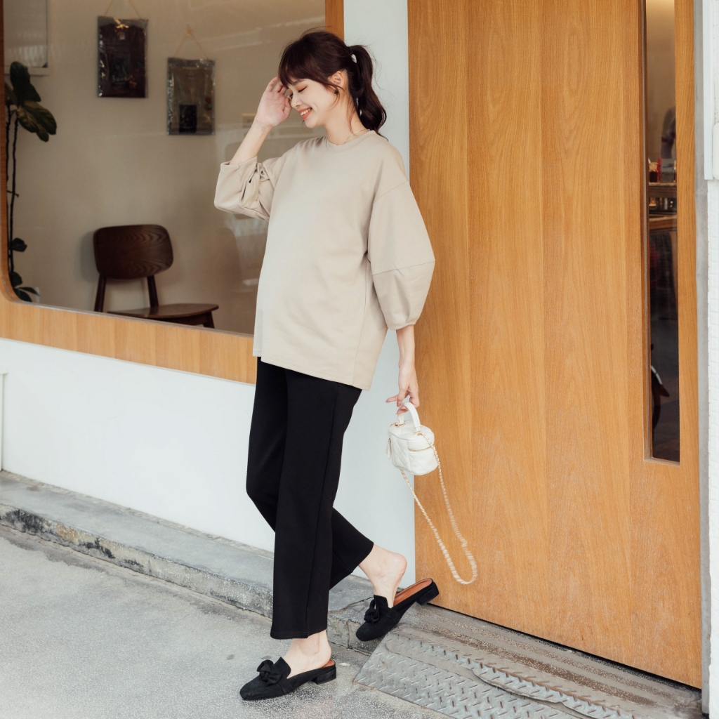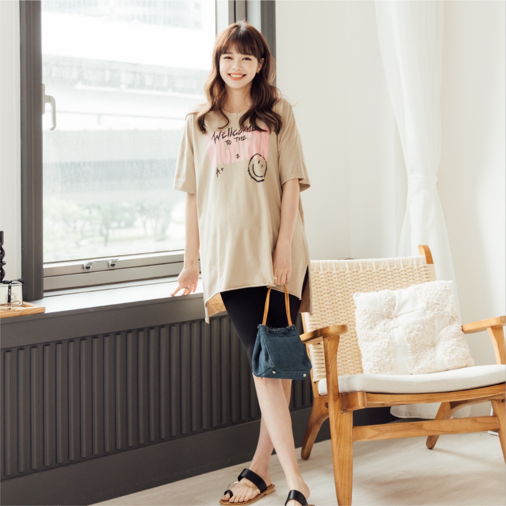 Mamamia孕婦裝 亮眼配色長版側開岔孕婦上衣 孕婦裝 寬T 長袖 百搭T T恤 [C3195]米灰|深灰|薄荷綠Maternity TopsMamamia孕婦裝