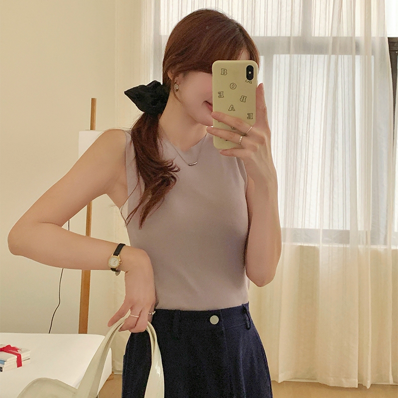 【HARPER】品牌自訂穿搭必備涼感針織背心 | 現貨 無袖上衣 背心 涼感【CLA23133J】霧粉,F|灰,F|咖,F|米杏,FTanks & CamisolesHARPER