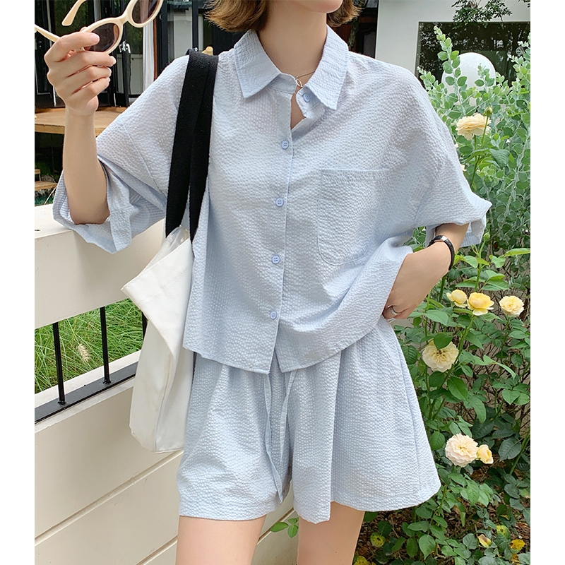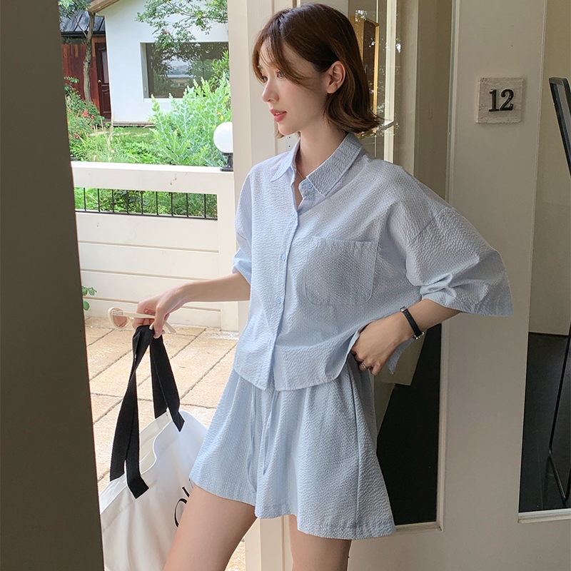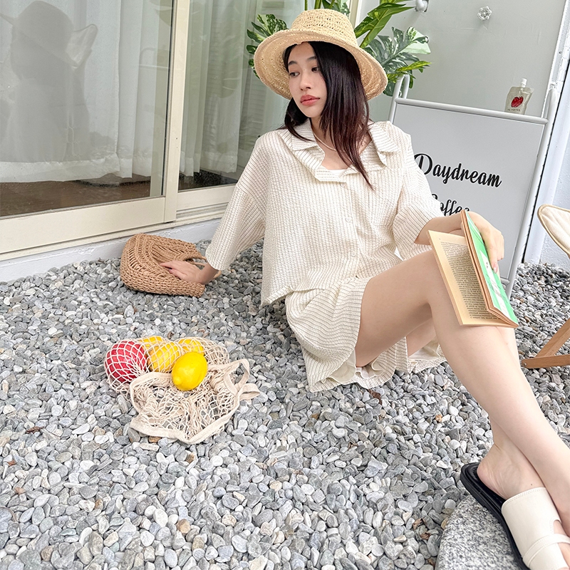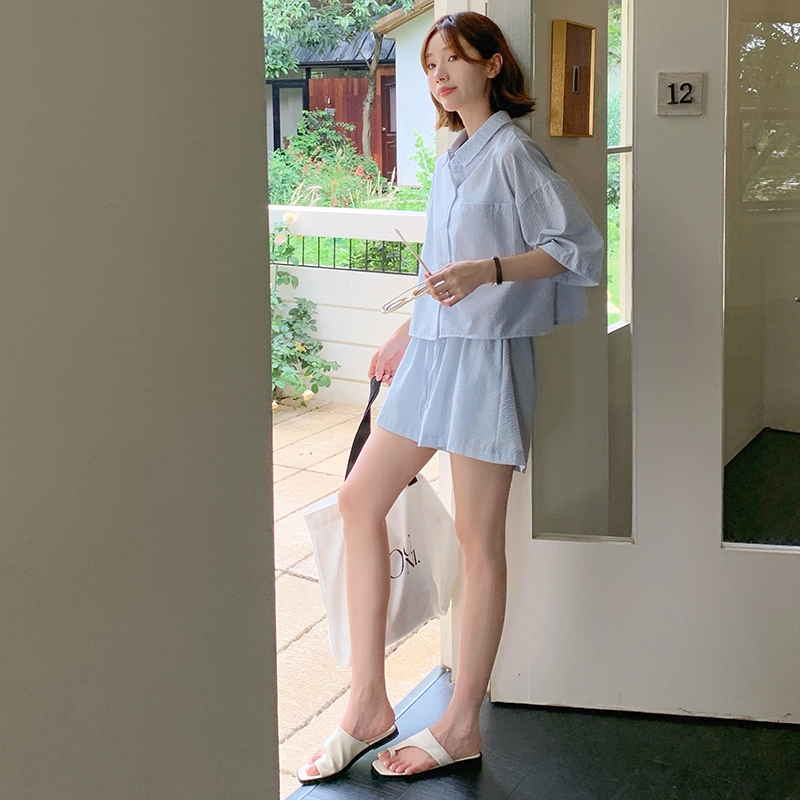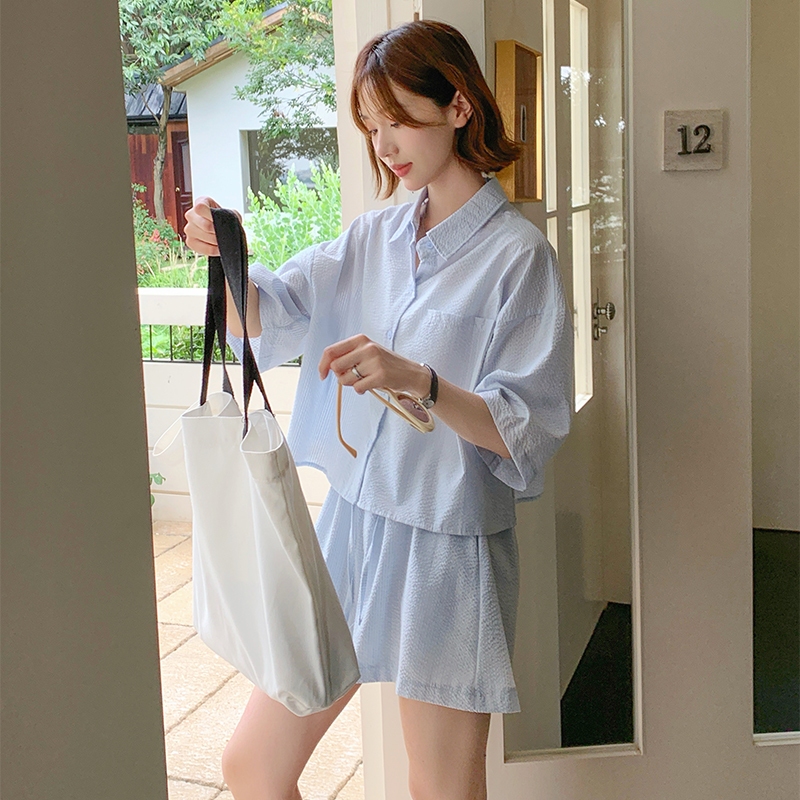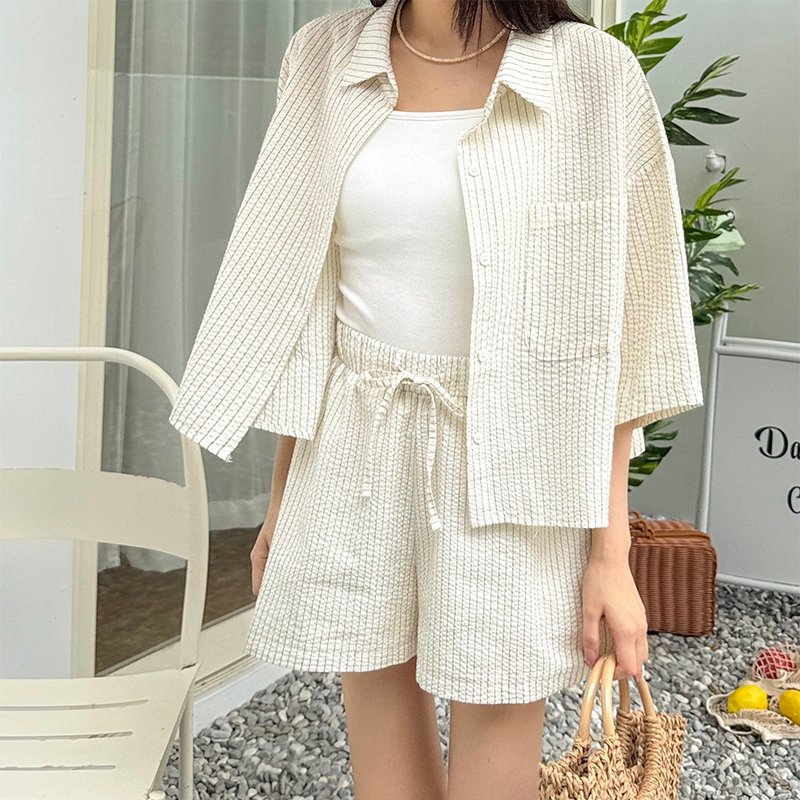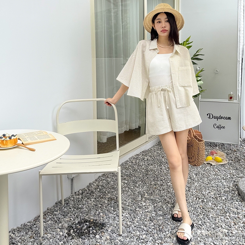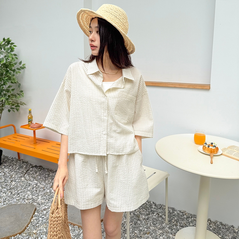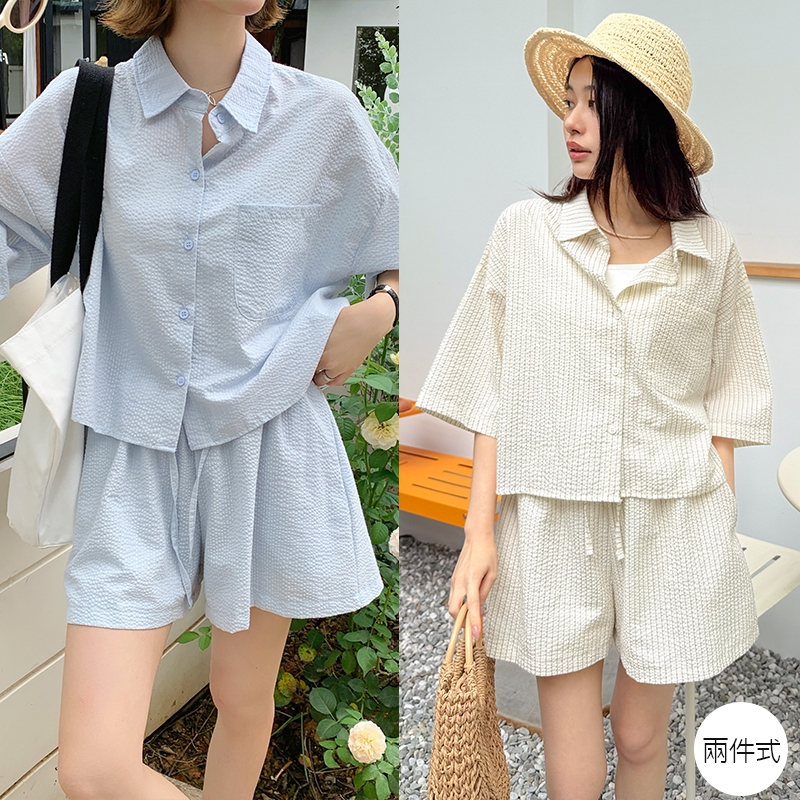 【HARPER】兩件式泡泡布直紋套裝 | 現貨 兩件式 套裝 條紋【DSD71623J】杏,F|藍,FIndividual SetsHARPER