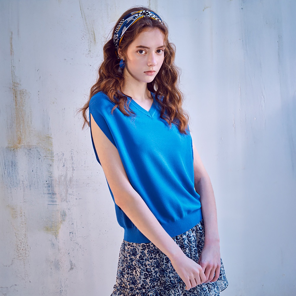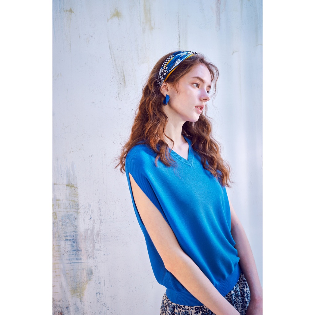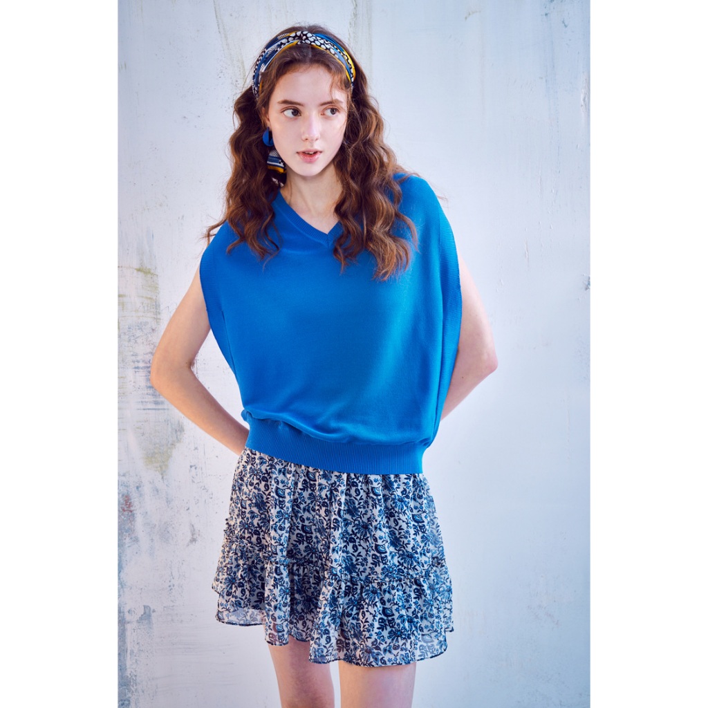 萬木花影 ● V領蓋袖箱型針織上衣藍,S|藍,M|藍,LLe Polka