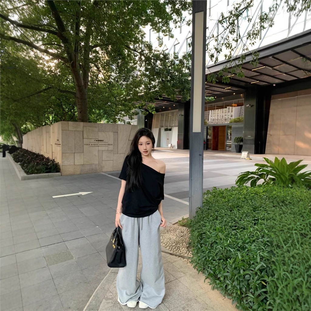 FUXI 辣妹斜肩上衣 短袖t恤女 寬鬆休閒露肩上衣 素色百搭一字領上衣 女裝 衣服【AB6】黑色,S 47公斤內|黑色,M 47-52公斤|黑色,L 53-62公斤|黑色,XL 62-68公斤|黑色,2XL68-74公斤|白色,S 47公斤內|白色,M 47-52公斤|白色,L 53-62公斤|白色,XL 62-68公斤|白色,2XL68-74公斤|灰色,S 47公斤內|灰色,M 47-52公斤|灰色,L 53-62公斤|灰色,XL 62-68公斤|灰色,2XL68-74公斤T-shirtsFUXI 服喜行