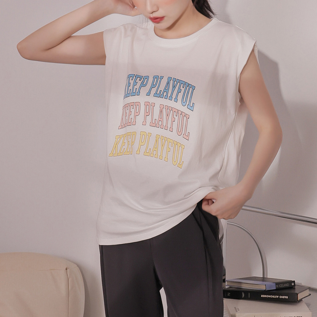 IN SHOP 休閒英字印花背心-共2色【KT222984】白|燕麥Tanks & CamisolesIN’ SHOP 旗艦店