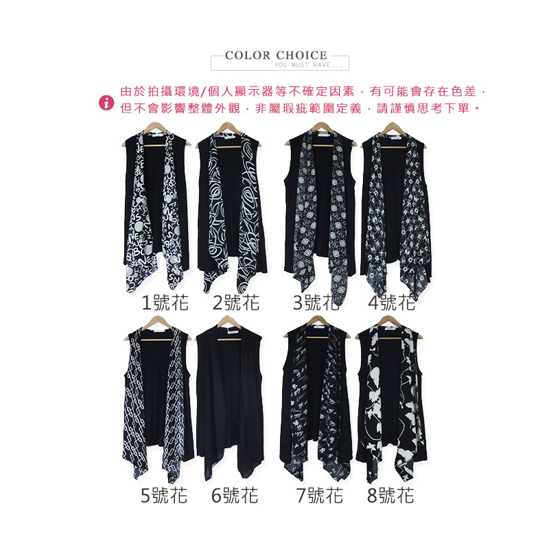 HL中大尺碼【23030001】顯瘦加分絲巾拼開襟造型背心外套 8色FREE SIZE3號花|FREE SIZE4號花|FREE SIZE5號花|FREE SIZE6號花|FREE SIZE7號花|FREE SIZE8號花|FREE SIZE1號花|FREE SIZE2號花VestsHL中大尺碼
