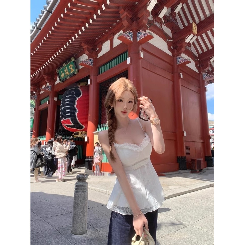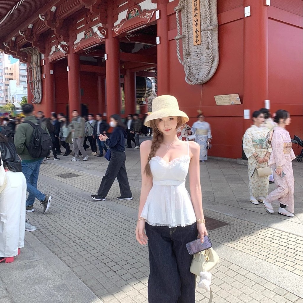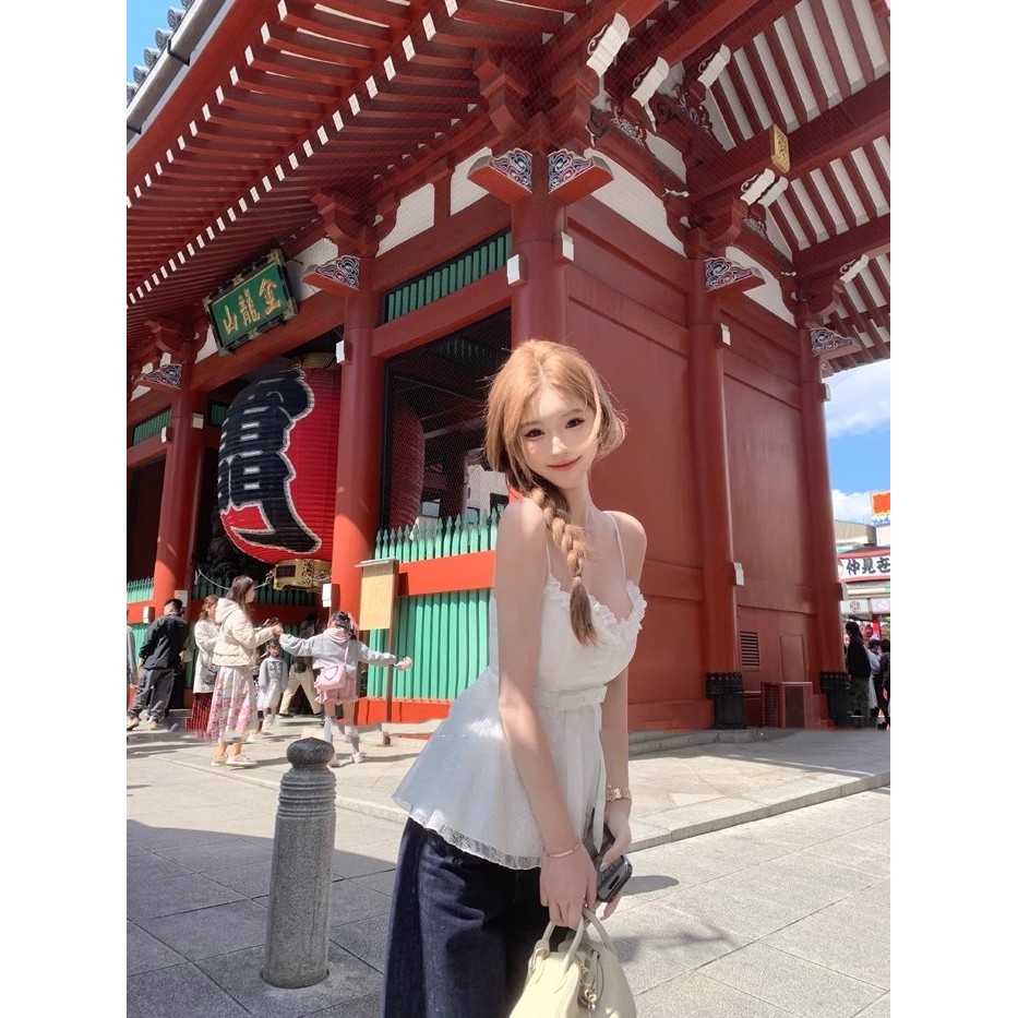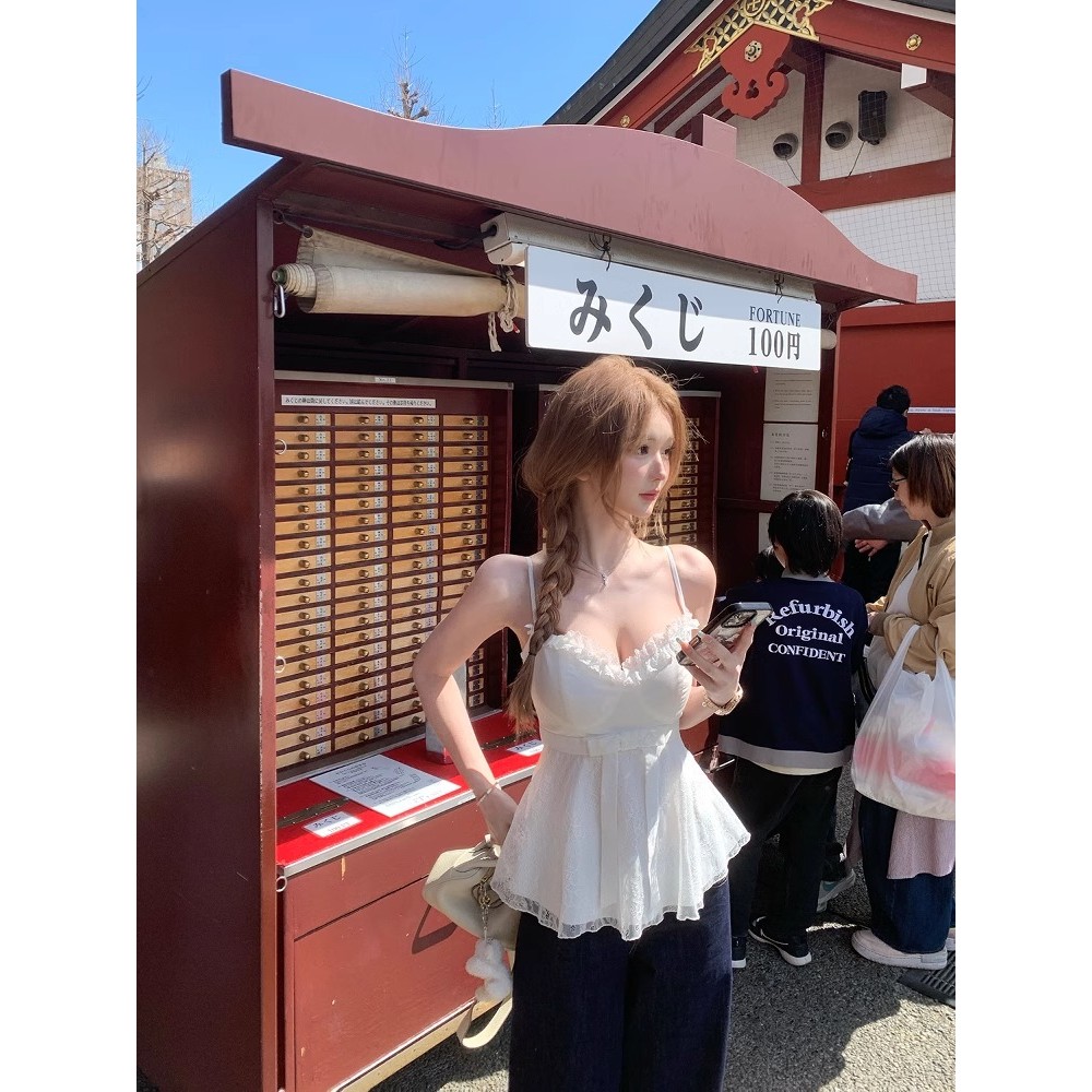 【HOT 本舖】 JMSHOP初戀白月光甜美吊帶背心女設計感蝴蝶結收腰無袖白色上衣白色,S|白色,M|白色,L|白色,XLTanks & CamisolesHOT本舖|女裝館