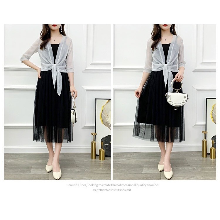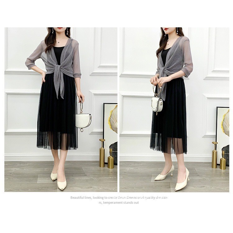 【HOT 本舖】金銀絲披肩女夏季仙氣網紗小外套外搭簡約開衫短袖韓版女生小披肩白色,均碼 100-130|灰色,均碼 100-130|黑色,均碼 100-130|紅色,均碼 100-130|寶藍色,均碼 100-130|紫色,均碼 100-130JacketsHOT本舖|女裝館