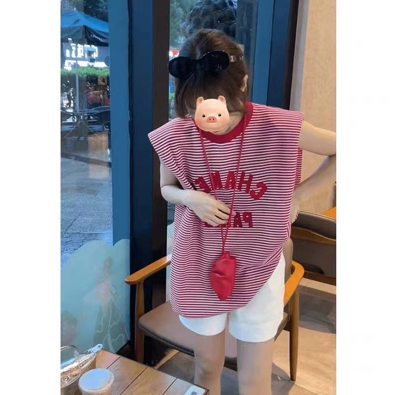 【HOT 本舖】 條紋薄款冰絲針織衫女2024新款夏季寬鬆針織背心無袖上衣女夏白色,均碼|黑色,均碼|紅色,均碼Tanks & CamisolesHOT本舖|女裝館