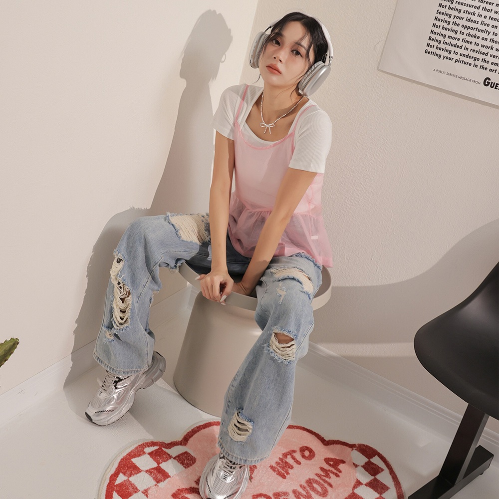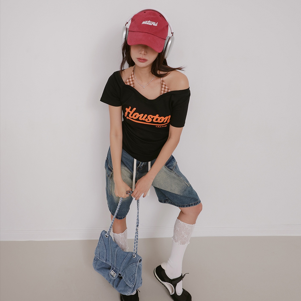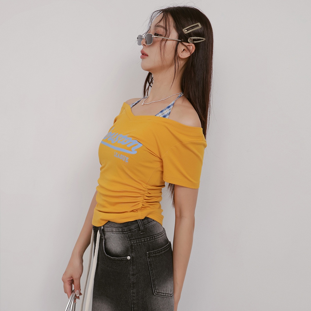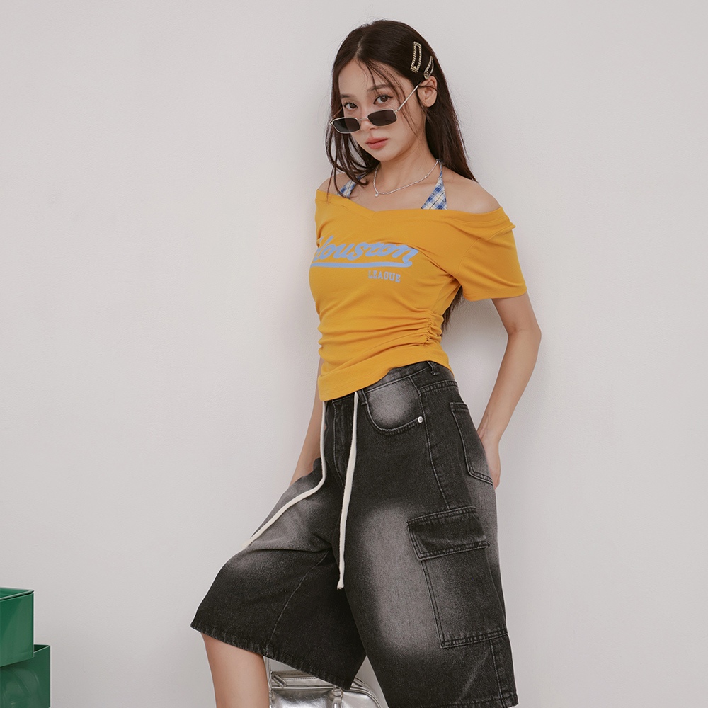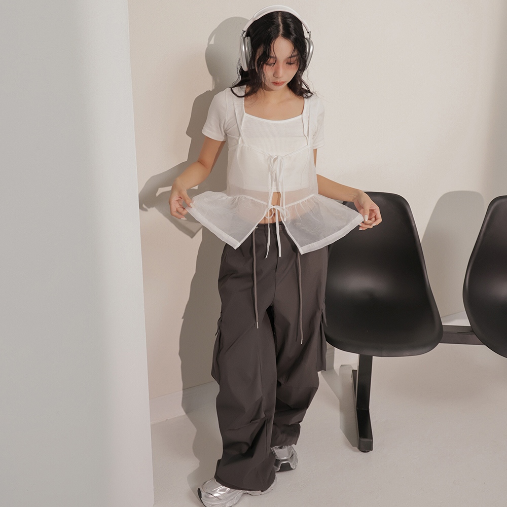 IN SHOP 格紋綁帶假兩件撞色T-共4色【KT224570】白|黃|灰|黑T-shirtsIN’ SHOP 旗艦店