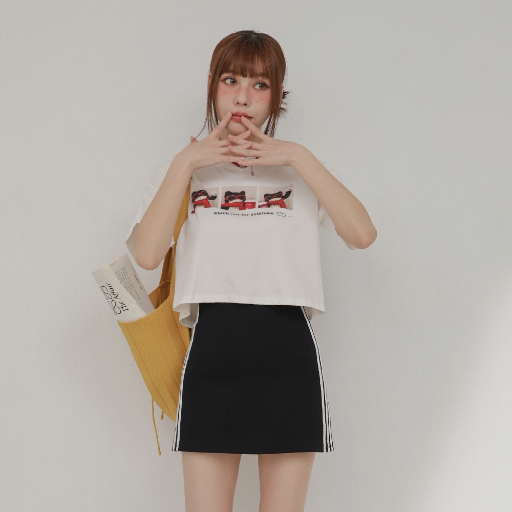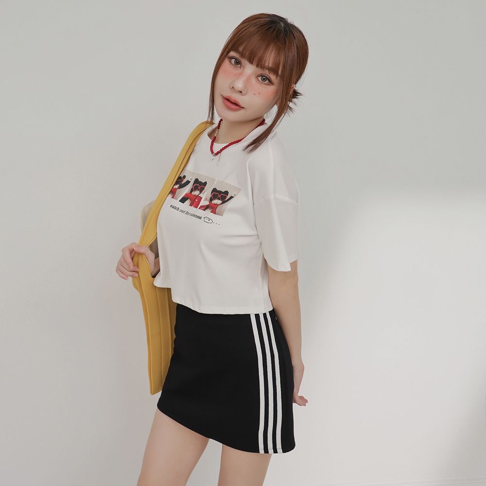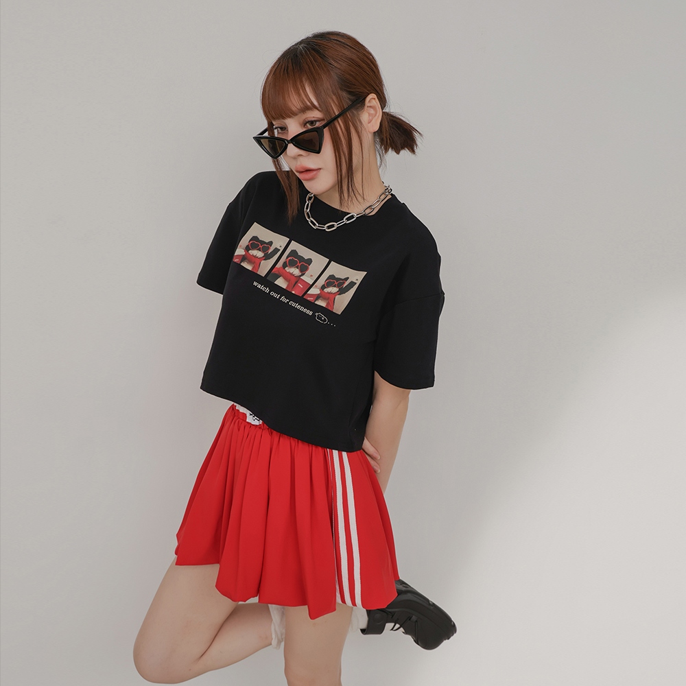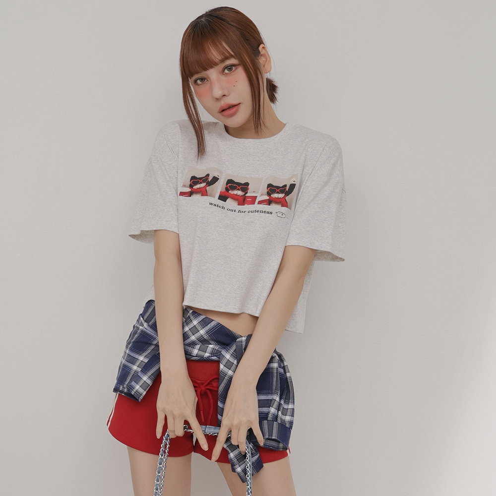IN SHOP 愛心眼鏡黑貓咪短T-共3色【KT224583】白|花灰|黑T-shirtsIN’ SHOP 旗艦店