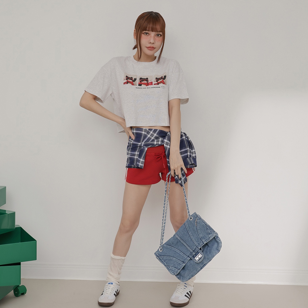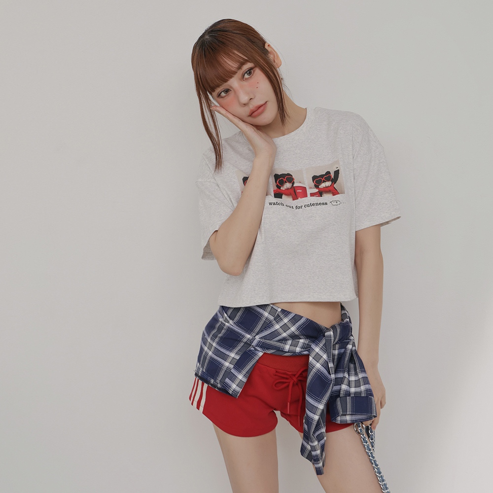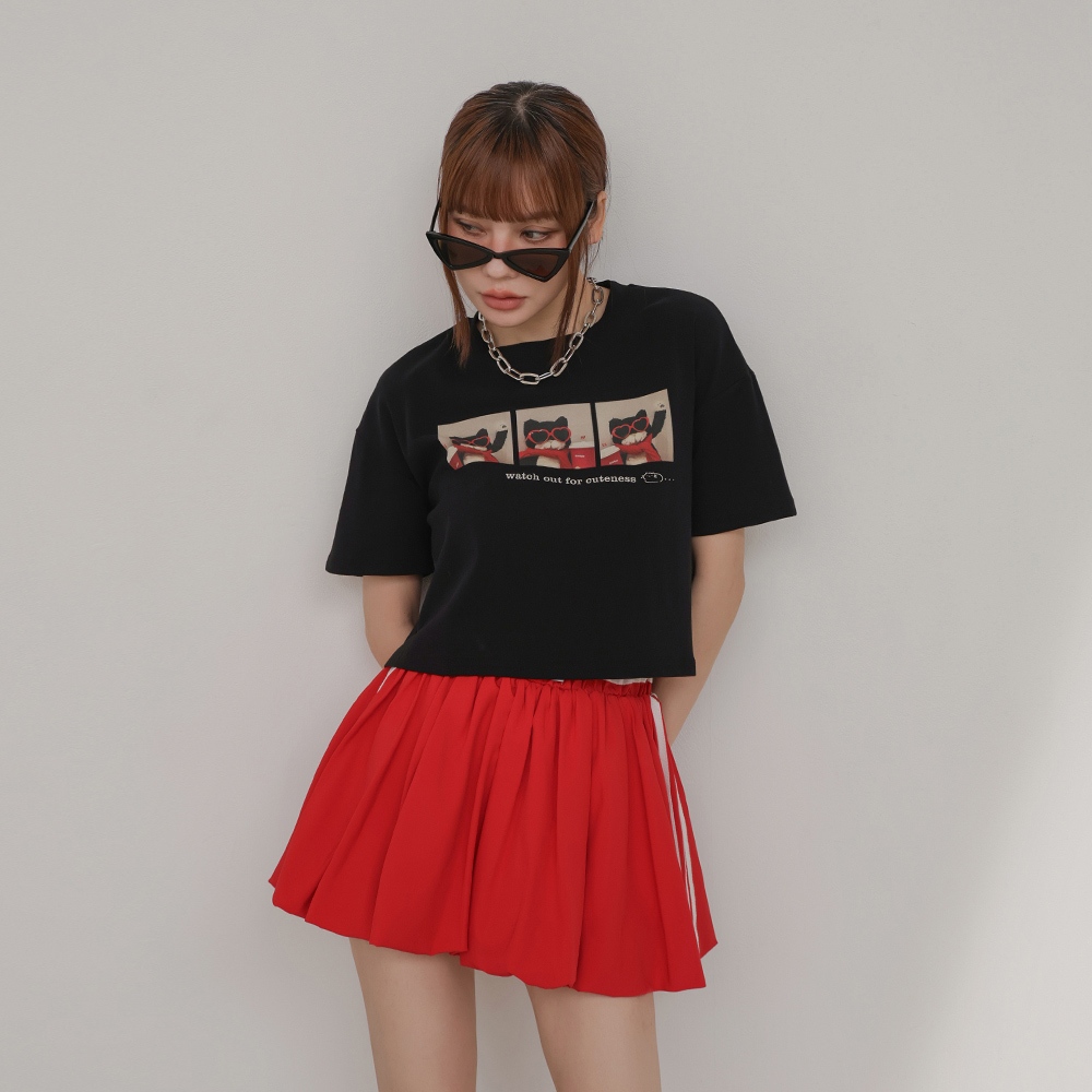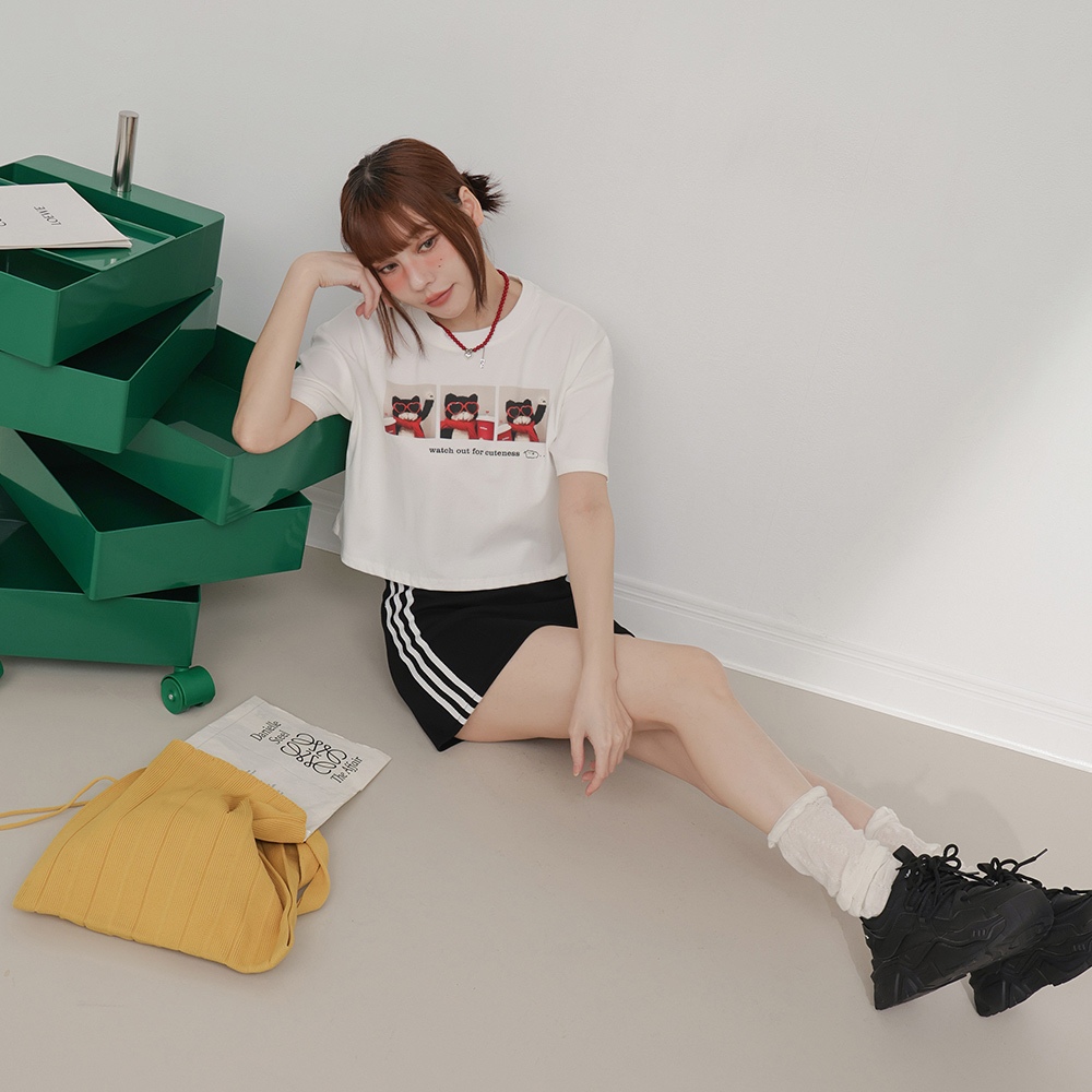 IN SHOP 愛心眼鏡黑貓咪短T-共3色【KT224583】白|花灰|黑T-shirtsIN’ SHOP 旗艦店