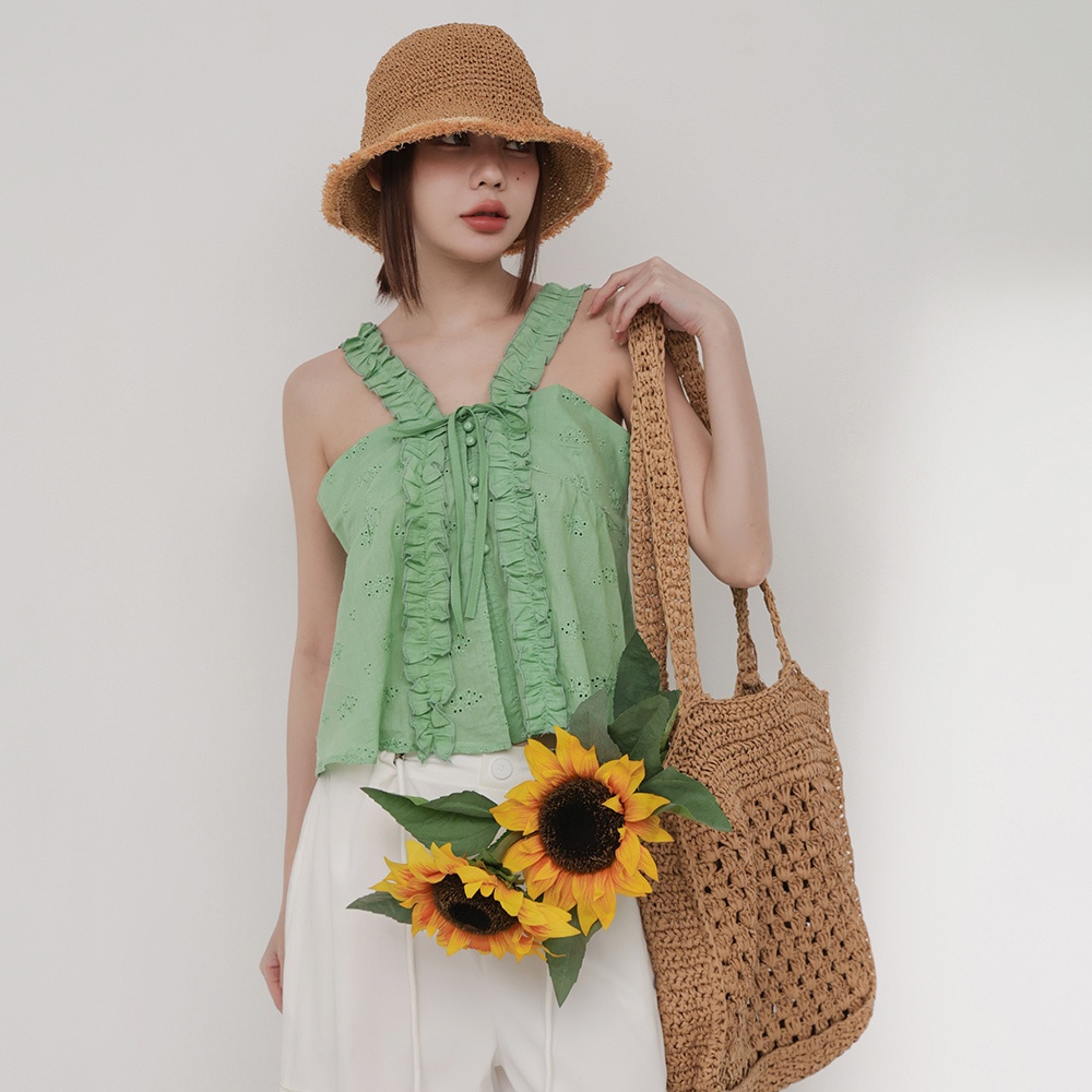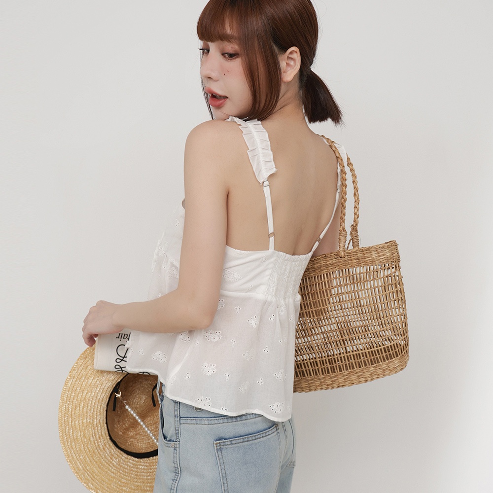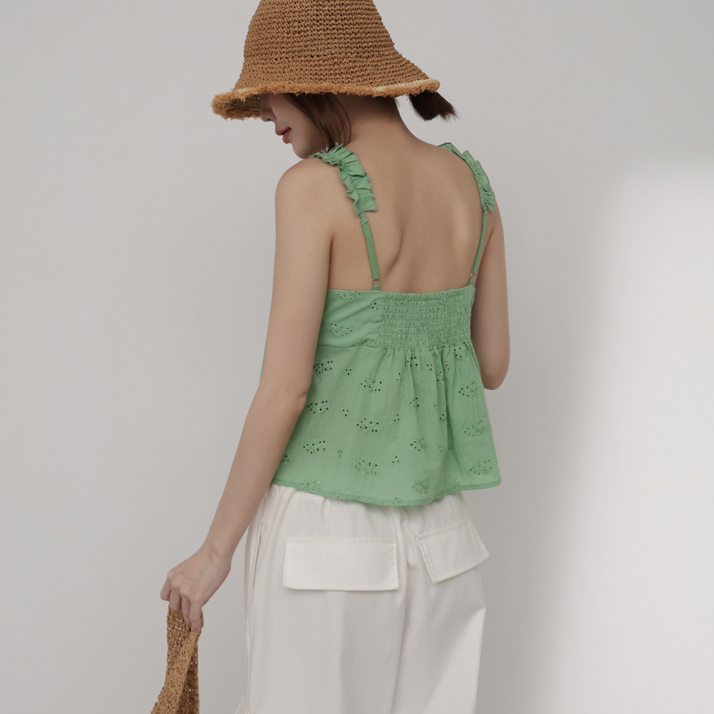 IN SHOP V字肩帶緹花背心-共3色【KT224615】白|綠|黑Tanks & CamisolesIN’ SHOP 旗艦店