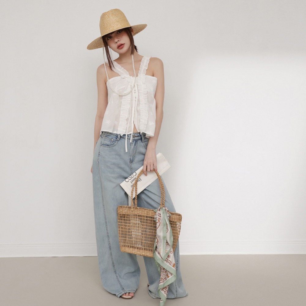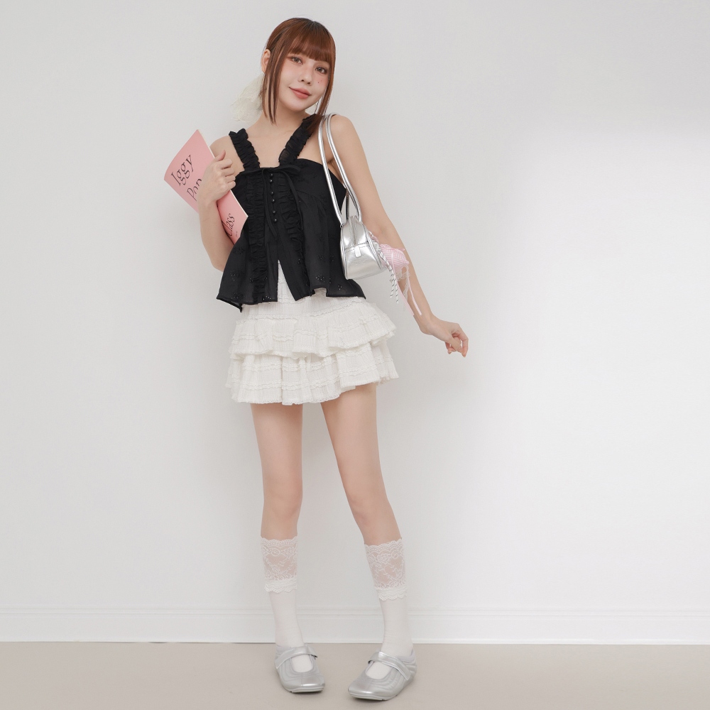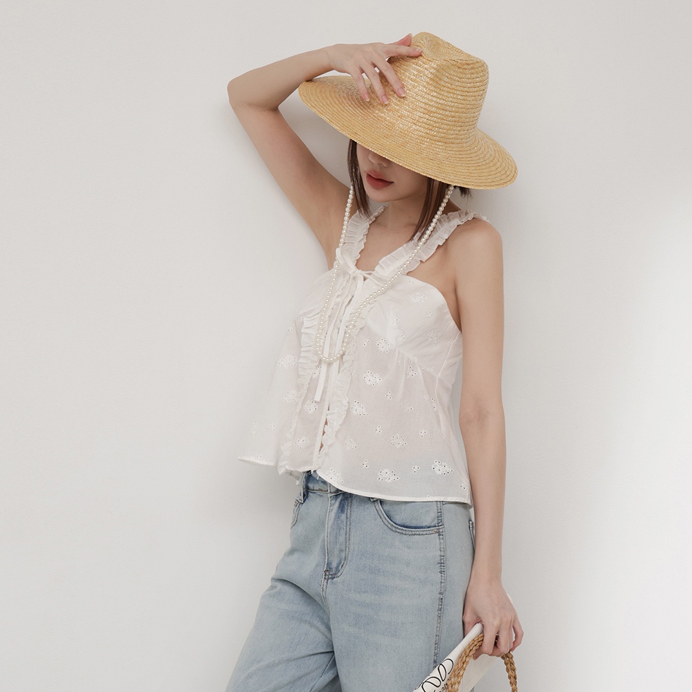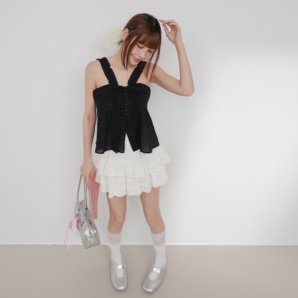 IN SHOP V字肩帶緹花背心-共3色【KT224615】白|綠|黑Tanks & CamisolesIN’ SHOP 旗艦店