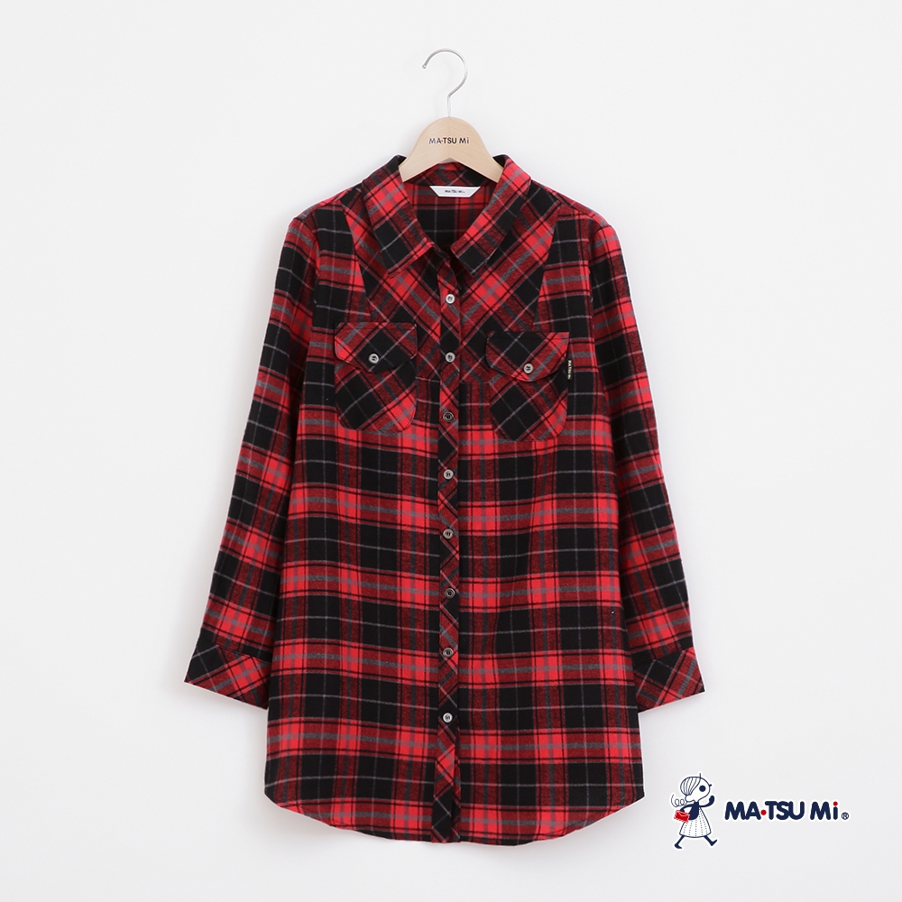 MA‧TSU Mi 雙口袋格紋棉料長版襯衫(紅.橘)紅,M|紅,L|橘,M|橘,LShirts & BlousesMA•TSU Mi瑪之蜜官方旗艦店