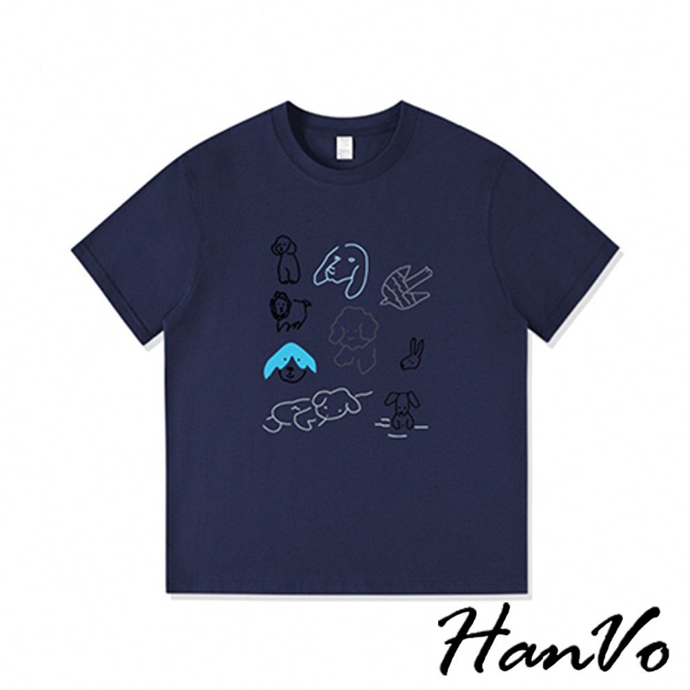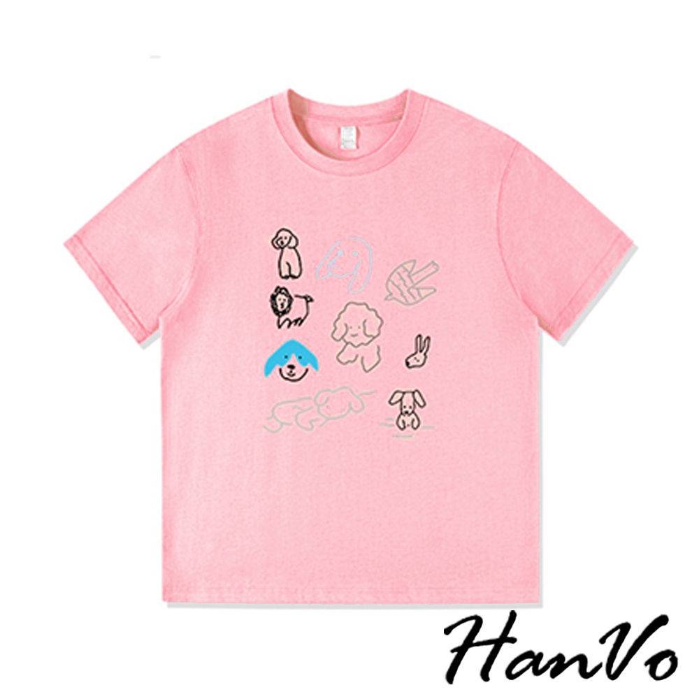 【HanVo】可愛動物圖案純棉短袖T恤 休閒百搭潮流上衣 韓系女裝 女生衣著 A01-0330粉色,M|粉色,L|粉色,XL|粉色,2XL|深藍,M|深藍,L|深藍,XL|深藍,2XL|白色,M|白色,L|白色,XL|白色,2XLT-shirtsHanVo Wear Collection