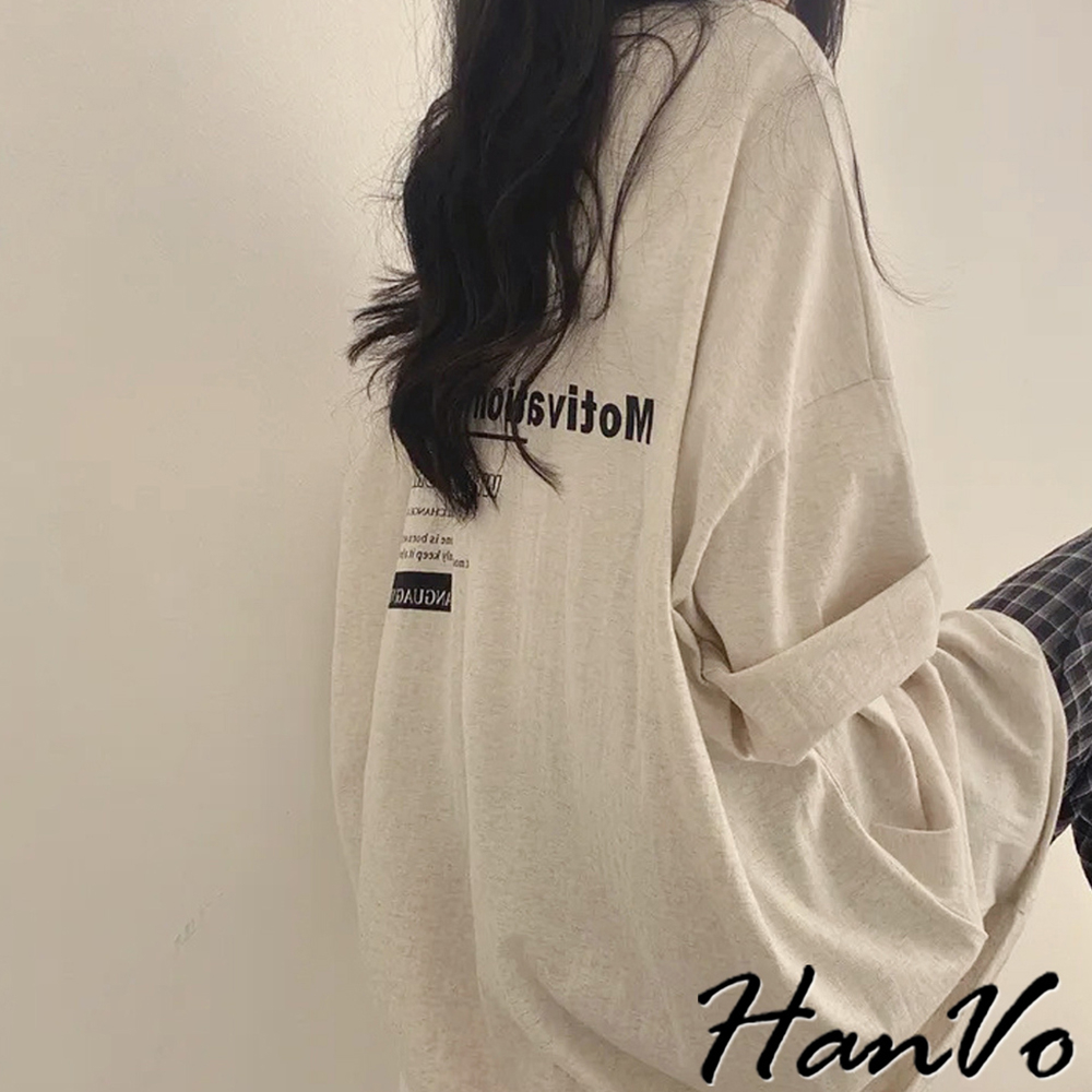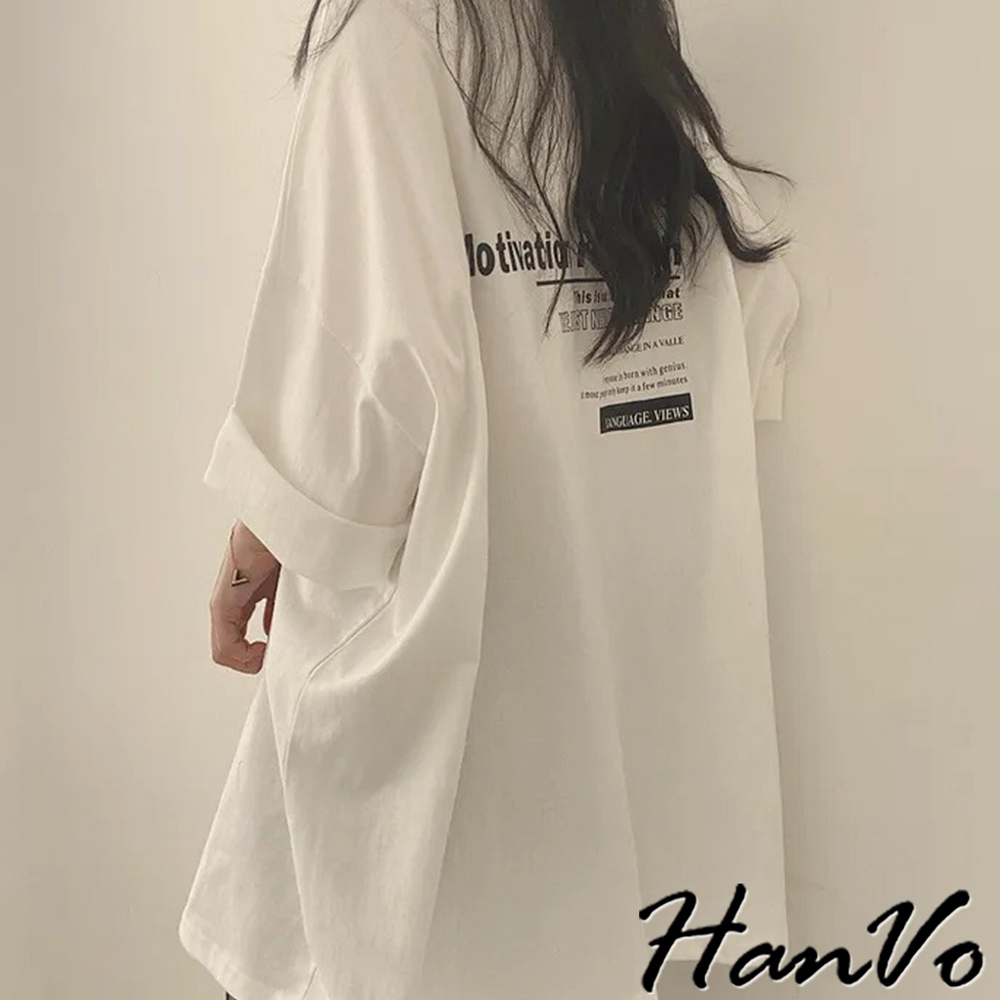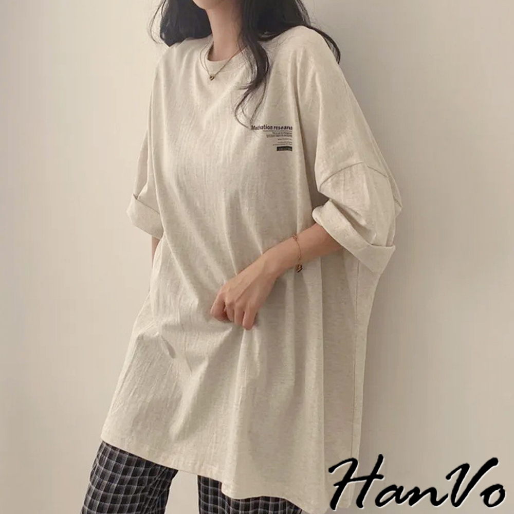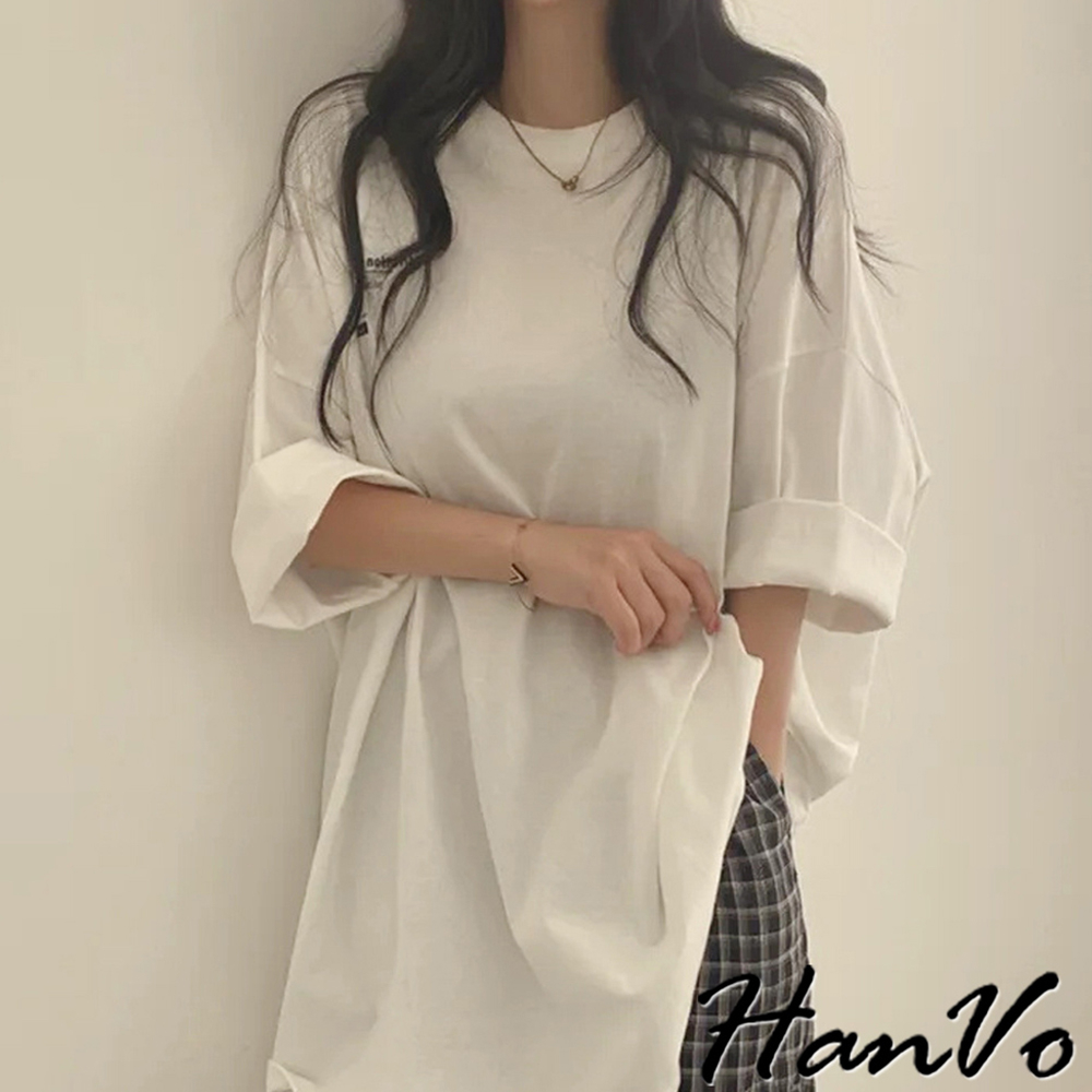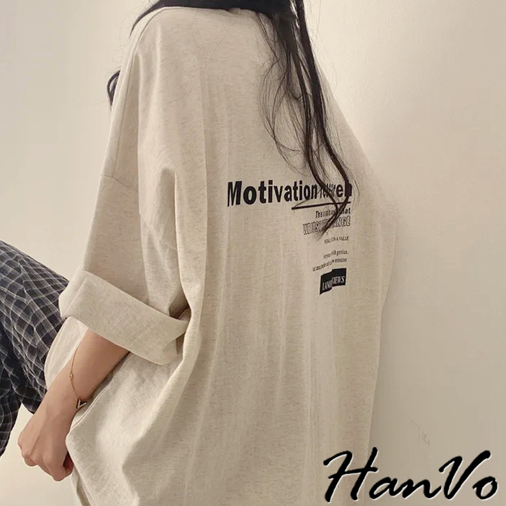 【HanVo】簡約前後字母印花T恤 寬鬆棉質上衣 舒適親膚透氣百搭圓領 韓系衣著 女生上衣 女生衣著 A01-0065白色|海藍|灰色T-shirtsHanVo Wear Collection