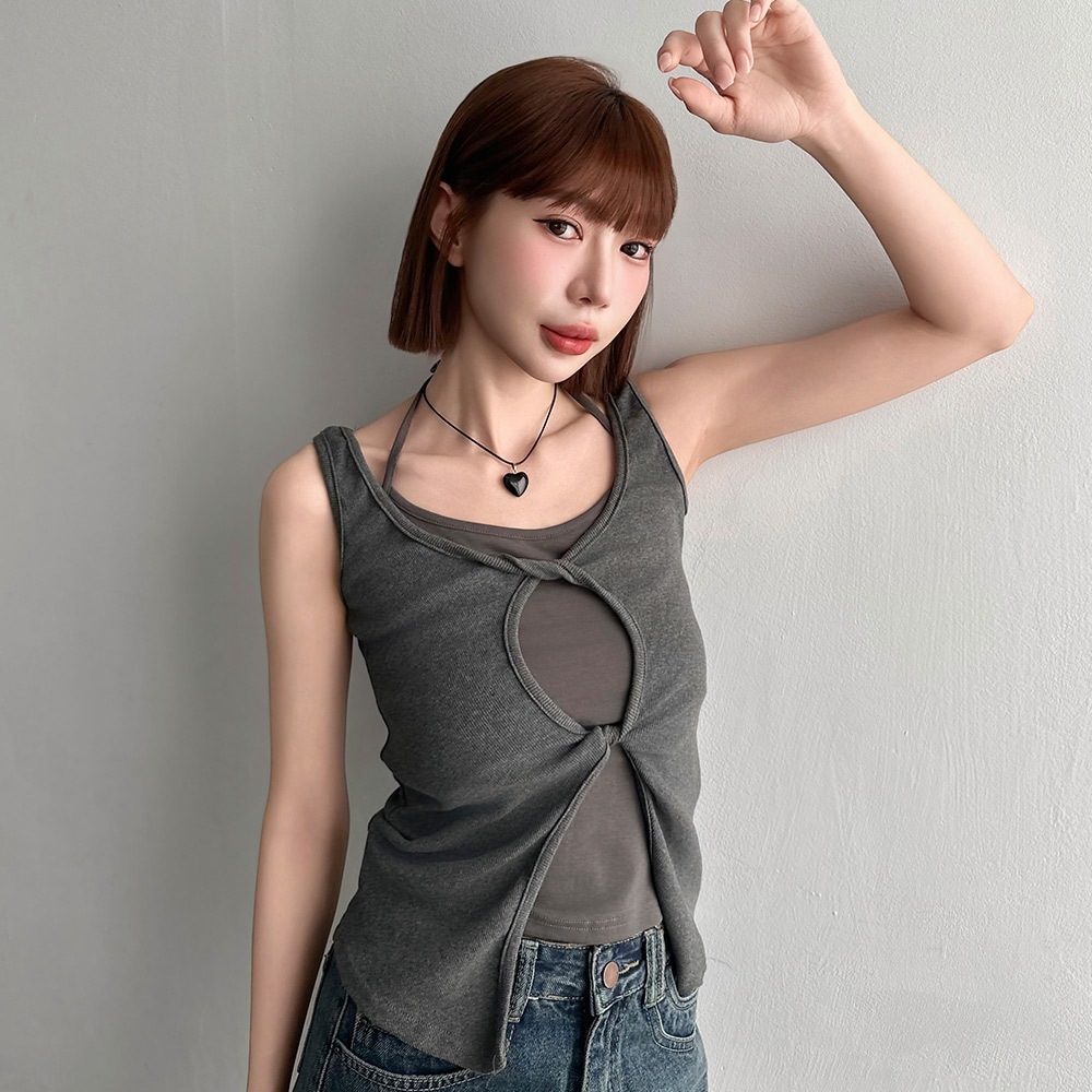 LULUS/設計感假兩件挖洞背心2色【A01250559】250730深灰|白Tanks & CamisolesLULUS
