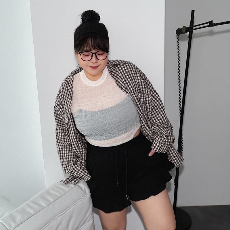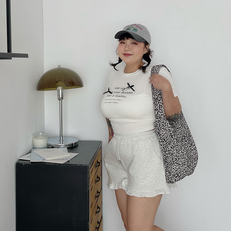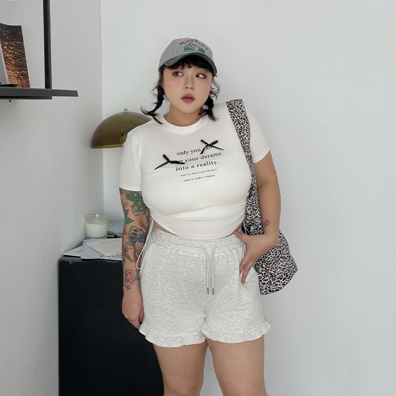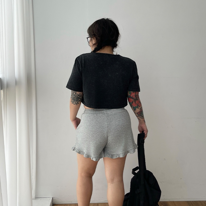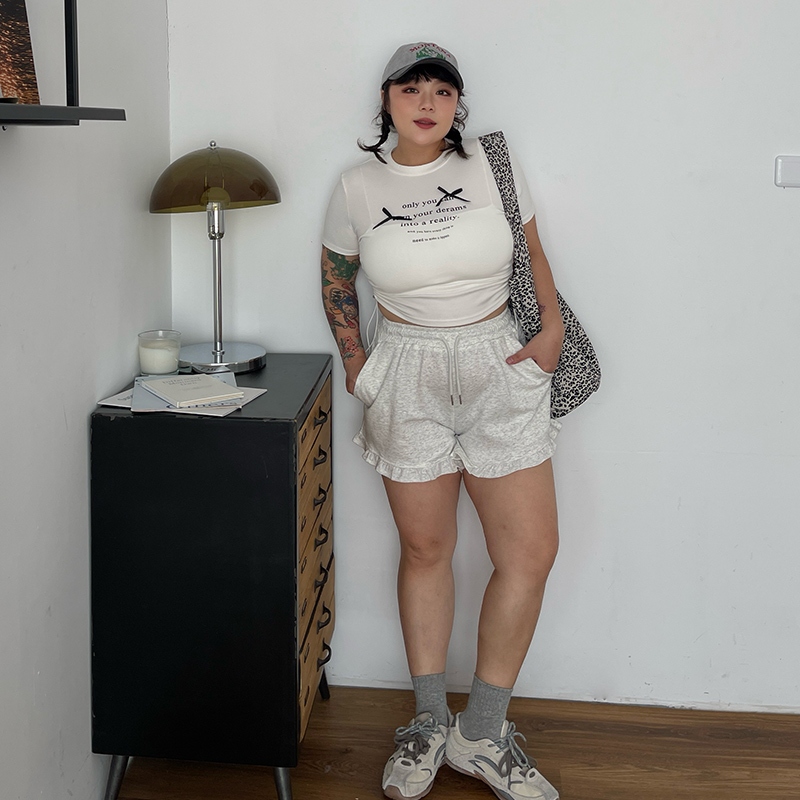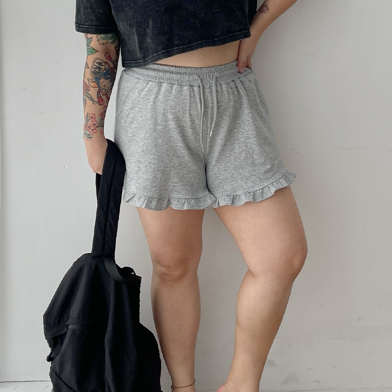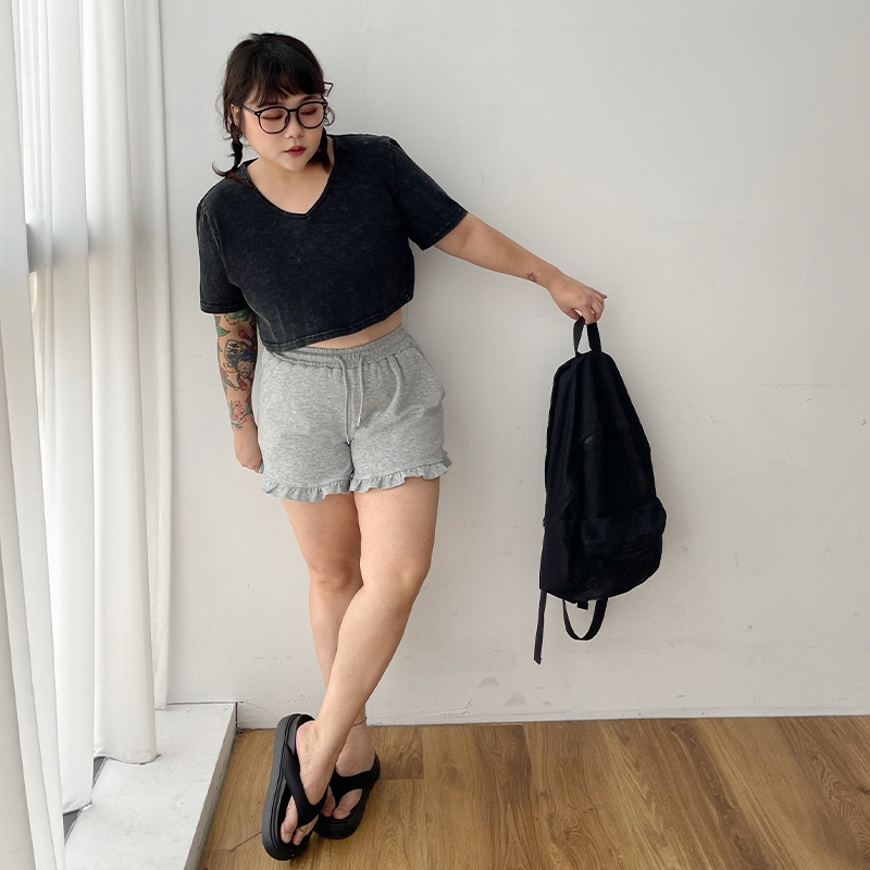 LULUS/PLUS/中大尺碼/少女感荷葉邊棉質短褲3色【A04250095】250604花灰|黑|白灰ShortsLULUS