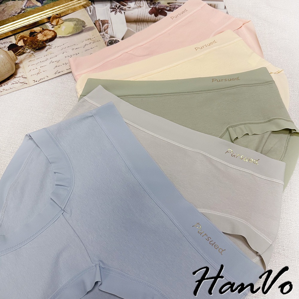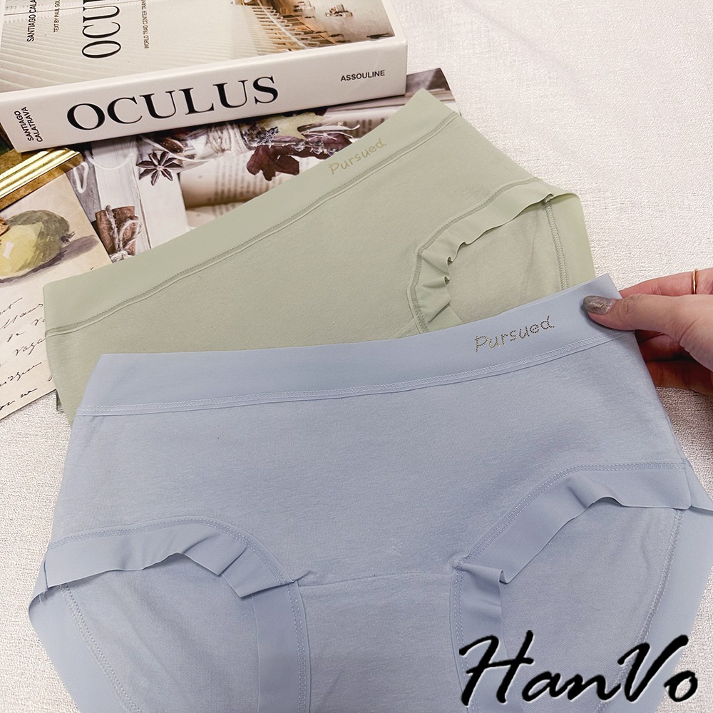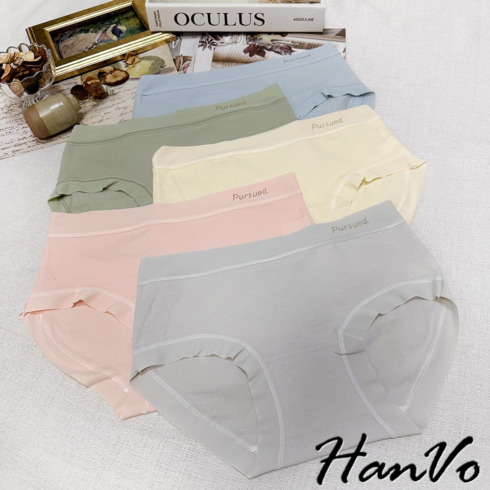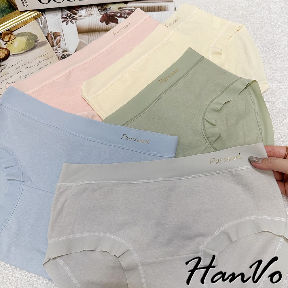 【HanVo】寬腰帶英文標純棉內褲 親膚舒適 底襠中腰三角褲 透氣內褲 女內褲 內褲 A11-5318海洋藍|春草綠|公主粉|奶油杏|冰川灰PantiesHanVo Wear Collection