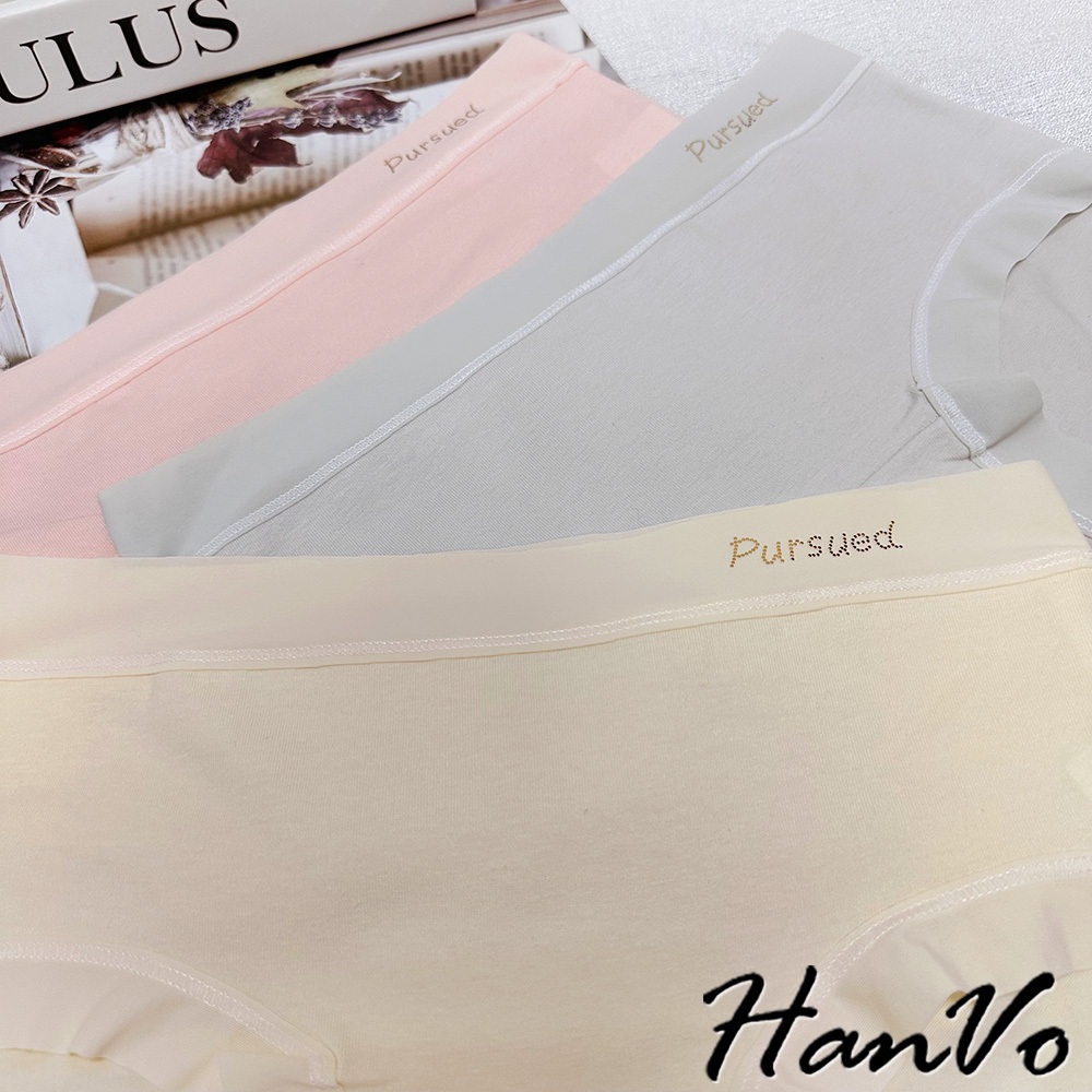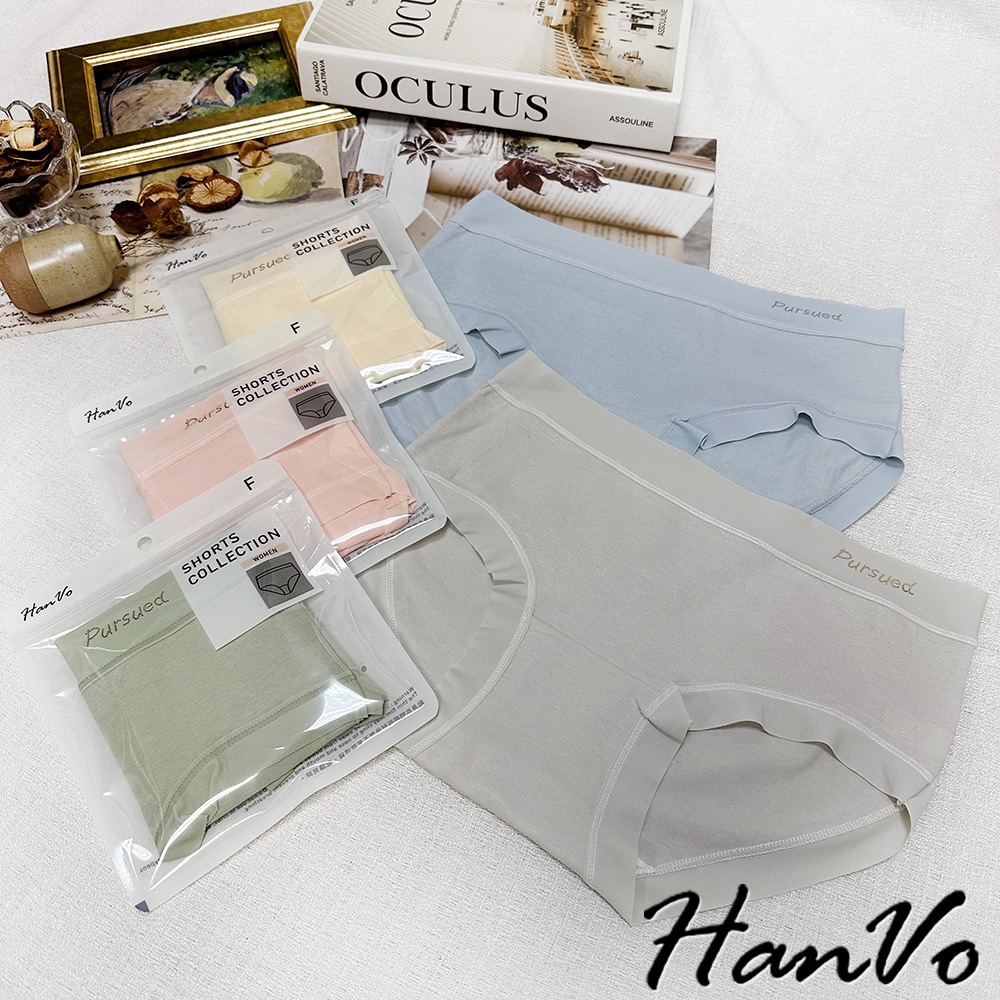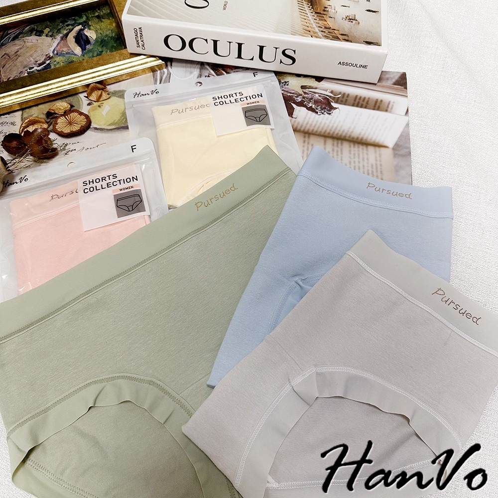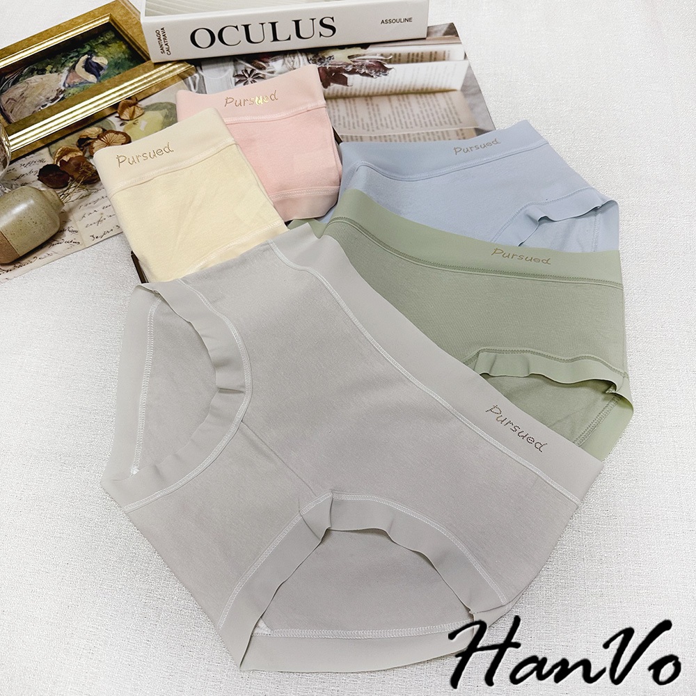 【HanVo】寬腰帶英文標純棉內褲 親膚舒適 底襠中腰三角褲 透氣內褲 女內褲 內褲 A11-5318海洋藍|春草綠|公主粉|奶油杏|冰川灰PantiesHanVo Wear Collection