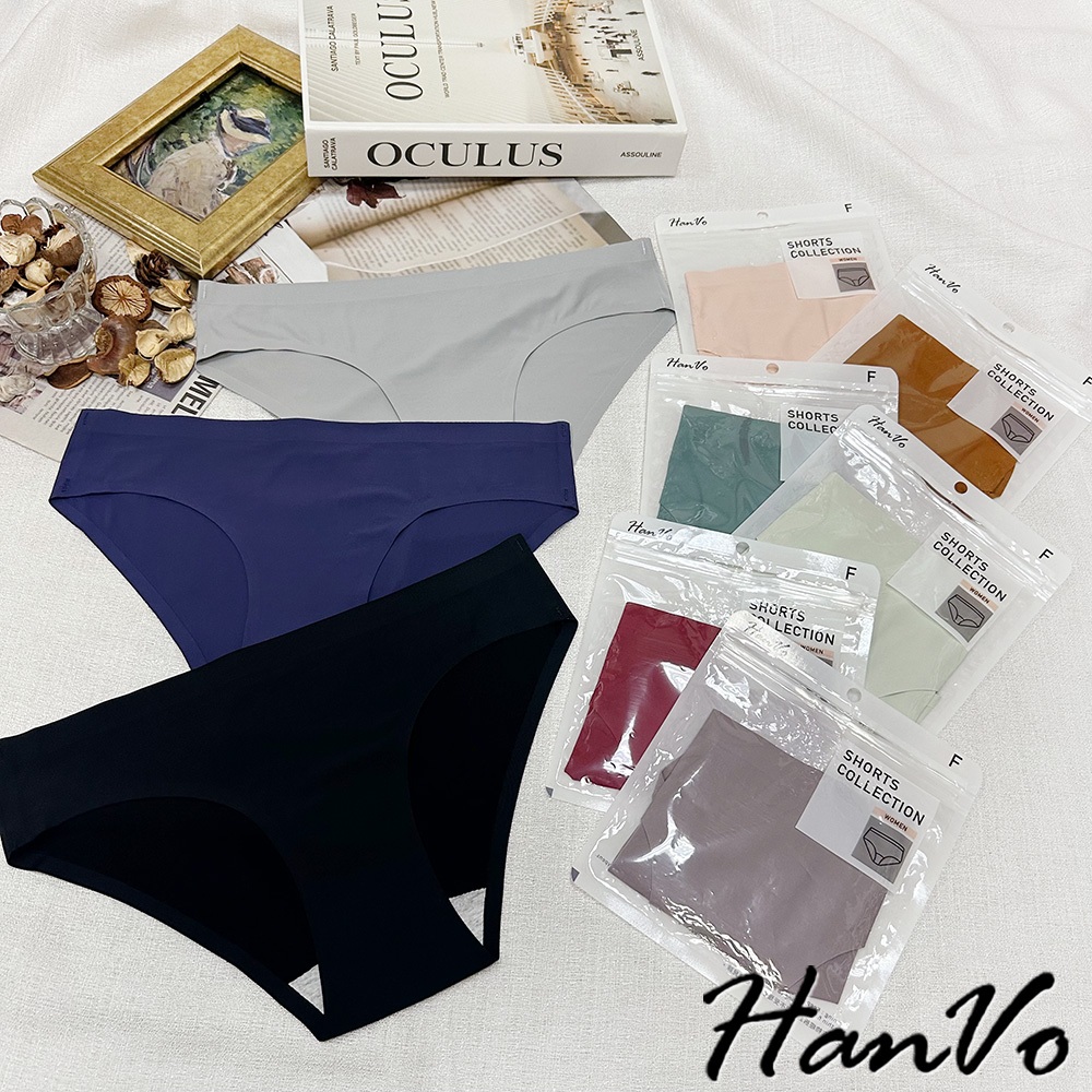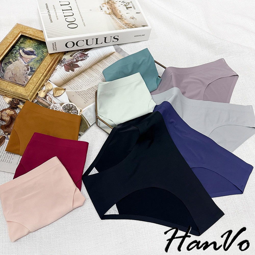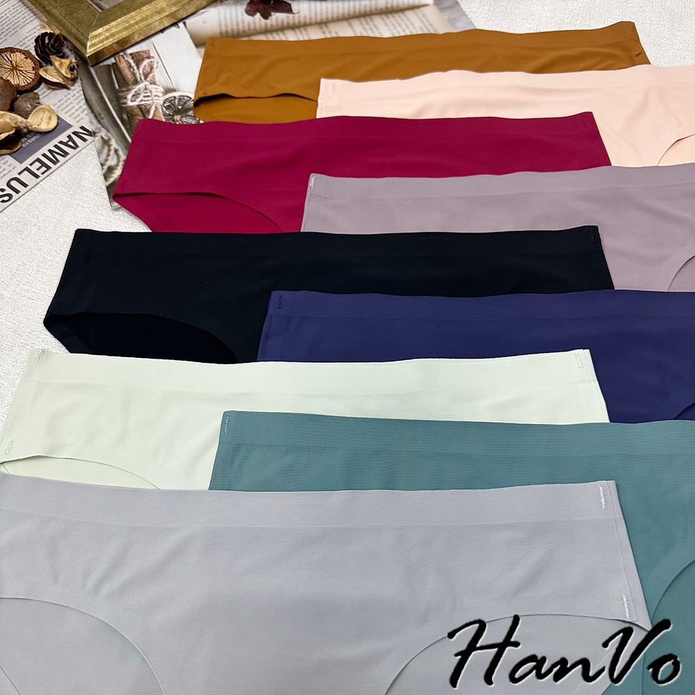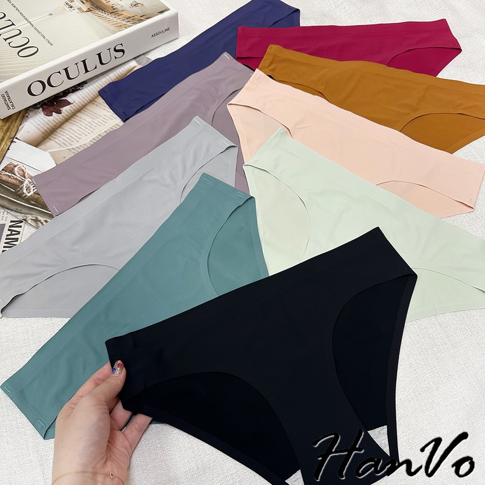 【HanVo】素色冰絲無痕一片式內褲 透氣涼感薄款中低腰 獨立包裝 女生內褲 無痕內褲 冰絲內褲 內褲 A11-5290春草綠,L|孔雀綠,L|咖喱黃,L|貝殼灰,L|花瓣粉,L|深海藍,L|霧灰紫,L|午夜黑,L|胭脂紅,LPantiesHanVo Wear Collection
