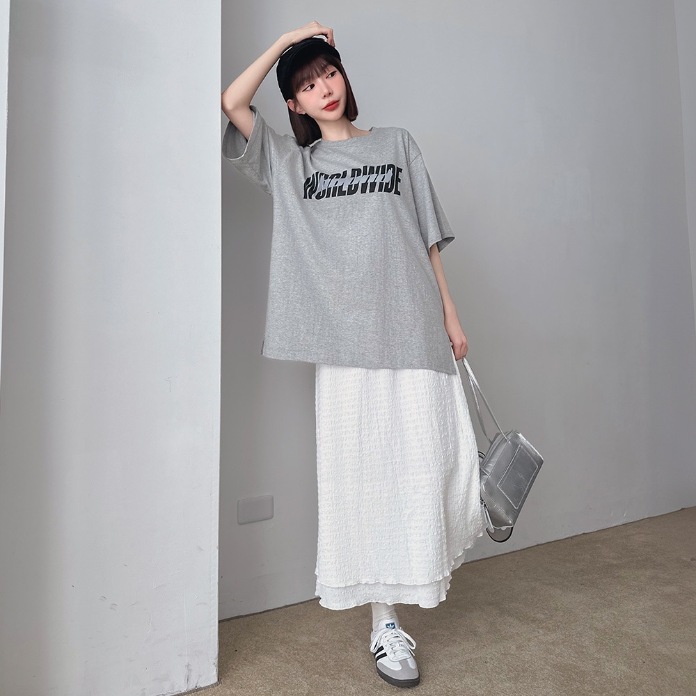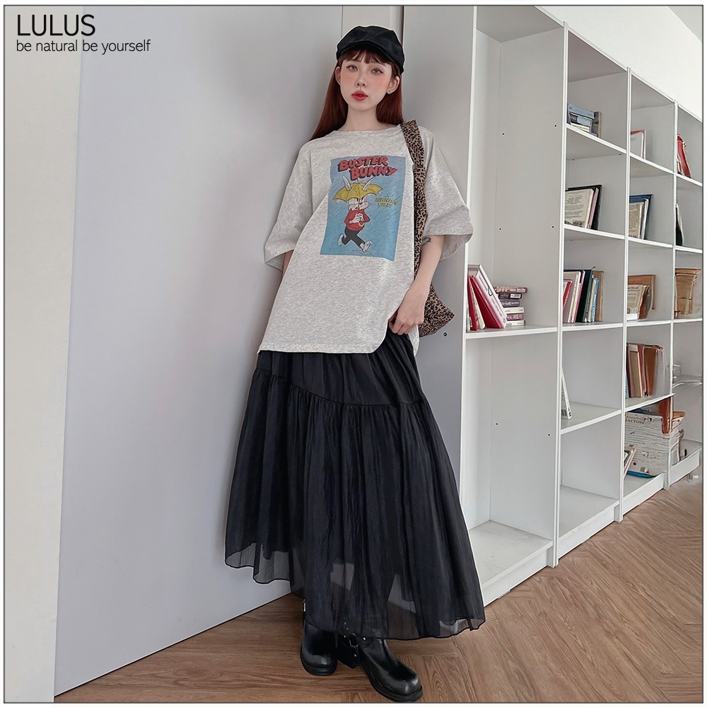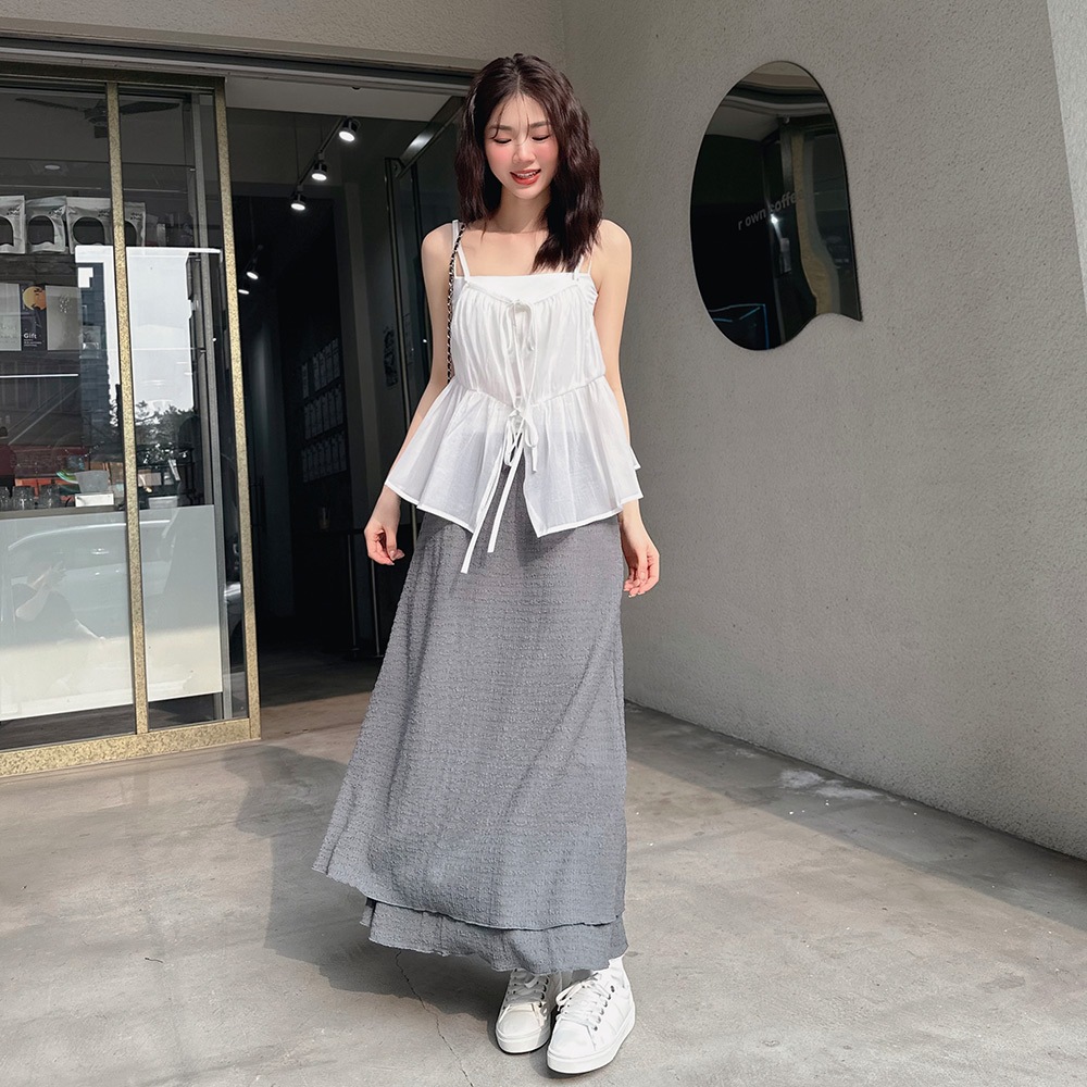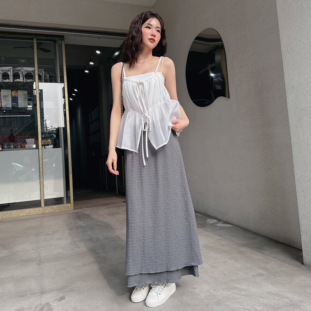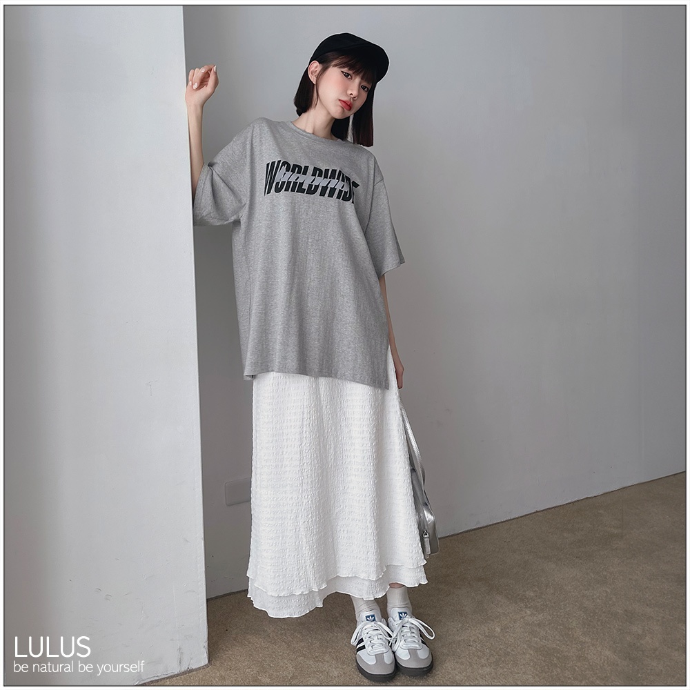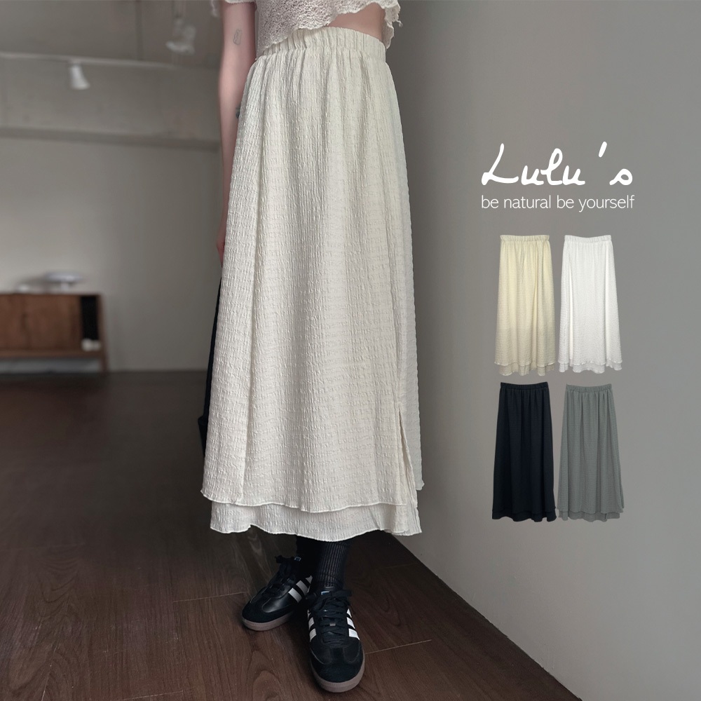 LULUS/鬆緊立體壓紋雙層長裙4色【A05250029】250507杏|深灰|黑|白LULUS
