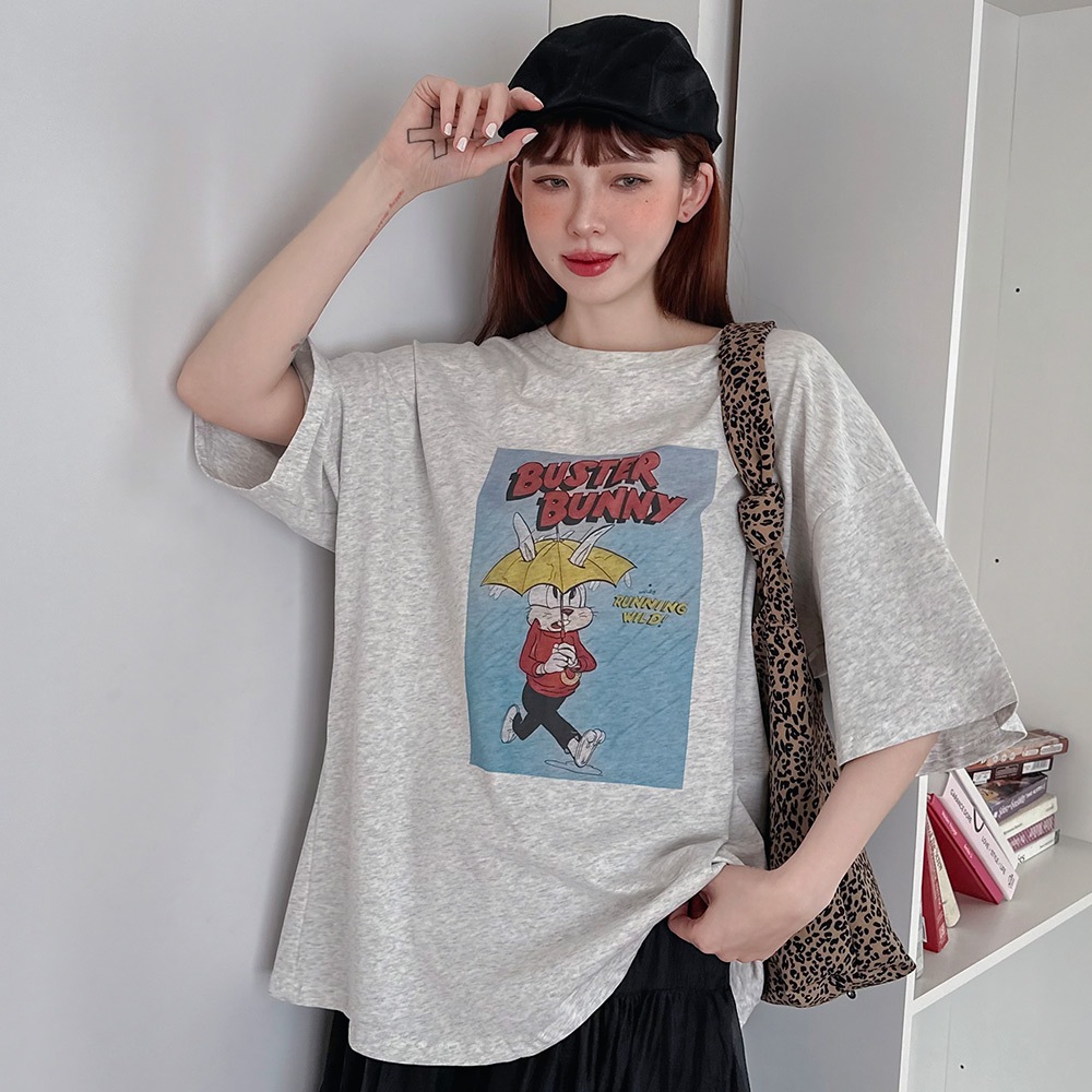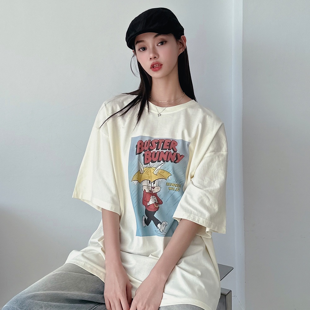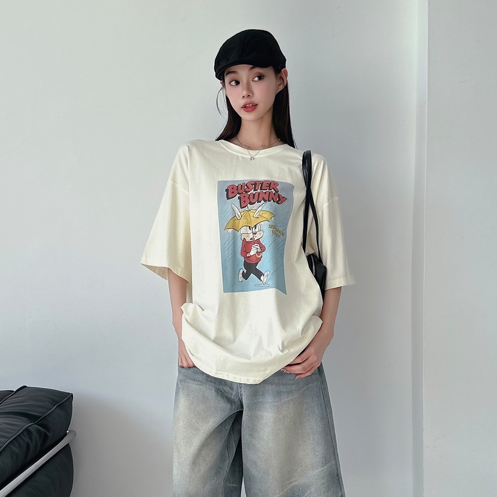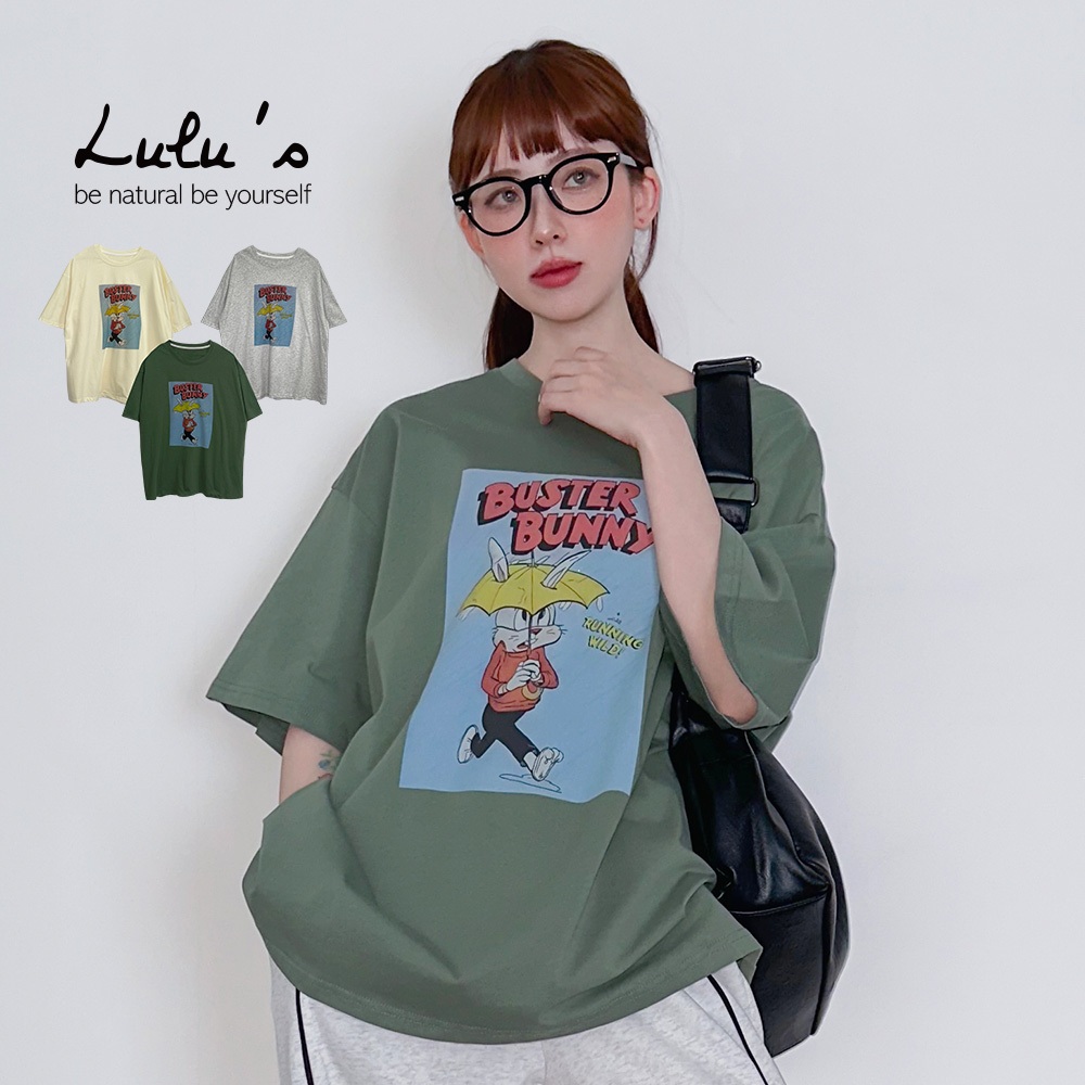 LULUS/現貨/復古撐傘兔兔T恤3色【A01250376】250528杏|綠|白灰T-shirtsLULUS