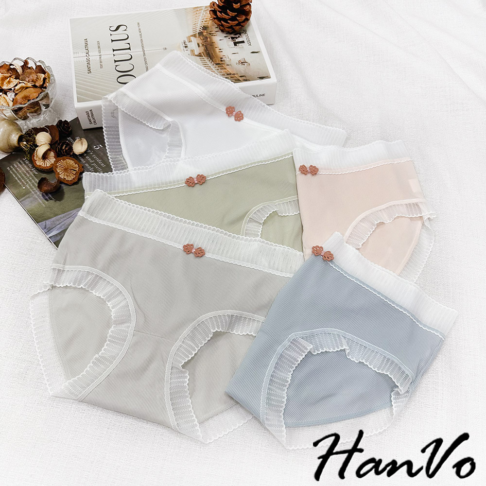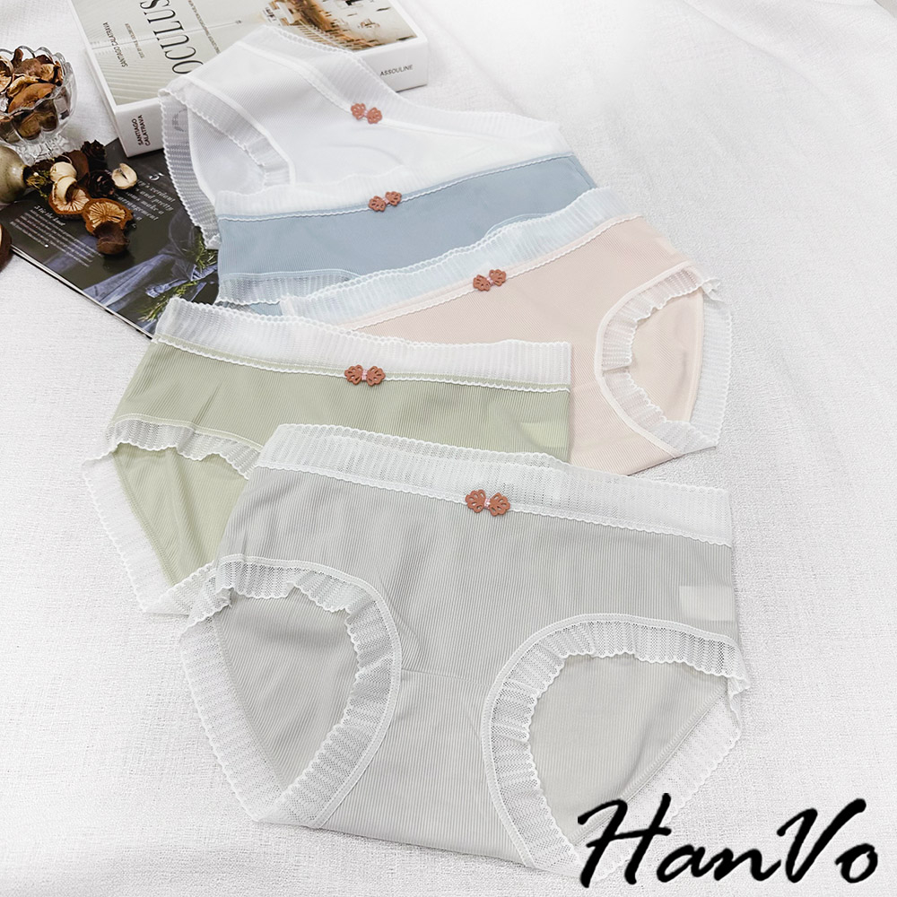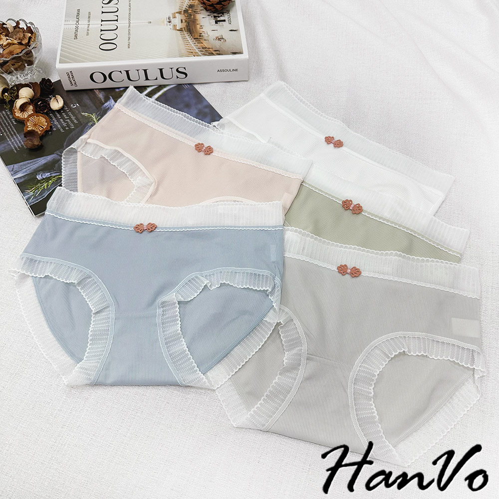 【HanVo】甜美輕薄氣質蕾絲螺紋內褲 獨立包裝 中腰 透氣性感包臀三角褲 女生內褲 內著 A11-5760香草綠|梅花粉|冰川灰|天空藍|純淨白PantiesHanVo Wear Collection
