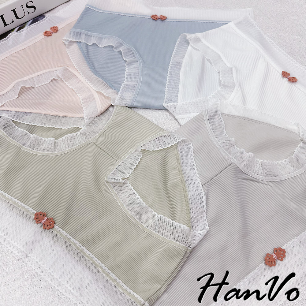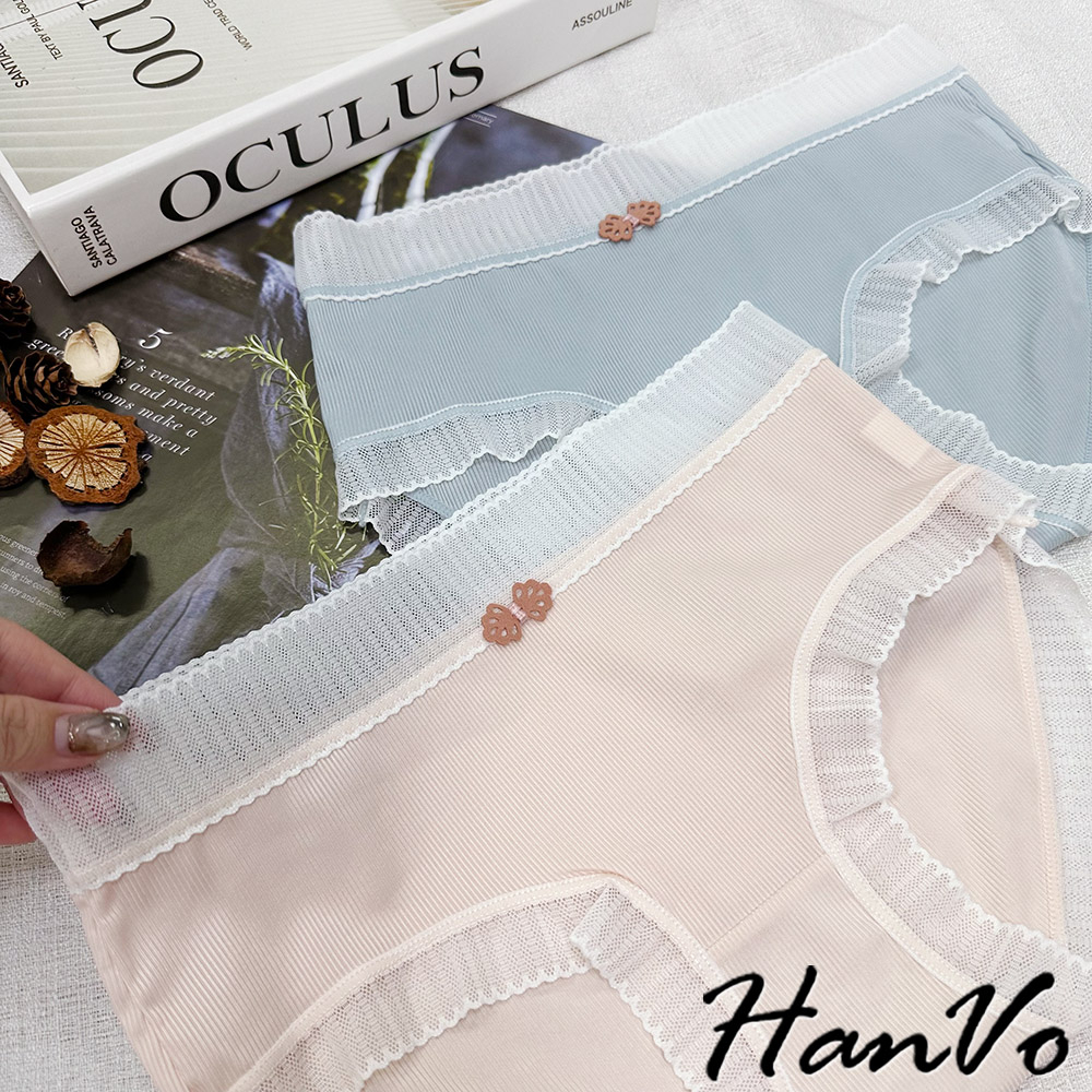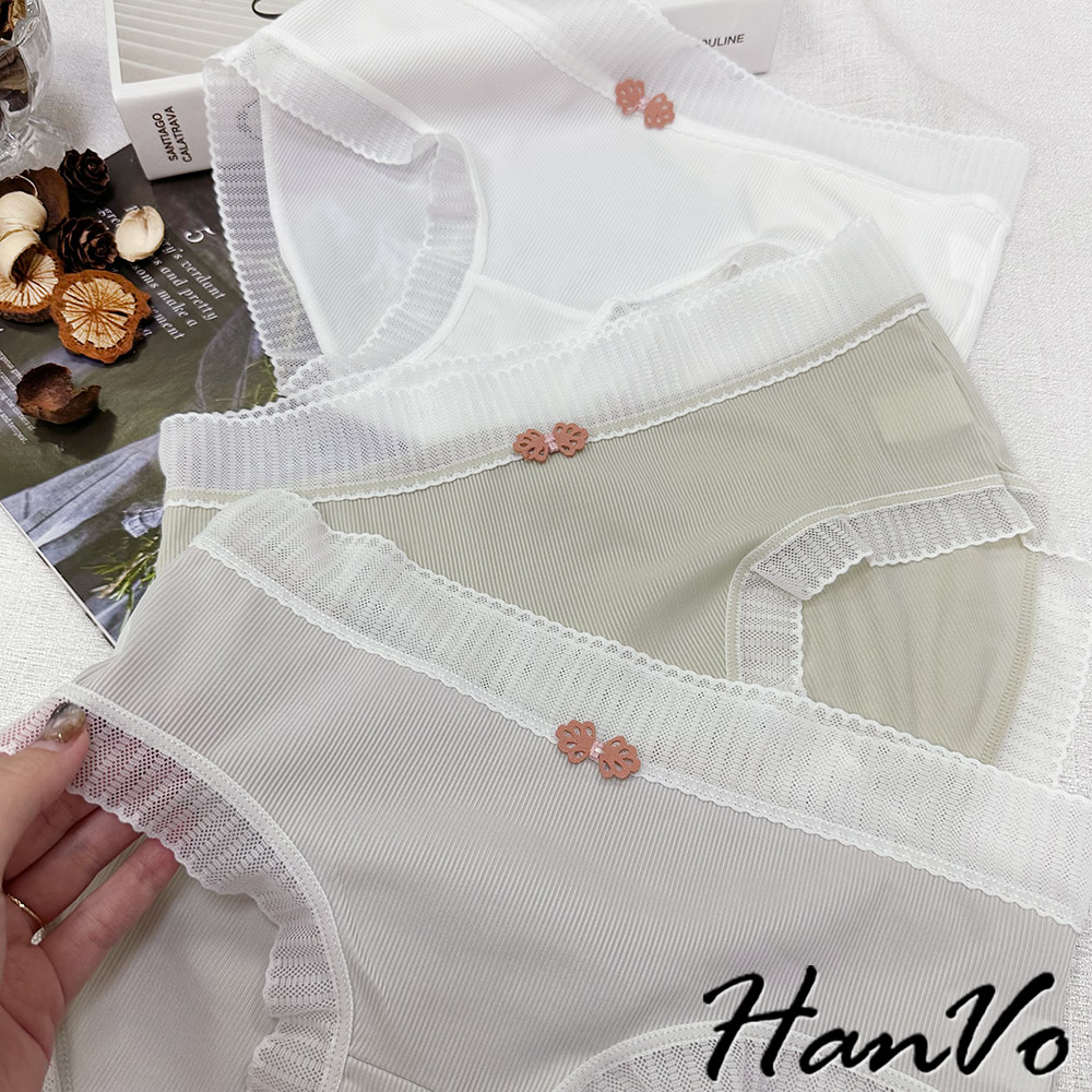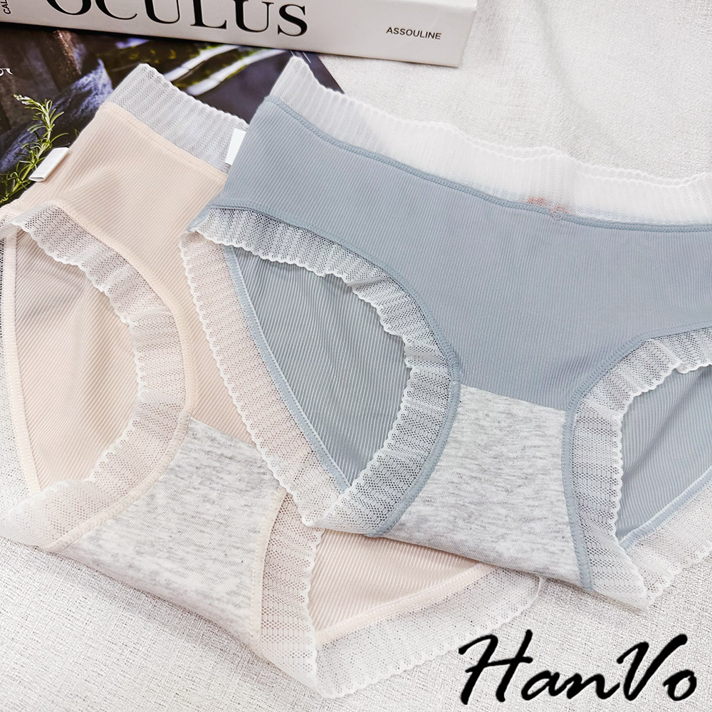 【HanVo】甜美輕薄氣質蕾絲螺紋內褲 獨立包裝 中腰 透氣性感包臀三角褲 女生內褲 內著 A11-5760香草綠|梅花粉|冰川灰|天空藍|純淨白PantiesHanVo Wear Collection