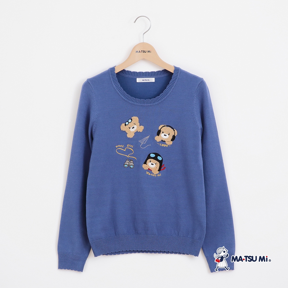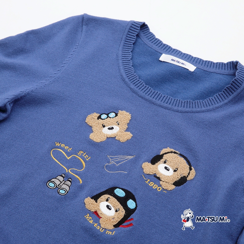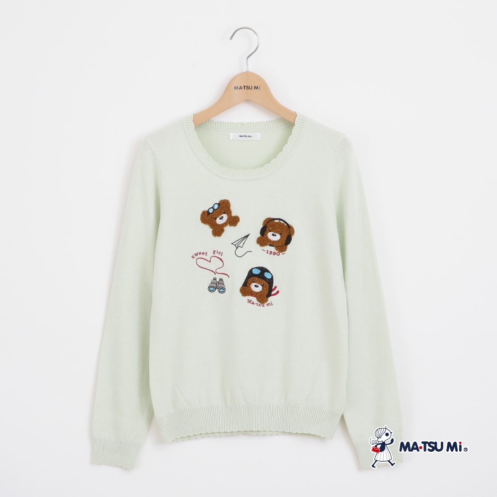 MA‧TSU Mi 飛行風熊熊刺繡針織上衣(草綠.深藍)草綠,S|草綠,M|草綠,L|草綠,XL|深藍,S|深藍,M|深藍,L|深藍,XLMA•TSU Mi瑪之蜜官方旗艦店