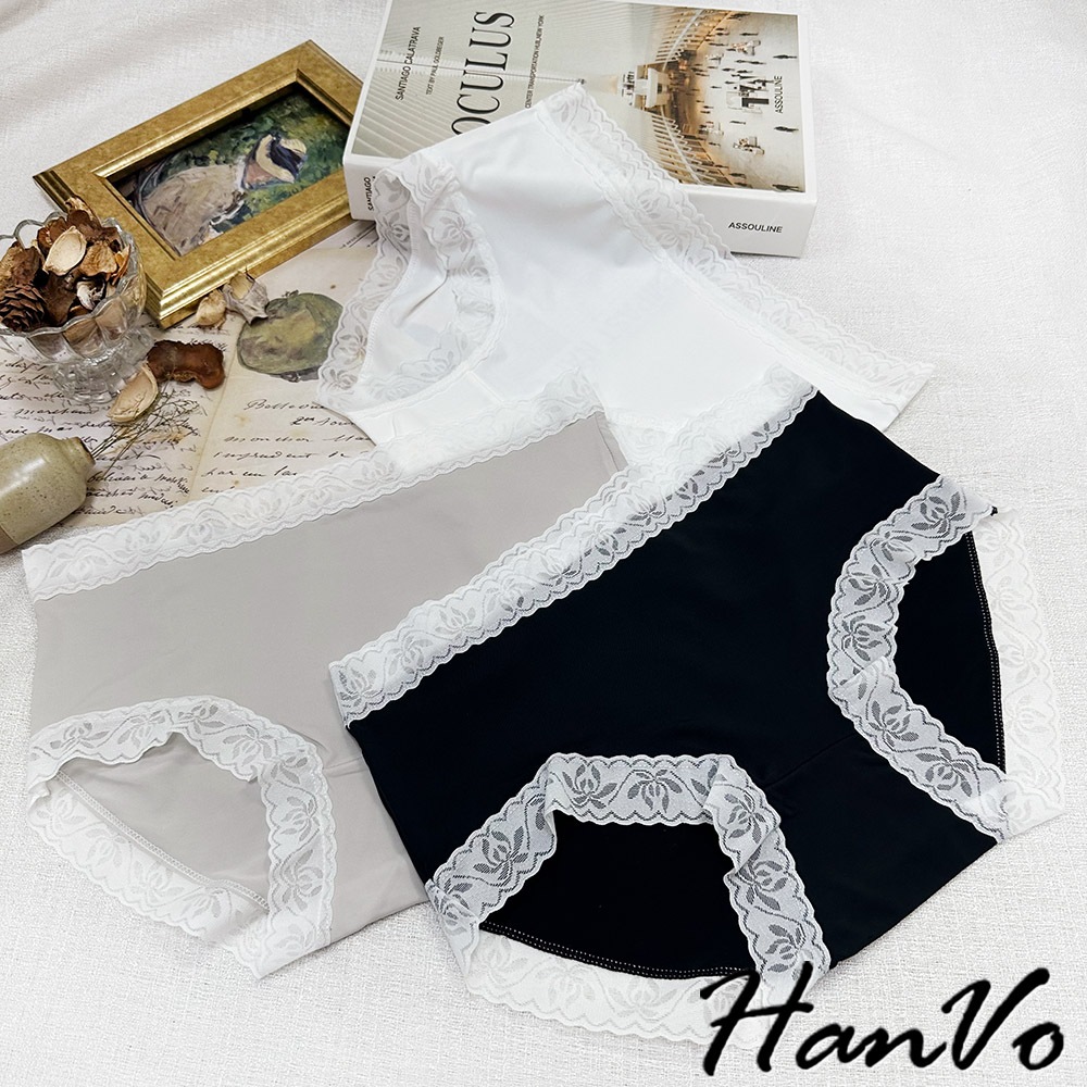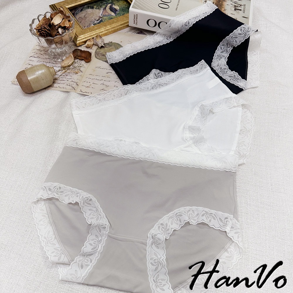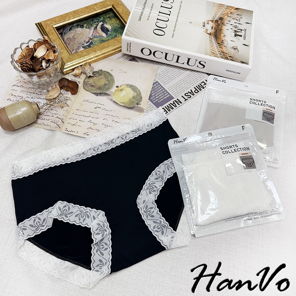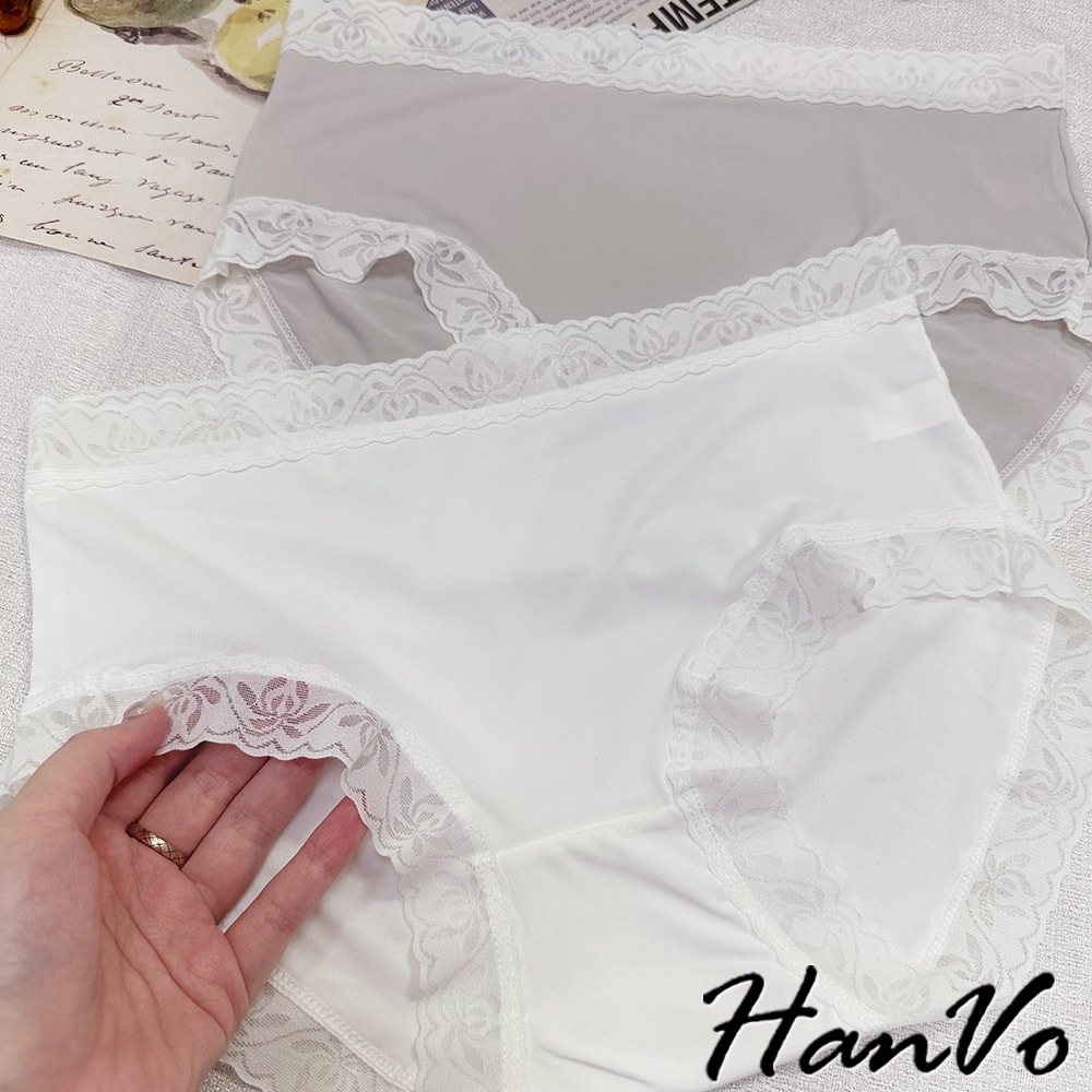 【HanVo】蕾絲花邊涼感冰絲內褲 輕盈薄彈包覆感三角褲 中腰 獨立包裝 女生內褲 內著 A11-5228星辰黑|天使白|冰川灰PantiesHanVo Wear Collection