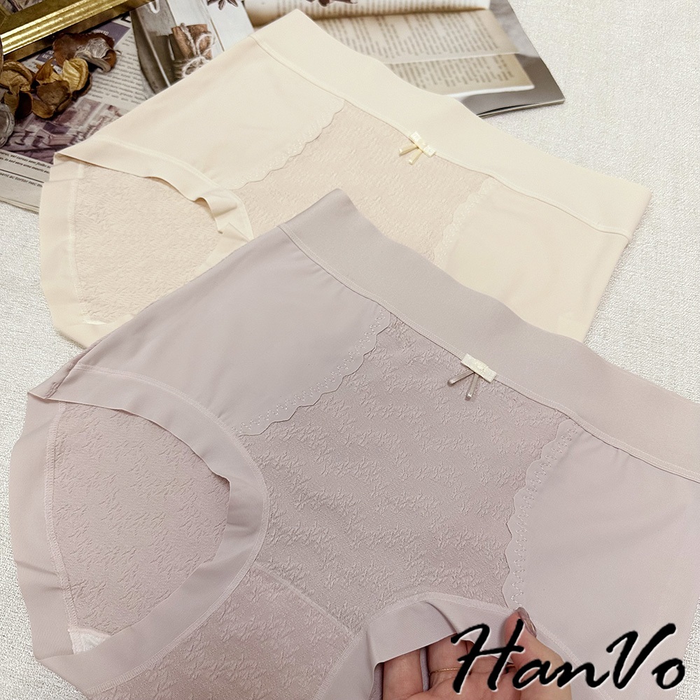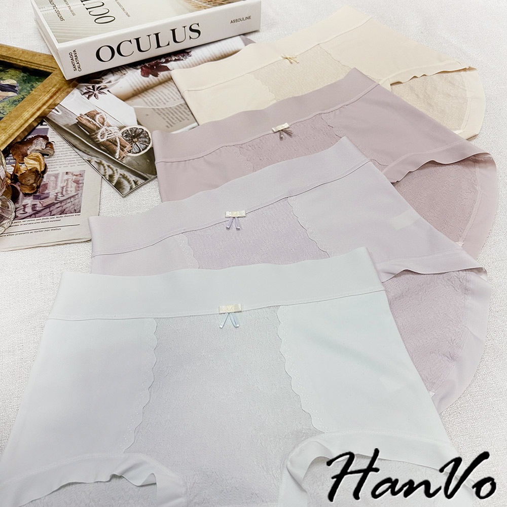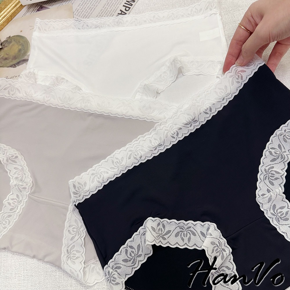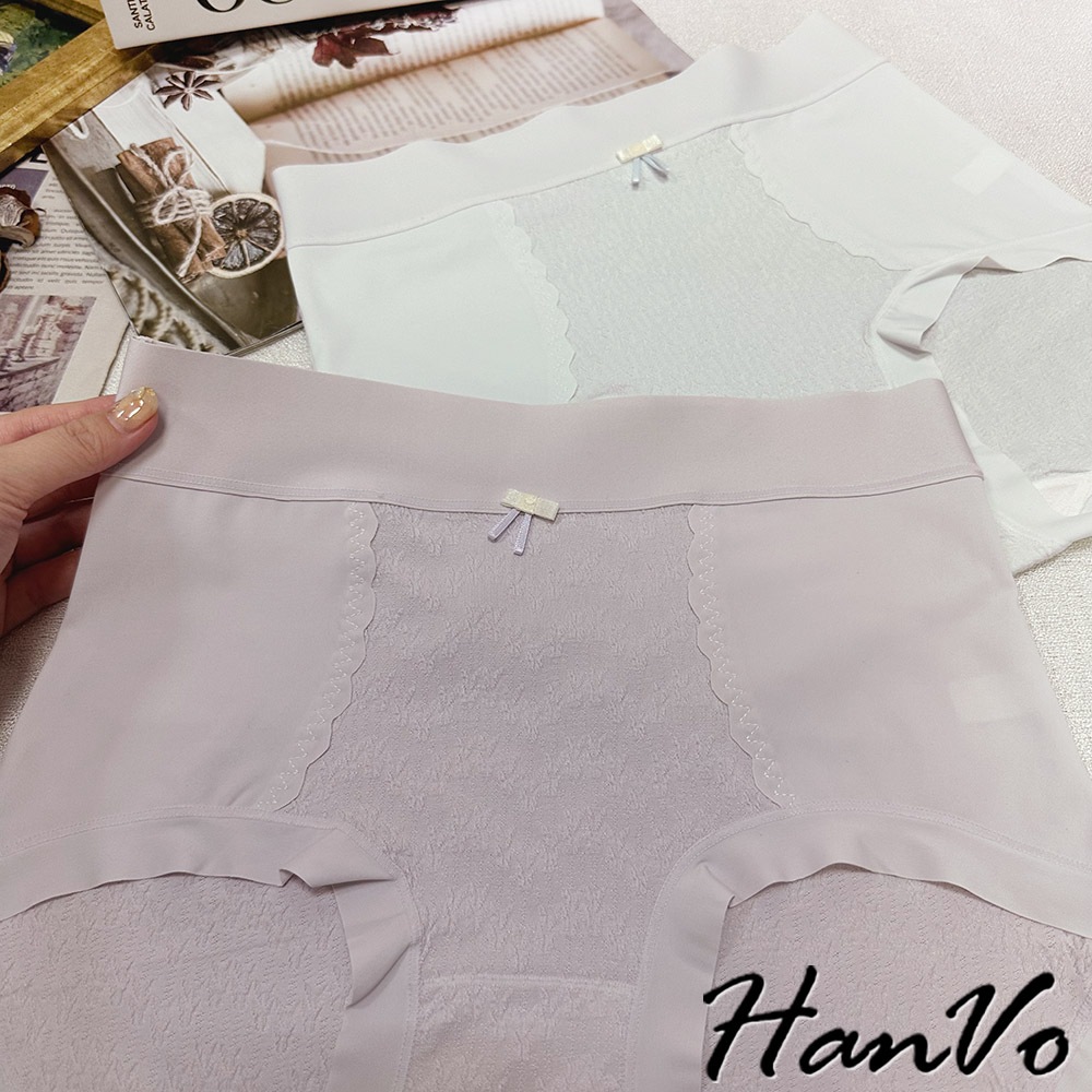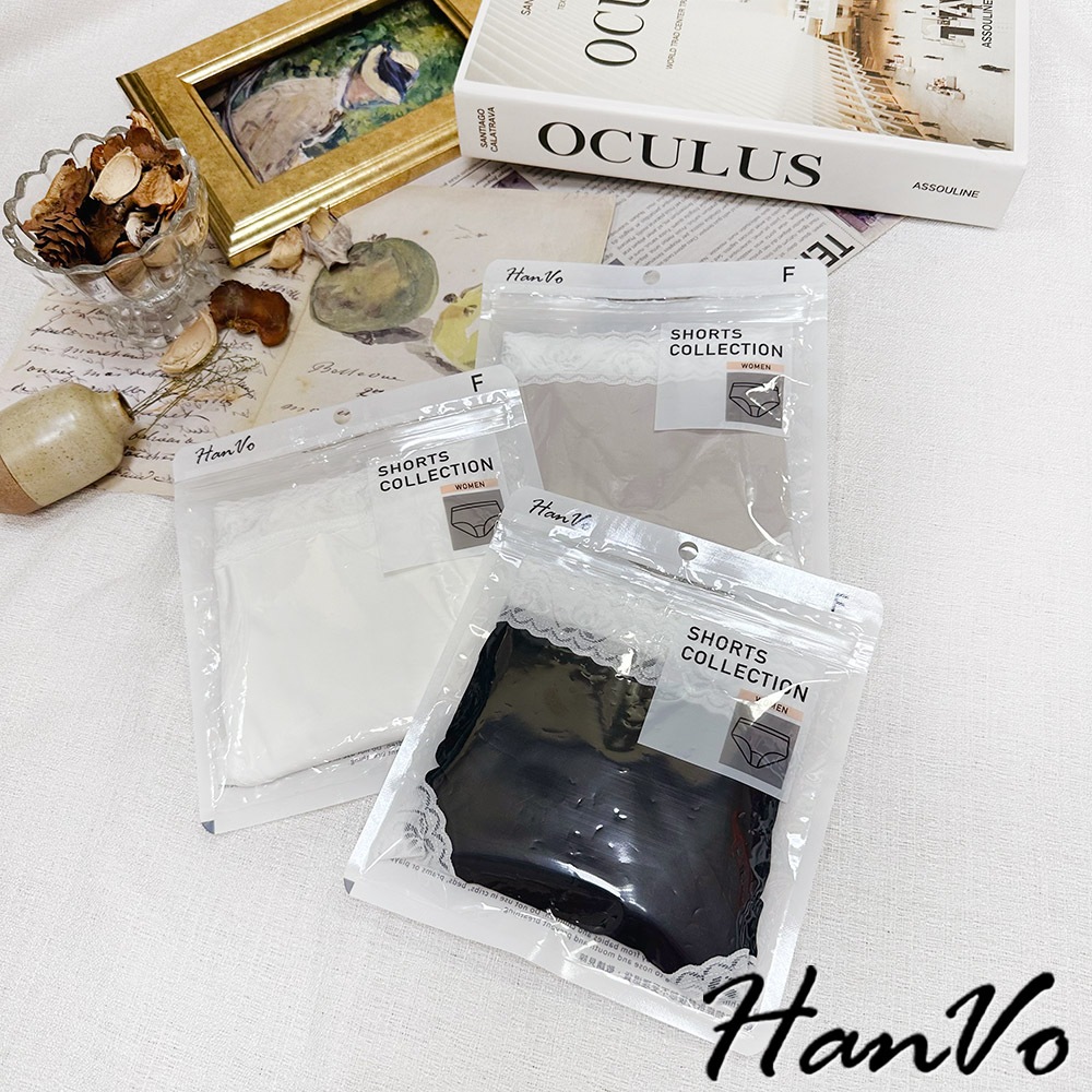 【HanVo】蕾絲花邊涼感冰絲內褲 輕盈薄彈包覆感三角褲 中腰 獨立包裝 女生內褲 內著 A11-5228星辰黑|天使白|冰川灰PantiesHanVo Wear Collection