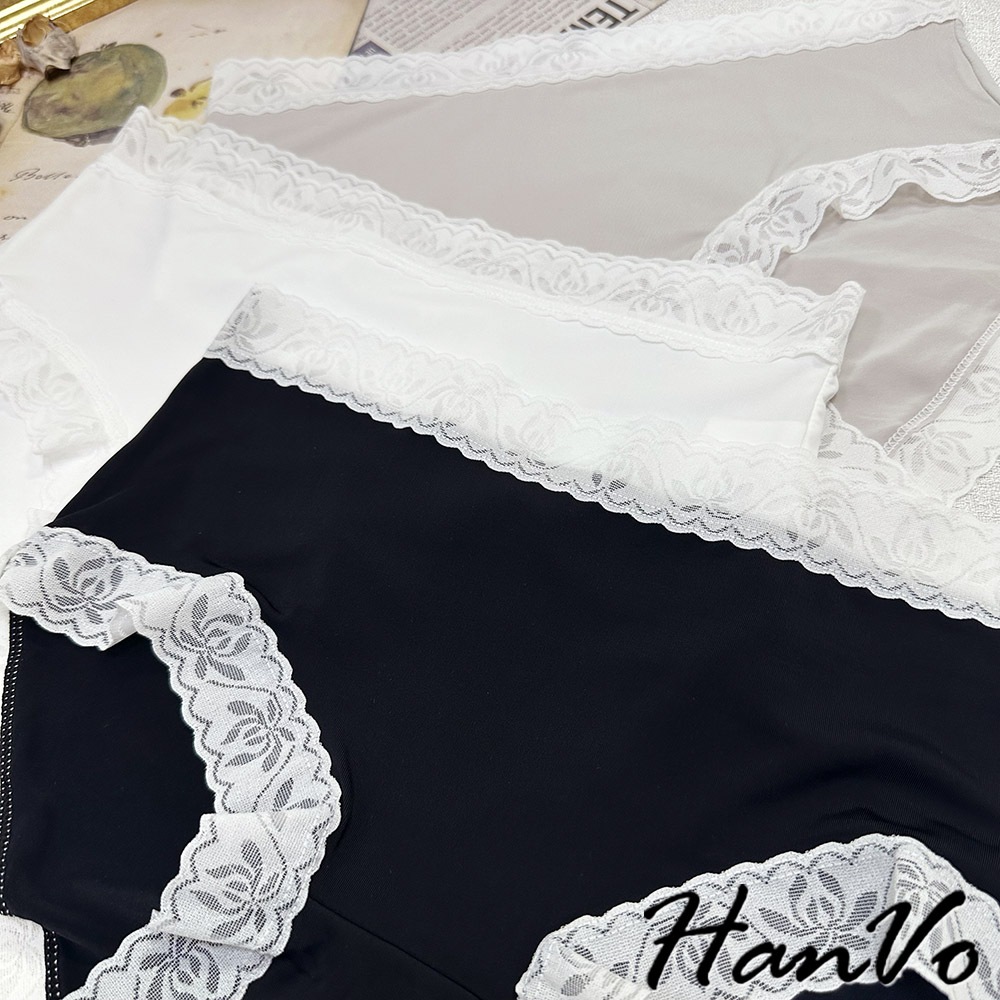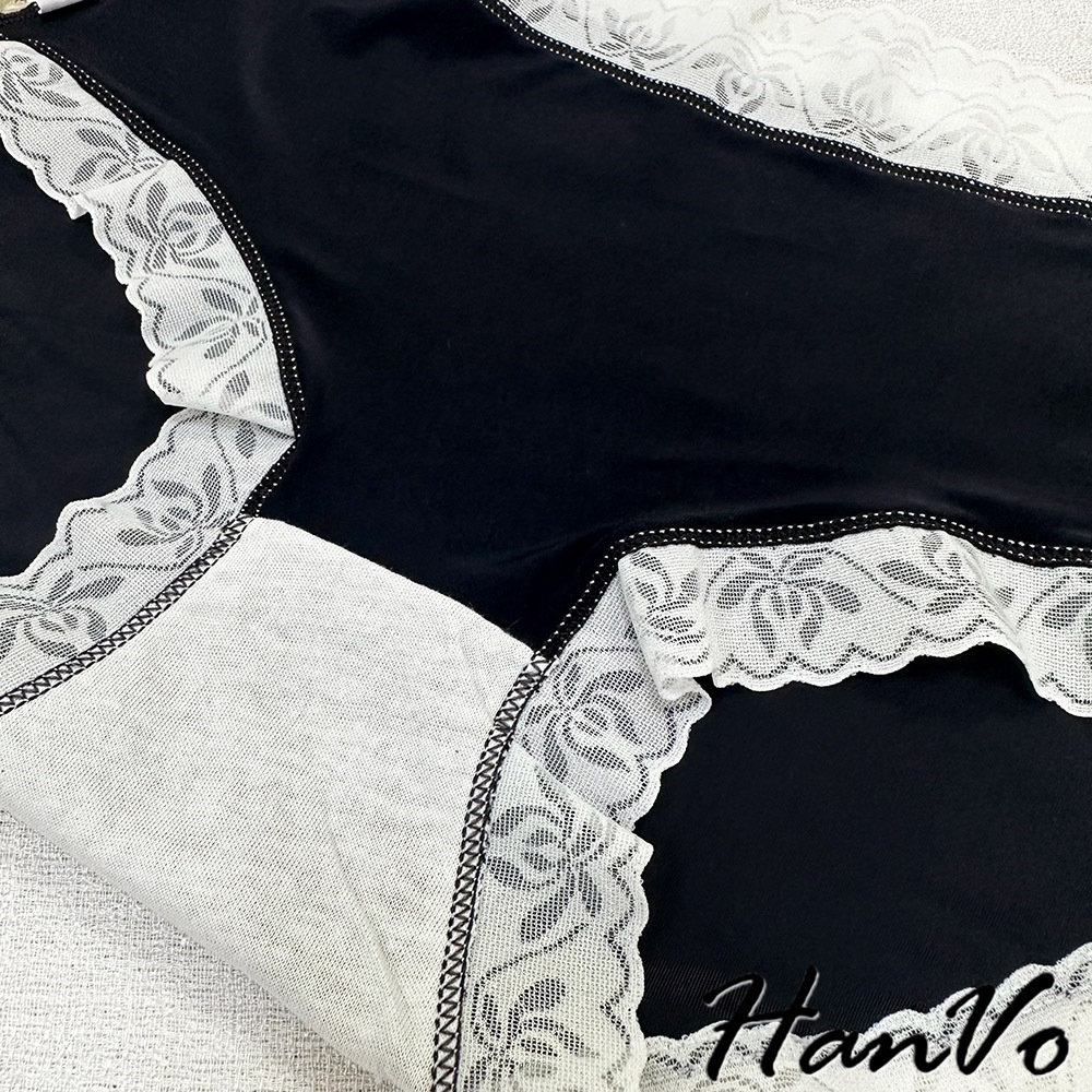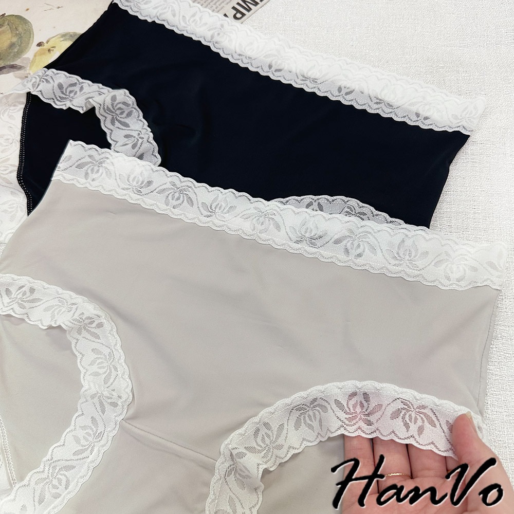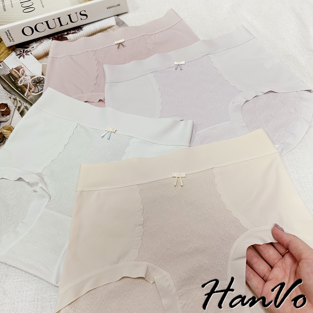 【HanVo】蕾絲花邊涼感冰絲內褲 輕盈薄彈包覆感三角褲 中腰 獨立包裝 女生內褲 內著 A11-5228星辰黑|天使白|冰川灰PantiesHanVo Wear Collection