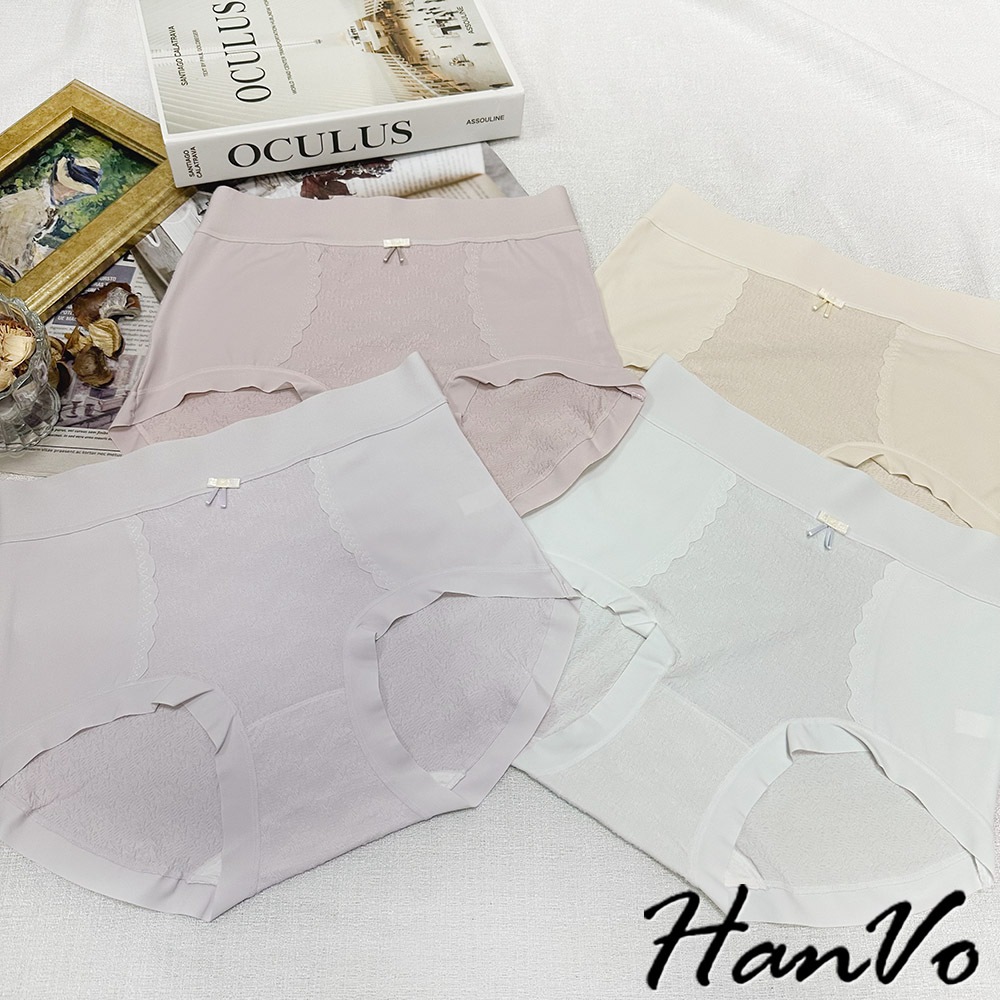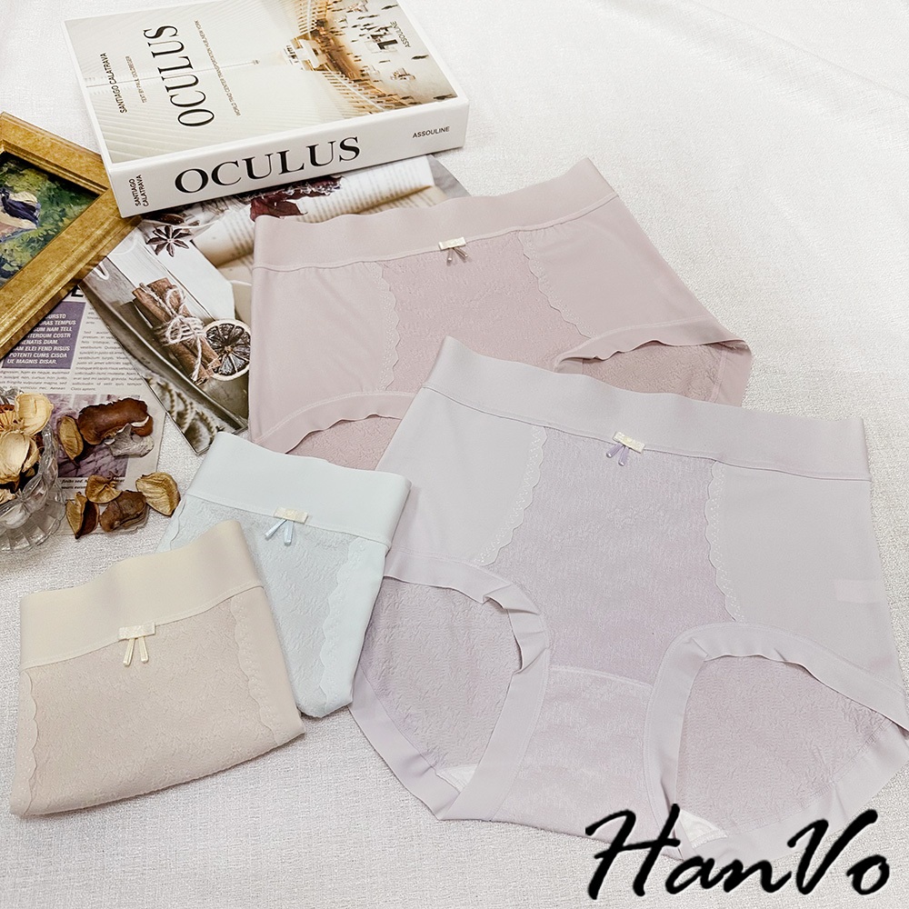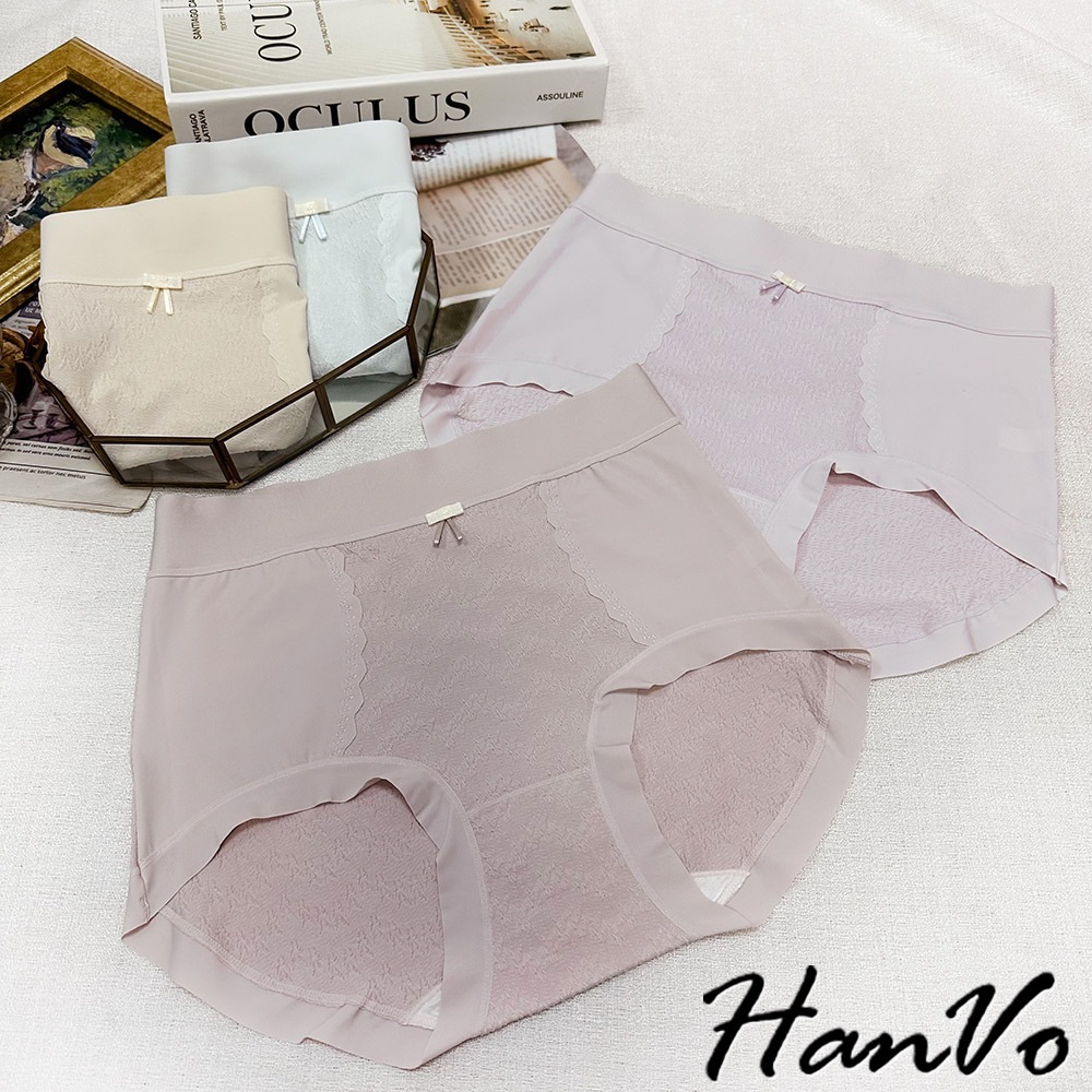 【HanVo】立體壓紋花邊甜美莫代爾內褲 寬腰帶包覆透氣高腰內褲 獨立包裝 流行少女內褲 內著 A11-5296柔膚杏|丁香紫|天空藍|柔霧粉PantiesHanVo Wear Collection