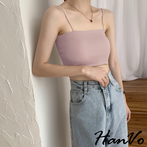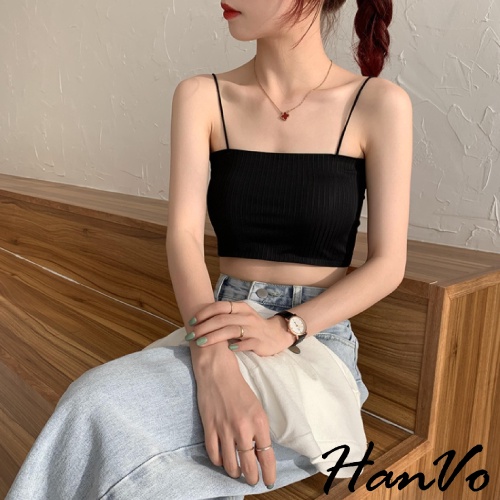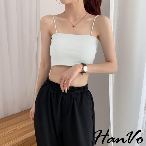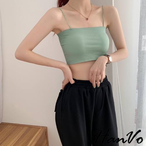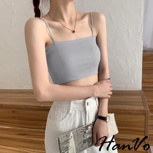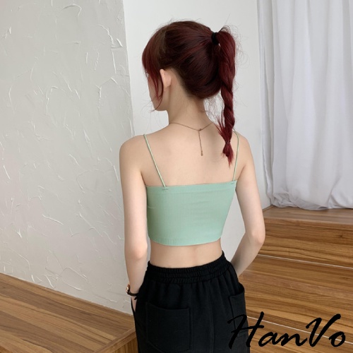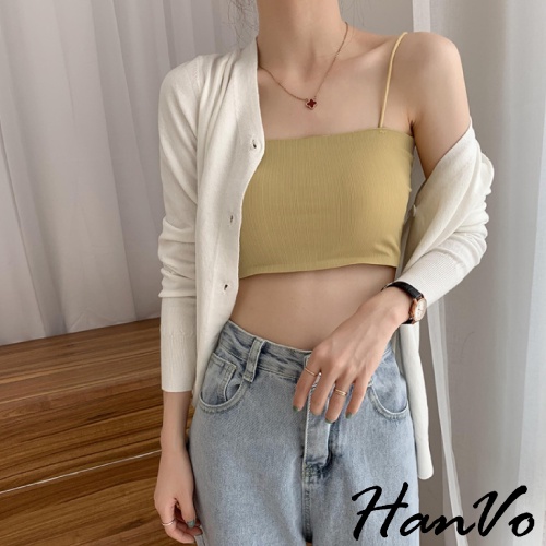 【HanVo】必收!可鹽可甜霧感色系冰絲小可愛 可拆式胸墊 細肩帶平口背心 冰絲 涼感小可愛 女生上衣 A09-5052香檸黃|煙灰粉|雲霧灰|海霧藍|經典黑|純淨白|薄荷綠|NG福利品(不退貨 不挑色)Tube TopsHanVo Wear Collection