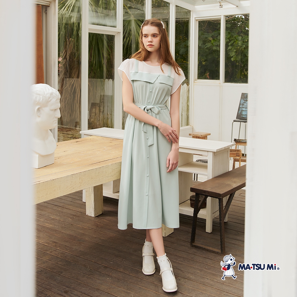 MA‧TSU Mi 假兩件撞色拼接收腰吊帶長洋裝(粉紫.草綠)粉紫,L|粉紫,XL|草綠,S|草綠,M|草綠,L|草綠,XL|粉紫,S|粉紫,MMA•TSU Mi瑪之蜜官方旗艦店