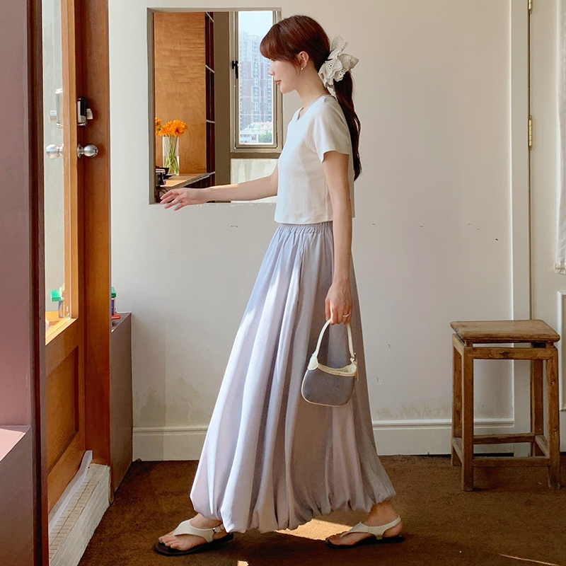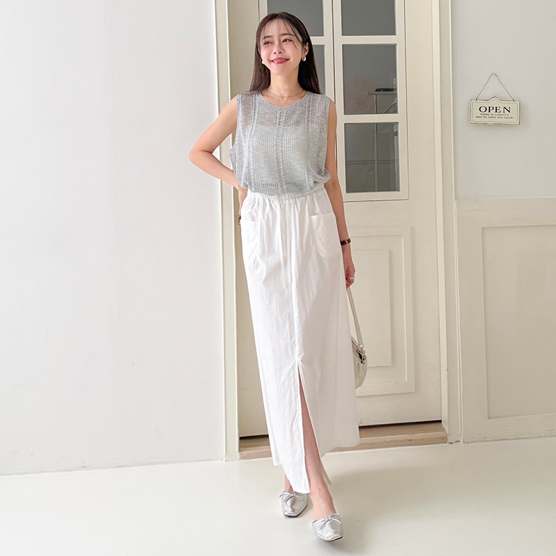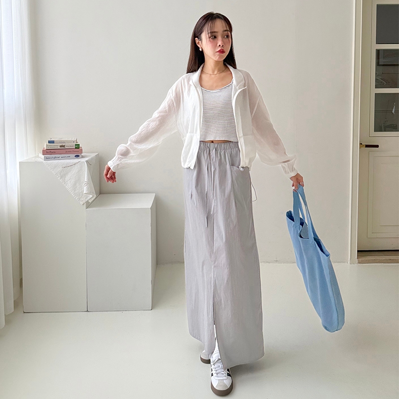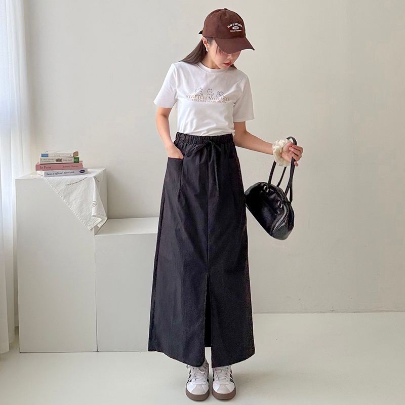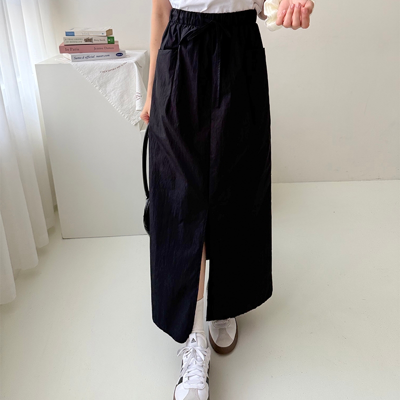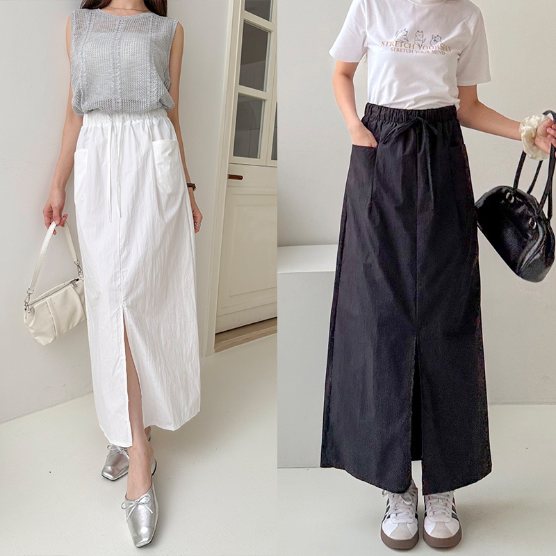 【HARPER】大口袋涼感抽繩長裙 | 現貨 中長裙 裙子 涼感【SKA90227J】白,F|灰,F|黑,FHARPER