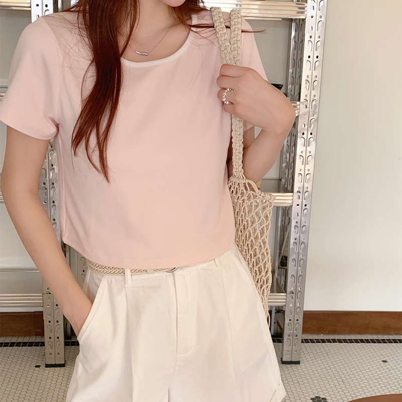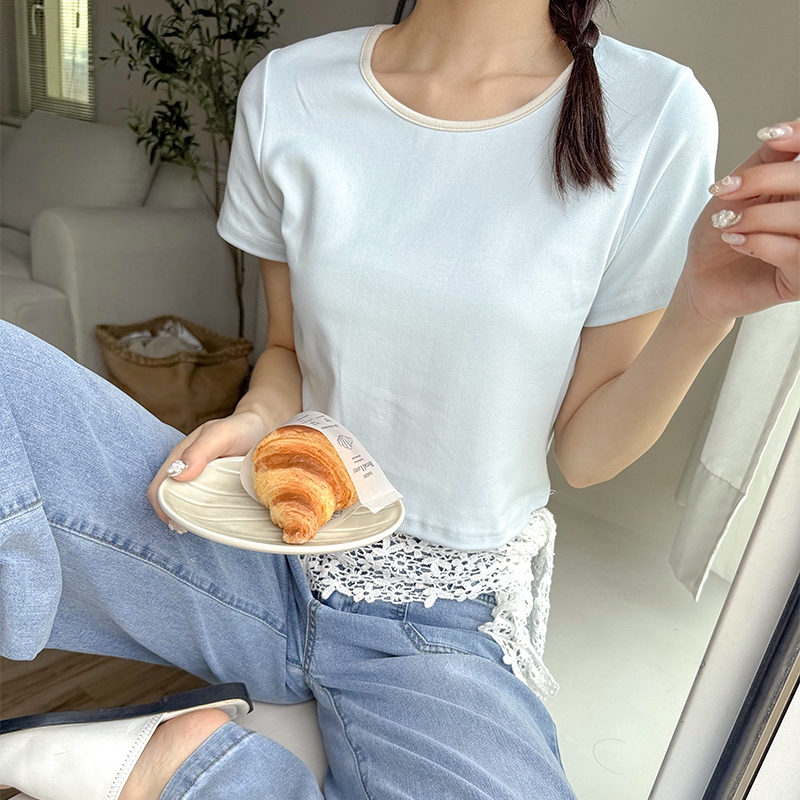 【HARPER】品牌自訂撞色滾邊水柔棉T恤 | 現貨 短版上衣 素T T恤【CLF18831J】白,S~M|白,L~XL|奶昔粉,S~M|奶昔粉,L~XL|氣泡藍,S~M|氣泡藍,L~XLT-shirtsHARPER
