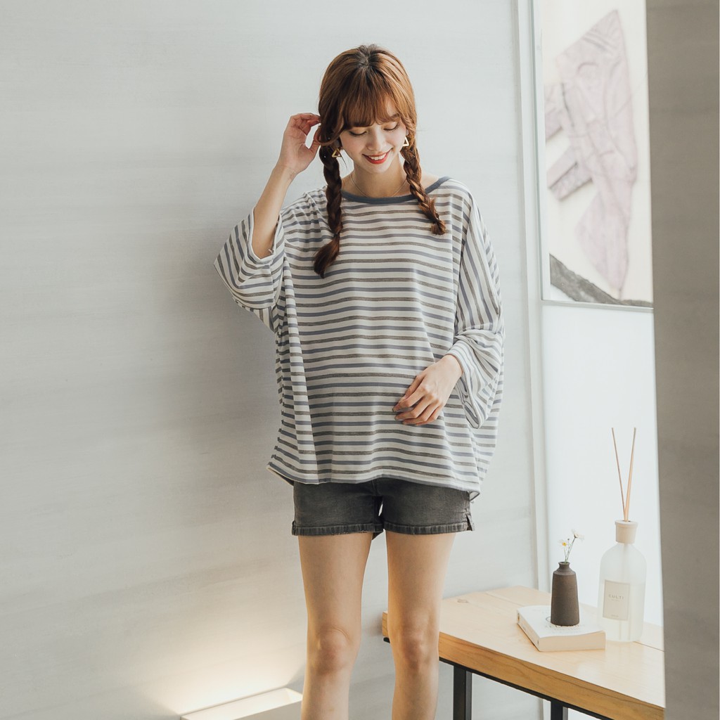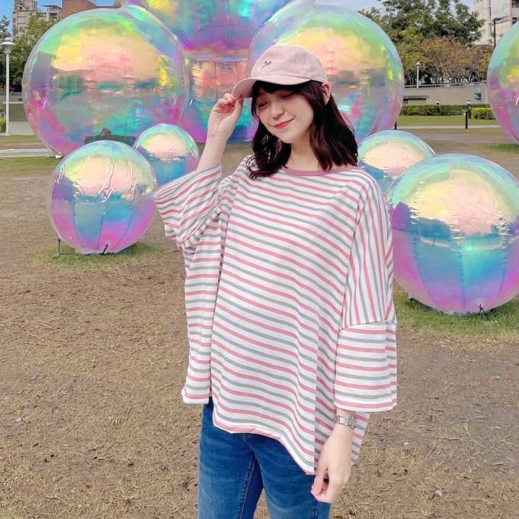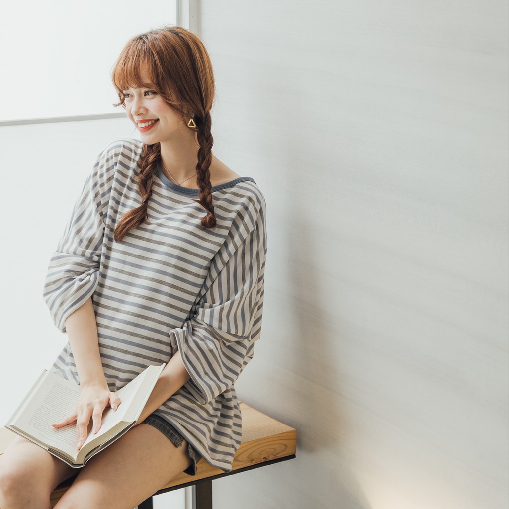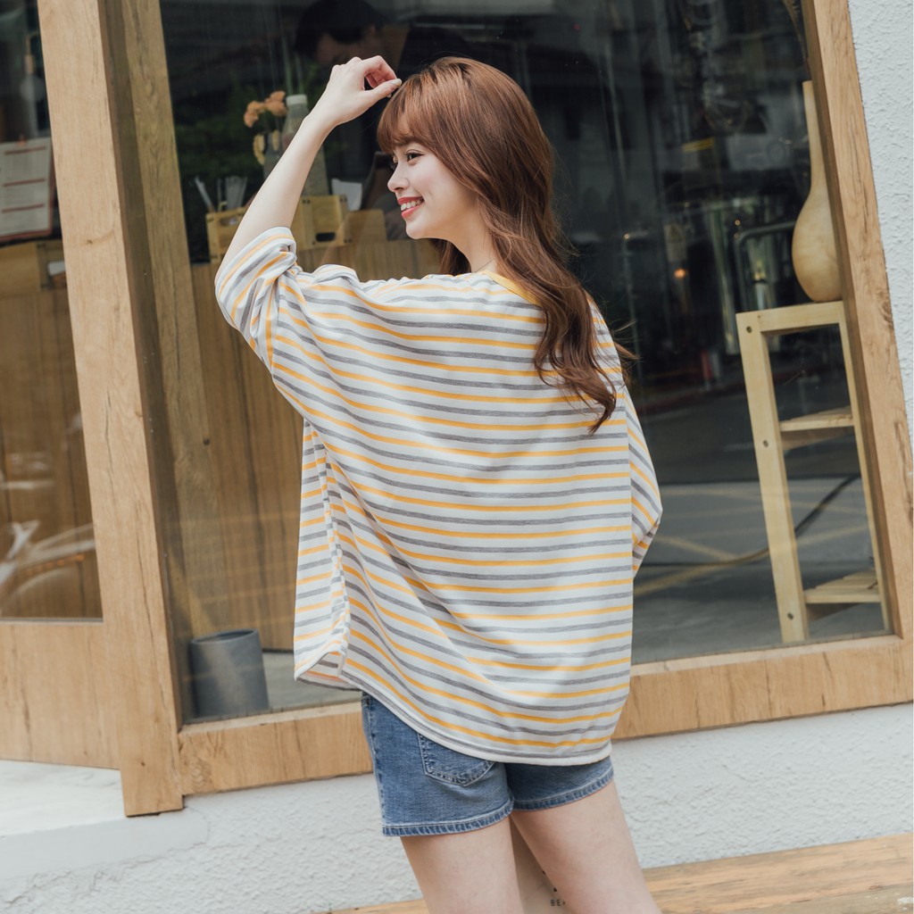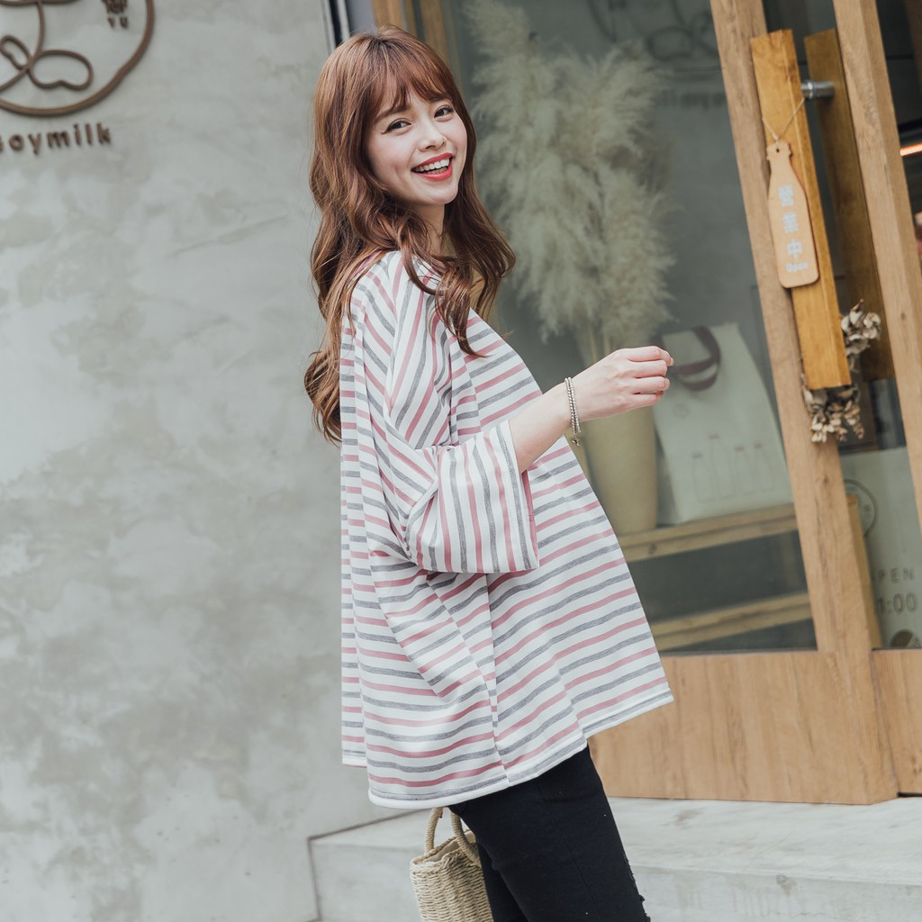 Mamamia孕婦裝 彩條七分袖孕婦上衣 正韓製 孕婦裝 短袖 長版上衣 寬版T [C3119]黃|粉|黑|藍Maternity TopsMamamia孕婦裝