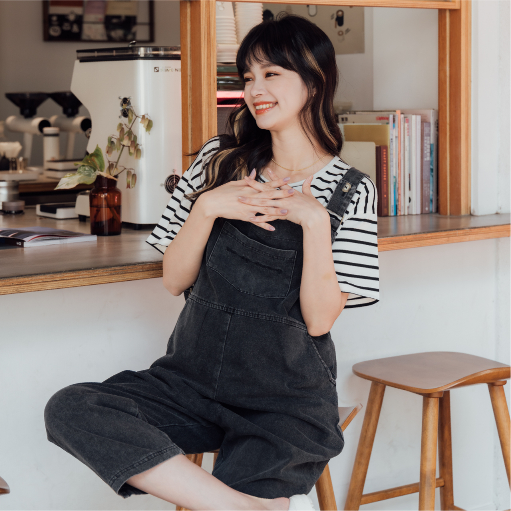 Mamamia孕婦裝 好心情刺繡牛仔吊帶褲 M~L 牛仔 正韓製 連身褲 孕婦吊帶褲 孕婦褲 孕婦裝 [B6400]黑,M|黑,L|藍,M|藍,LMaternity BottomsMamamia孕婦裝