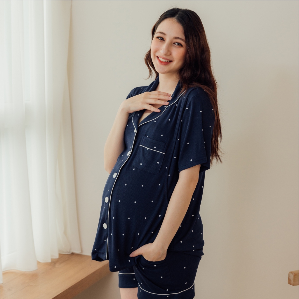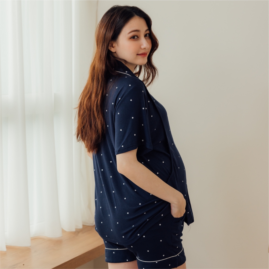 Mamamia孕婦裝 柔膚點點哺乳孕婦裝 M~XL 哺乳套裝 哺乳睡衣 短袖 哺乳衣 月子服 孕婦裝 [A1916]深藍,M|深藍,L|奶茶,M|奶茶,L|灰,M|灰,L|深藍,XL|奶茶,XL|灰,XLBreastfeeding WearMamamia孕婦裝